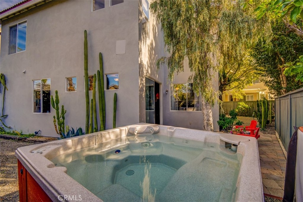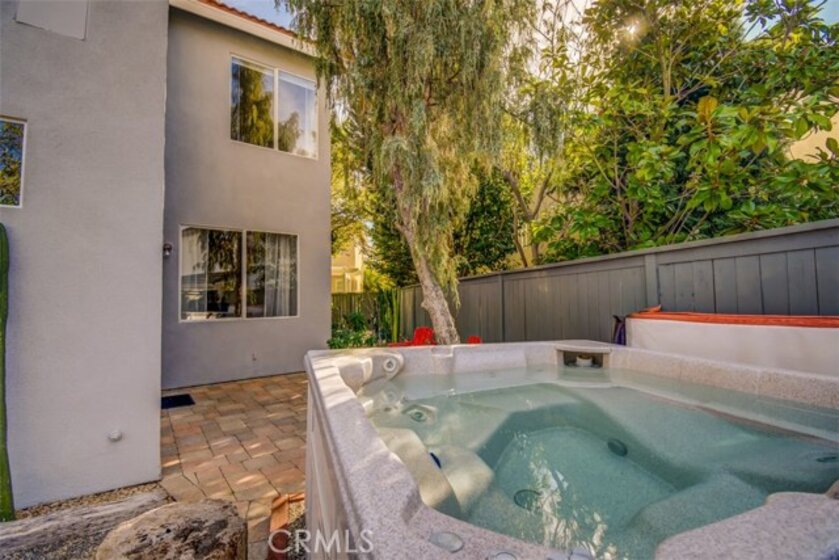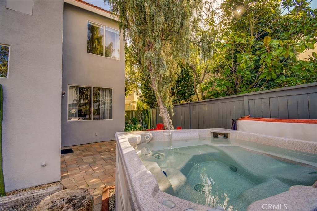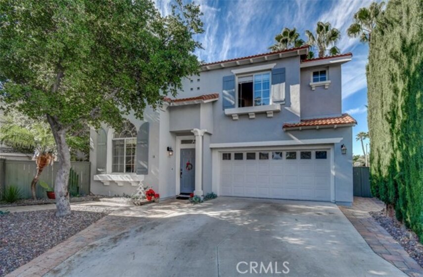This fantastic DETACHED home is situated on a larger lot that offers great off street parking. Driveway accommodates 4 cars. The home features large back and side yards, where you will enjoy the beautiful low maintenance yard with interlocking pavers, plus wonderful private spa. Come see this 4 bedroom 2.5 bath home. Double sided fireplace in family room and living room. Vaulted ceilings and lots of windows in this light and bright home. Tile flooring downstairs, wood flooring upstairs. Very private home with no homes backing. Great family home, hurry this one will not last.. Home is located in a highly desirable gated community with association pool and spa.
