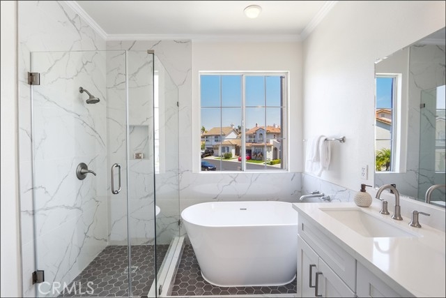 AWESOME LOCATION WITHIN GATED COMMUNITY, WALK TO PARK AND AWARD WINNING SCHOOLS AND APPROXIMATELY $100K IN BRAND NEW UPGRADES THROUGHOUT! Open and airy floor plan offering 3 bedrooms and 3 bathrooms including highly desirable main floor bedroom and bathroom, living room with high ceilings and designer accented fireplace, dining room and a stunning kitchen with brand new shaker style cabinets, Quartz countertops, brand new stainless steel appliances, sink and faucet. Spacious master suite with totally remodeled master bathroom featuring designer tile surround, frameless glass enclosure and upgraded fixtures. 3rd bedroom and full 3rd bathroom also totally remodeled with upgraded vanity, designer style tile surround and upgraded fixtures. Upgraded LVP flooring and baseboards, fresh interior and exterior paint, Whole house PEX repiping in 2018, upgraded lighting fixtures and so much more. All this plus highly sought after Village Cottages gated community within walking distance to neighborhood park, highly ranked schools, excellent proximity to Aliso Viejo Town Center with shops, restaurants and entertainment, easy toll road (73) and beach access and nearby hiking, biking and nature trails! More description and photos will be added by Monday.