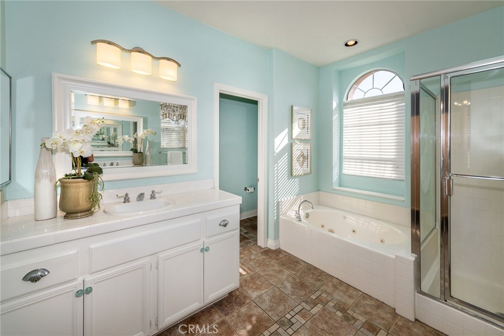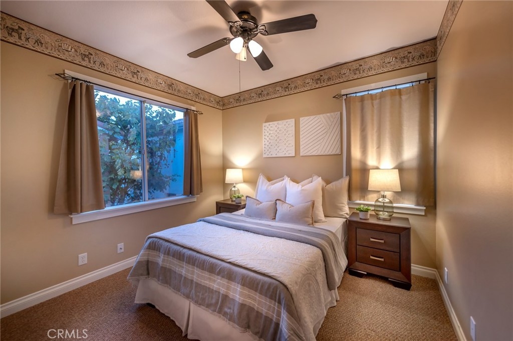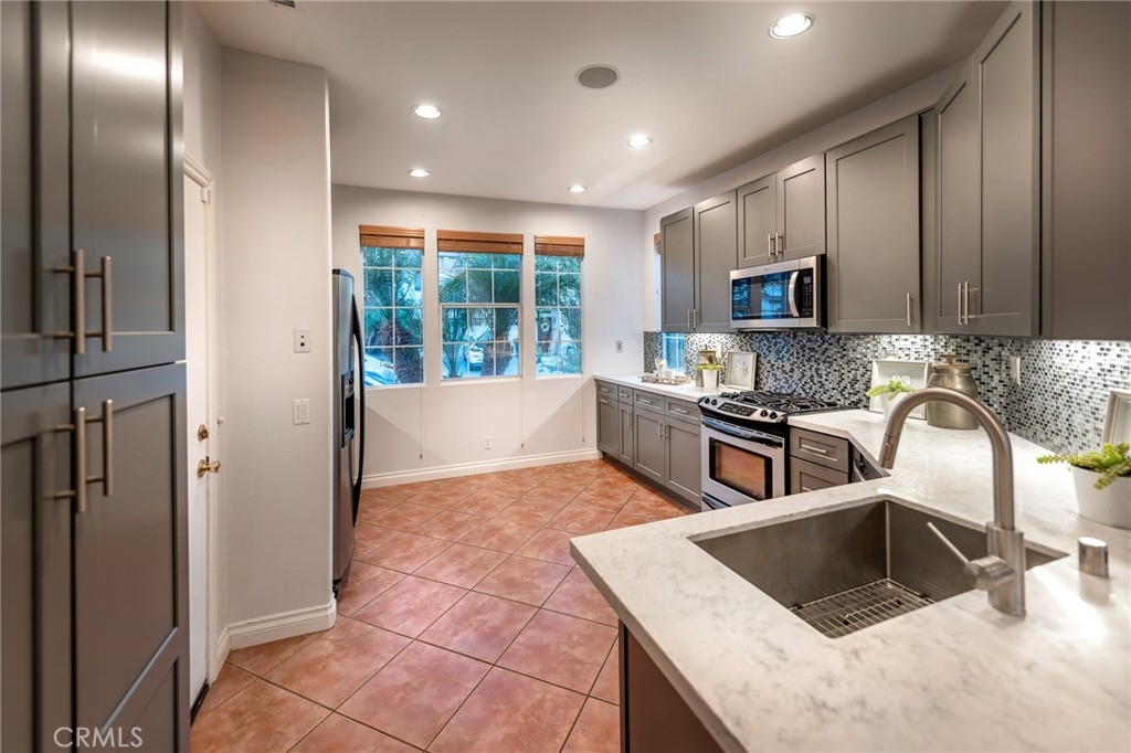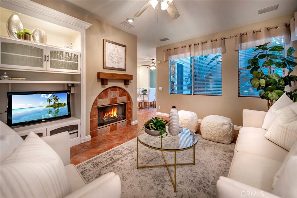 Immaculate detached home, nicely remodeled in tropical "beach-vibe" theme and located in the highly desired gated community of Village Cottages. Recently renovated open kitchen with new cabinets, quartz countertops, mosaic glass tile backsplash, stainless sink and appliances including refrigerator. A convenient breakfast bar and dining nook are adjacent to the kitchen. The kitchen opens to a formal dining area, family room with fireplace and sliding door to the beautiful rear tiled patio area ideal for alfresco dining surrounded by tropical low maintenance landscape. Features include newer interior and exterior paint, designer tile flooring throughout the main living level, newer carpet in bedrooms and gleaming hardwood staircase and upper hallway. An adorable powder room is located on the main level. Ascend the hardwood staircase to the upper level with 3 spacious bedrooms. One of the secondary bedrooms has a built-in double murphy bed which doubles nicely as a home office. The 2 secondary bedrooms share a remodeled full bathroom with dual sinks and tub/shower. The spacious master suite offers a Jacuzzi style tub, separate shower, dual vanities and walk in closet with built-in organizers. The home offers an upstairs laundry room for convenience and includes a newer washer/dryer. Full driveway and 2 car garage with storage cabinets. Other features include built-in speakers throughout, ceiling fans, recessed lighting and custom window coverings. There is a great association pool and Oak Park is just outside the gate with playground, picnic areas and sport court. Award winning schools! Hurry, this home with lots of character and charm in one of the most popular Aliso Viejo communities won't last!