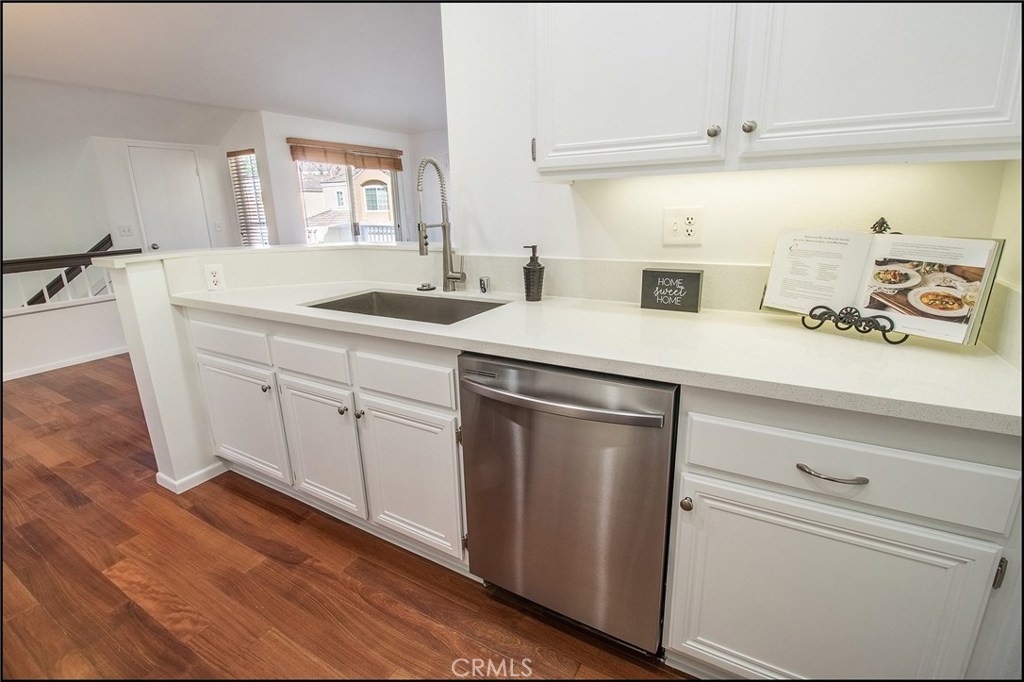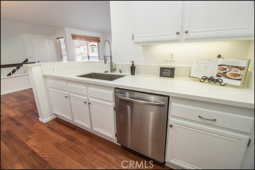 SPECTACULAR END UNIT WITH NO ONE ABOVE OR BELOW, ATTACHED GARAGE, OPEN FLOOR PLAN AND BRAND NEW UPGRADES THROUGHOUT! Spacious living and dining room with vaulted ceilings and plenty of windows to bring in lots of natural light, fireplace and sliding door leading to patio deck. Awesome kitchen with brand new Quartz counter tops, stainless steel appliances, large and contemporary sink, designer faucet and LED lighting. Spacious master suite with high ceilings, two closets, large vanity with new Quartz counter top, sink, designer faucet and light fixture, and new glass shower enclosure. Second bathroom with new Quartz counter top, sink, designer faucet and light fixture. Upgraded wood flooring and brand new carpeting, fresh interior paint, new lighting fixtures, designer chandelier and LED recessed lighting. Excellent location near award winning schools, resort style community pool and spa, easy toll road (73) and beach access (via 133), excellent proximity to Aliso Viejo Town Center with shops, restaurants and theaters and nearby Woods Canyon nature trails. This is a 10+ and a must see property now!