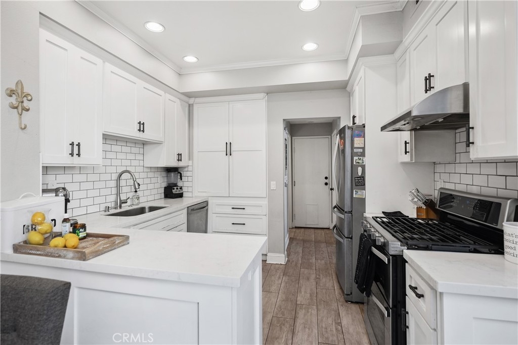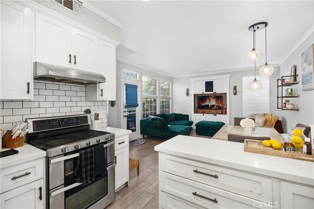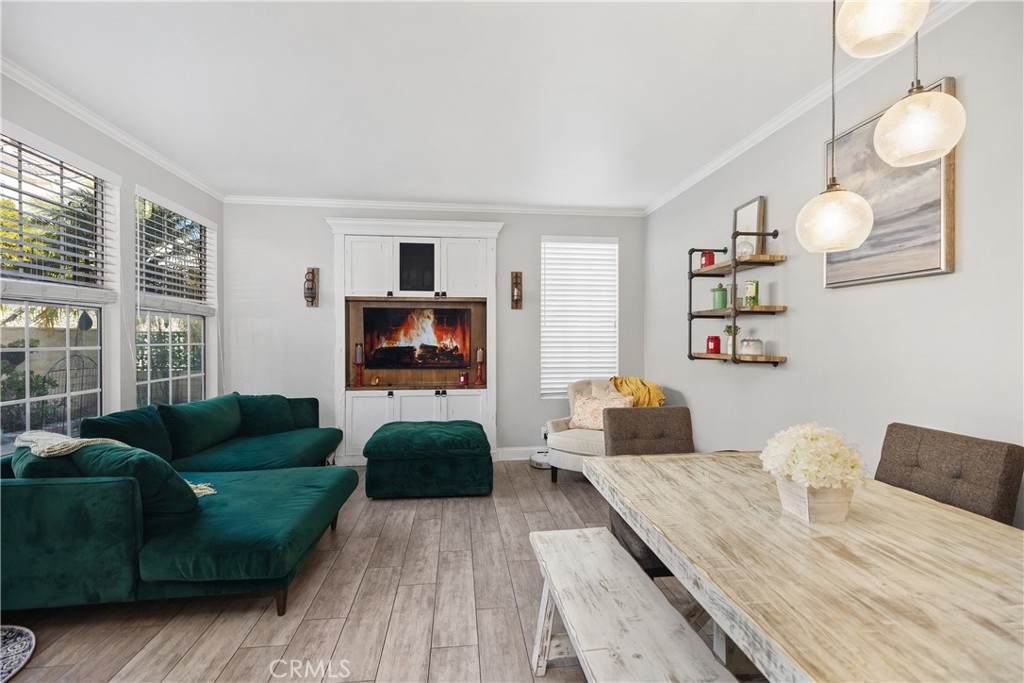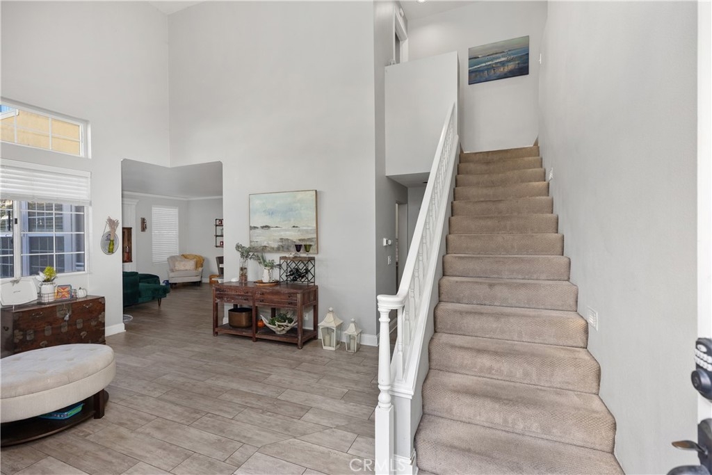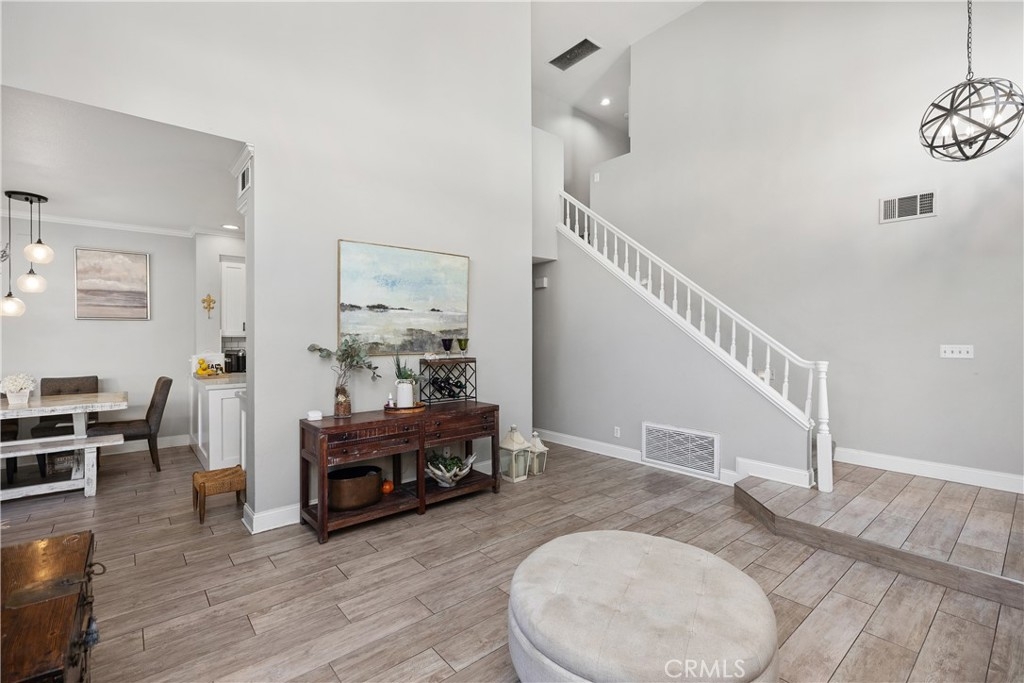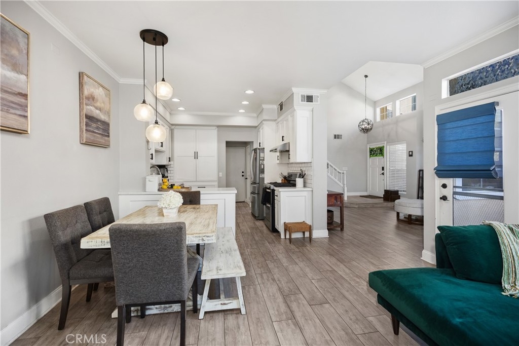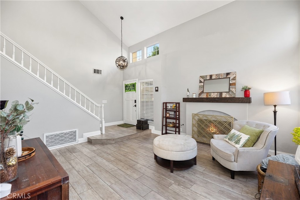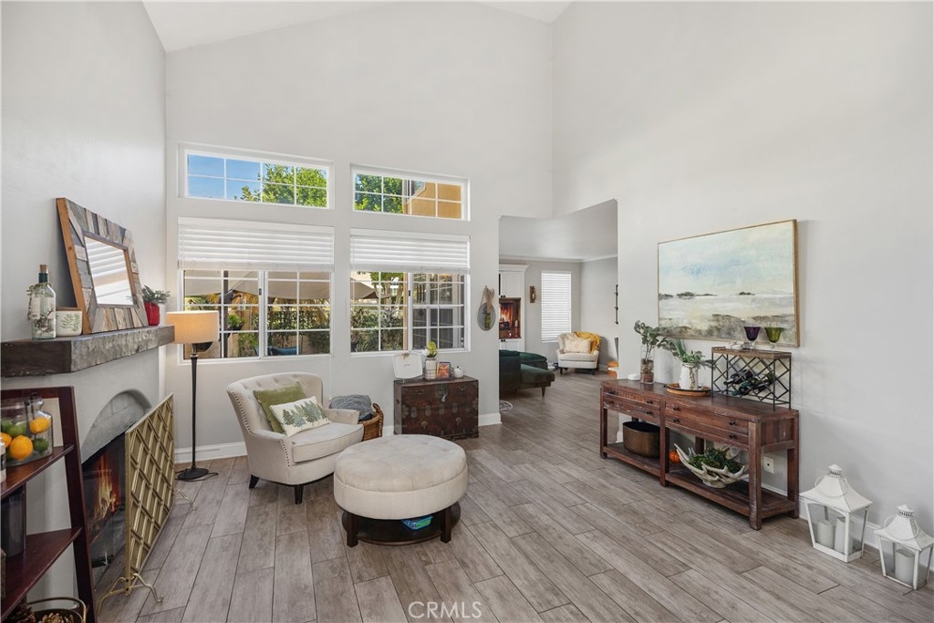 Discover this beautifully upgraded 3-bedroom, 2.5-bath townhome, ideally situated in a private location within the community. Natural light floods the open living spaces through expansive windows, highlighting the soaring vaulted ceilings. The inviting living room features a cozy fireplace, while wide-plank wood-look tile flooring spans the entire downstairs. The thoughtfully expanded kitchen is a chef’s dream, boasting white shaker cabinets, quartz countertops, a subway tile backsplash, a large stainless steel sink, premium stainless appliances, and a spacious pantry. The remodeled guest bathroom showcases elegant herringbone tile flooring, a gray shaker vanity, and a Calacatta quartz countertop. Upstairs, the primary suite offers a serene retreat with an alcove space and picturesque views of a lush, park-like setting. The family room features a custom white media niche, beautiful park views, and French doors leading to the expansive wraparound backyard—one of the largest in the community—offering privacy and ample space for entertaining. This home also includes a large garage with built-in storage and is the largest model in the tract. Additional Features include house repiped with Pex, whole house fan(big savings on energy costs), Newer HVAC(2020), New Water Heater(2022). Enjoy access to the community pool, spa, and amenities, all within walking distance. Conveniently located near scenic parks, hiking trails, award-winning schools, top-rated restaurants, shopping, and entertainment, with easy access to OC’s stunning beaches and luxury resorts.