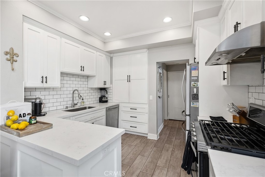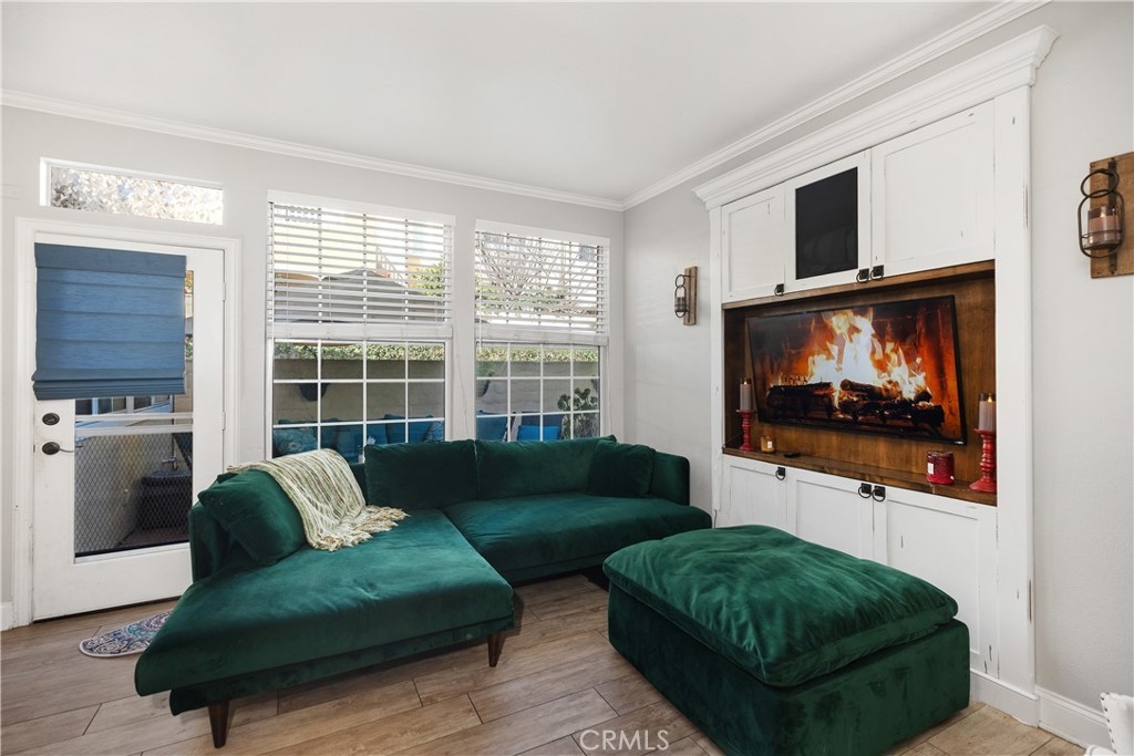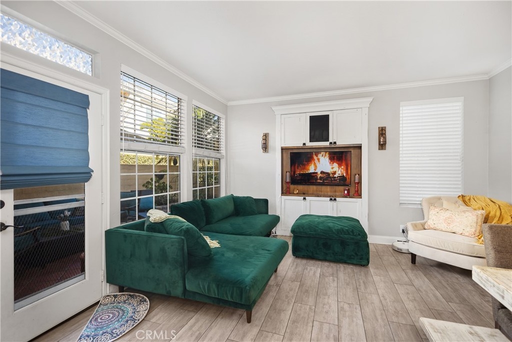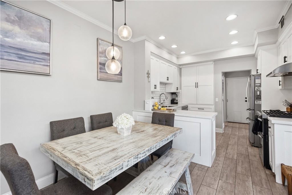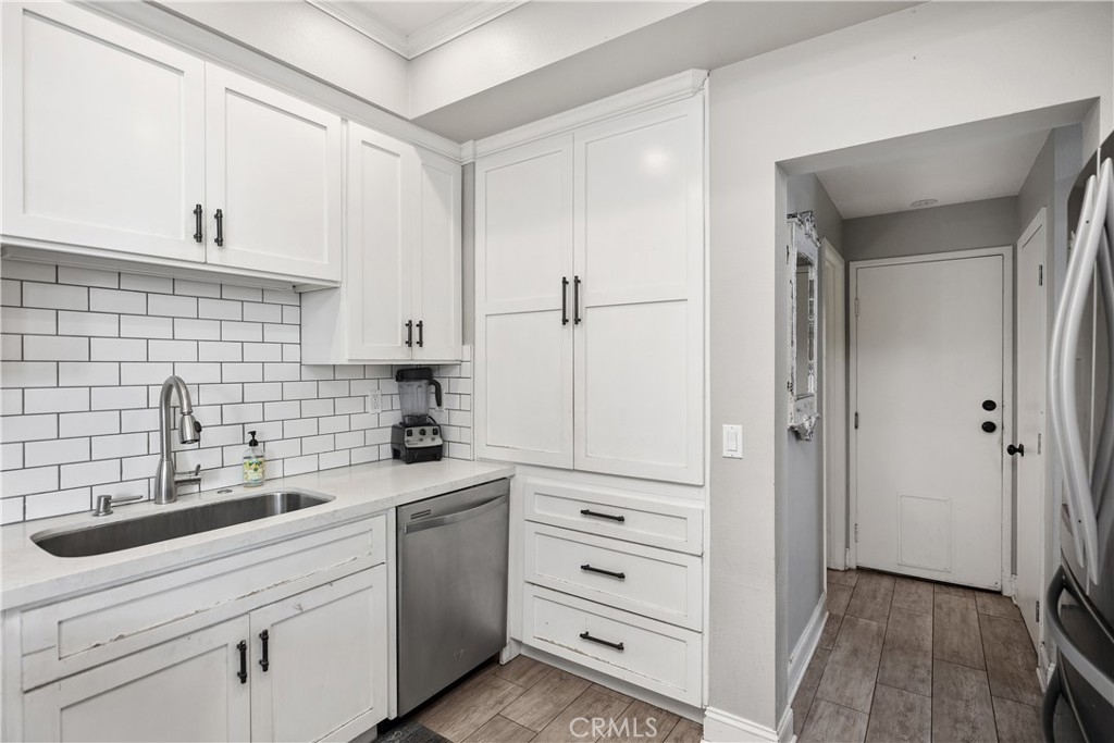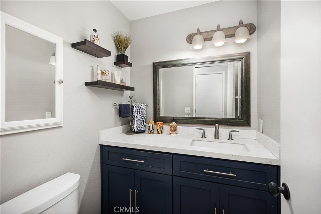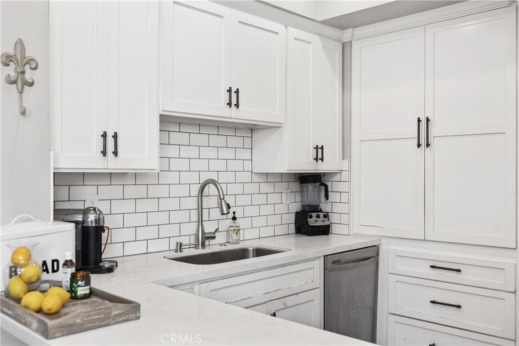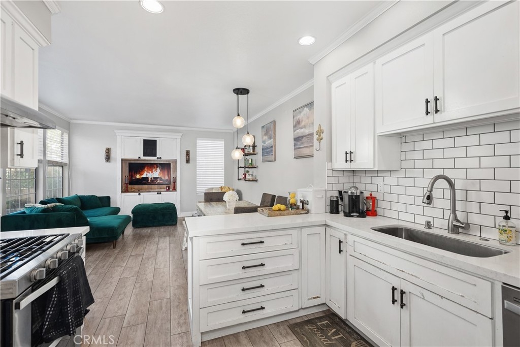 Discover this beautifully upgraded 3-bedroom, 2.5-bath townhome, ideally situated in a private location within the community. Natural light floods the open living spaces through expansive windows, highlighting the soaring vaulted ceilings. The inviting living room features a cozy fireplace, while wide-plank wood-look tile flooring spans the entire downstairs. The thoughtfully expanded kitchen is a chef’s dream, boasting white shaker cabinets, quartz countertops, a subway tile backsplash, a large stainless steel sink, premium stainless appliances, and a spacious pantry. The remodeled guest bathroom showcases elegant herringbone tile flooring, a gray shaker vanity, and a Calacatta quartz countertop. Upstairs, the primary suite offers a serene retreat with an alcove space and picturesque views of a lush, park-like setting. The family room features a custom white media niche, beautiful park views, and French doors leading to the expansive wraparound backyard—one of the largest in the community—offering privacy and ample space for entertaining. This home also includes a large garage with built-in storage and is the largest model in the tract. Additional Features include house repiped with Pex, whole house fan(big savings on energy costs), Newer HVAC(2020), New Water Heater(2022). Enjoy access to the community pool, spa, and amenities, all within walking distance. Conveniently located near scenic parks, hiking trails, award-winning schools, top-rated restaurants, shopping, and entertainment, with easy access to OC’s stunning beaches and luxury resorts.
