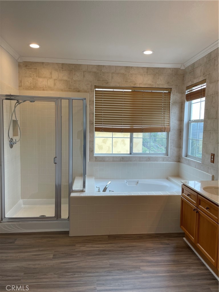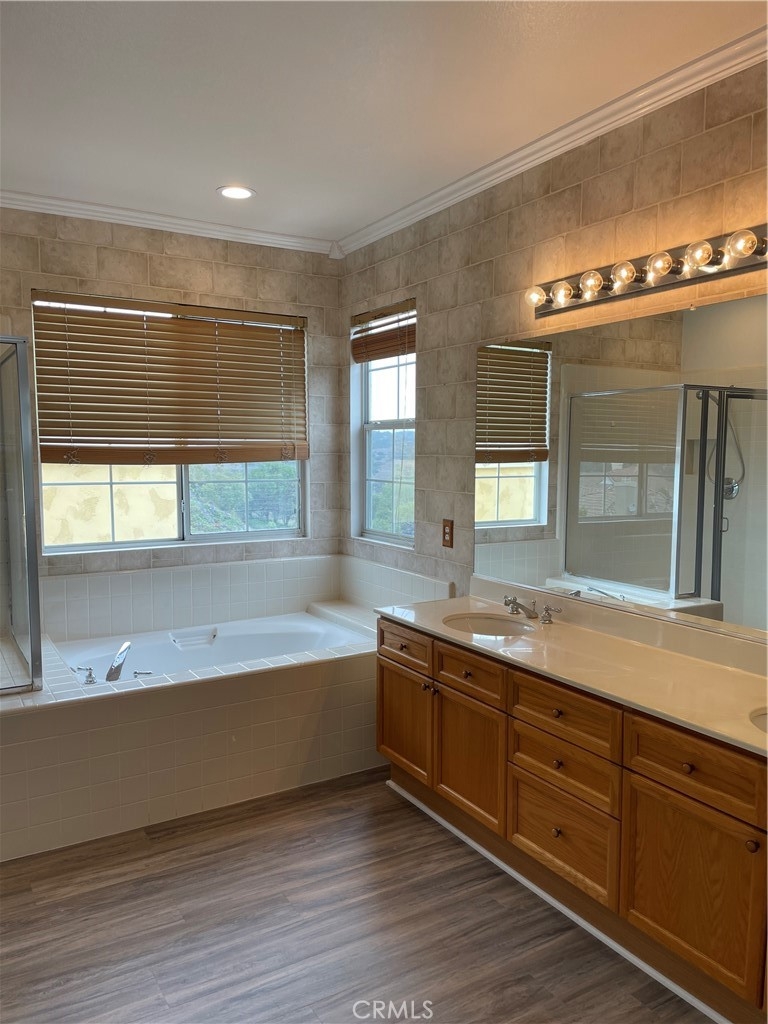 Beautiful home located in the desirable gated community of Vista De Oro. Large corner lot, detached condo that seems like a single family home in every way. Light & bright open plan, new paint, flooring and cathedral ceilings. Formal living, dining & family room. 4 bedrooms and 3 baths (one bedroom & full bath downstairs). Master bedroom has gorgeous mountains views. Large master bath with separate shower, bath tub & walk-in closet. Spacious kitchen with breakfast counter, breakfast nook and built-in desk area off kitchen. Window coverings, plantation shutters & Ceiling fans. Two car garage with storage cabinets and 'bonus' storage area. Walk or bike to Aliso & Wood Canyon wilderness parks and trails. Low Tax rate, No Mello-Roos. Easy access to 73, 5 & 405 freeways. Close to shopping, restaurants, movies & award winning schools.
