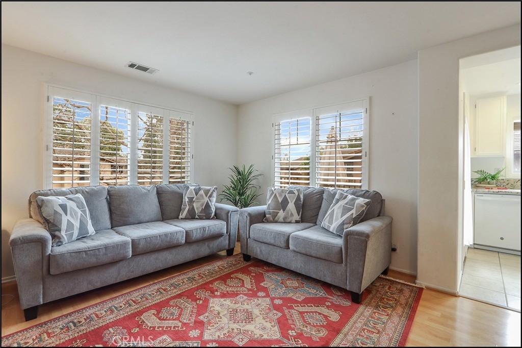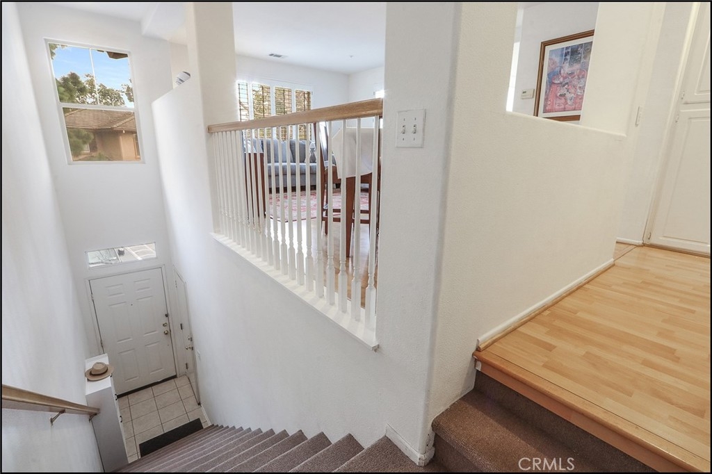 HIGHLY SOUGHT AFTER CANYON VISTA LOCATION NEAR THE CANYON, AMAZING PARK AND TRAILS! Popular Vista Heights end unit with direct access to garage, carriage style floor plan with no one living above and below, offering two bedrooms and two bathrooms, living and dining room with large windows to pour in plenty of natural light. Delightful kitchen with upgraded granite countertops, stainless steel refrigerator included, pantry and French door access to the private deck. Master suite featuring a walk-in closet and master bathroom with tub and shower and hall bathroom with walk-in shower. Upgraded flooring and HVAC system. Wide staircase and direct access to the attached garage with automatic garage door opener and full size washer and dryer area with washer and dryer included. There is also an assigned parking space conveniently located directly in front of the property and permit for 3rd car parking in open parking spaces. Resort style community pool and spa, clubhouse and gym, easy toll road (73) and beach access via 133, excellent proximity to highly sought after schools and Aliso Viejo Town Center with shops, restaurants and entertainment and nearby Canyon View Park, hiking, biking and nature trails!