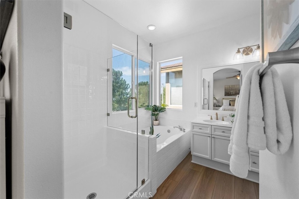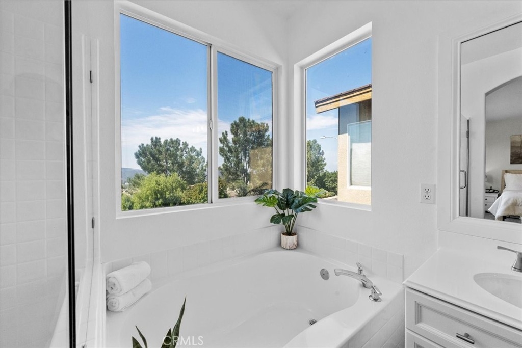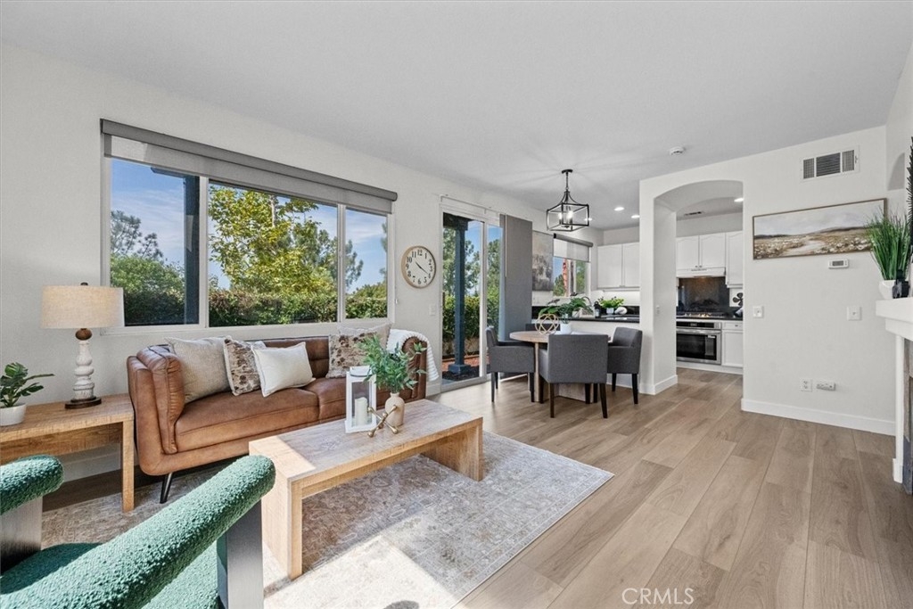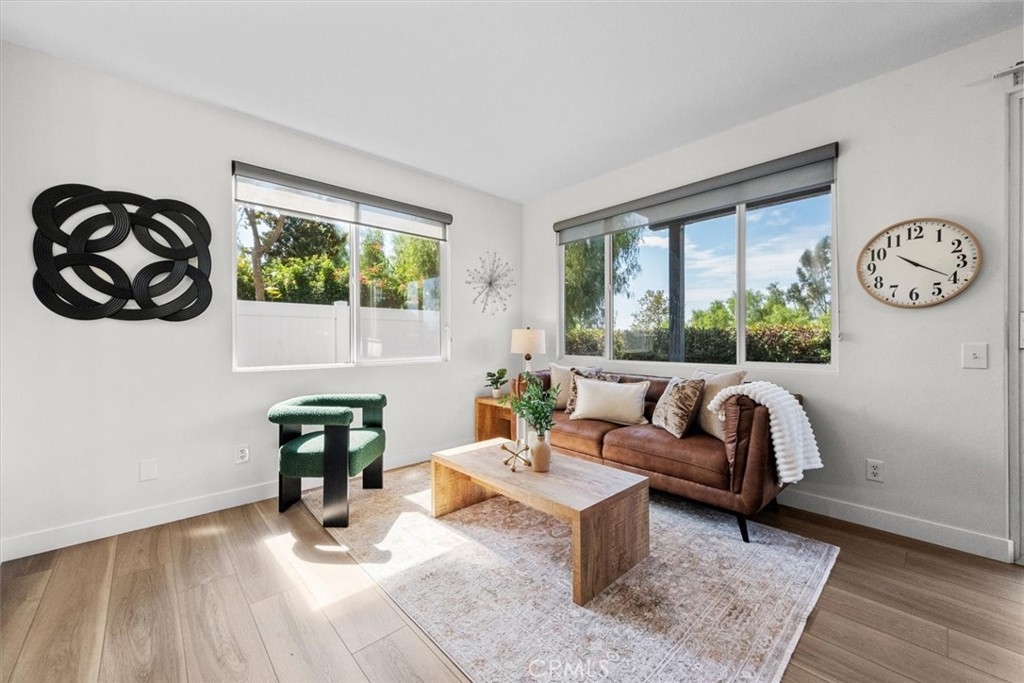 Just Freshened Up! This gorgeous corner lot home offers a front HOA grass maintained play area, wonderful views, and no neighbors behind—providing both privacy and tranquility. Freshly painted inside and out, and featuring brand-new, stylish flooring throughout, this home is truly move-in ready. The kitchen is a chef’s dream, boasting a new 5-burner cooktop, new oven, new dishwasher, and a stainless steel refrigerator—perfect for preparing delicious meals for friends and family. High ceilings flood the home with natural light, while the open floor plan creates a warm, welcoming atmosphere you'll love. The luxurious primary suite features its own private view deck, soaring ceilings with a cooling ceiling fan, a spacious walk-in closet, an oversized soaking tub, and a revitalized walk-in shower with a brand-new glass enclosure. You'll notice thoughtful upgrades throughout, including a new thermostat, modern lighting, and updated fixtures. The private backyard—with no homes behind—is ideal for relaxing, barbecuing, or entertaining. There's also a green space perfect for kids or pets to play. Plenty of guest parking is available out front, and the resort-style pool is just around the corner—great for exercising or unwinding with friends. Located in the heart of Aliso Viejo, you’ll enjoy top-rated schools, nearby parks, entertainment venues, and excellent dining. Explore scenic hiking and biking trails that lead to the ocean, with the beach just a short drive away. With easy access to the 73 Toll Road, commuting is a breeze. Don’t miss this opportunity to make this stunning home yours and experience the best of Southern California living!!