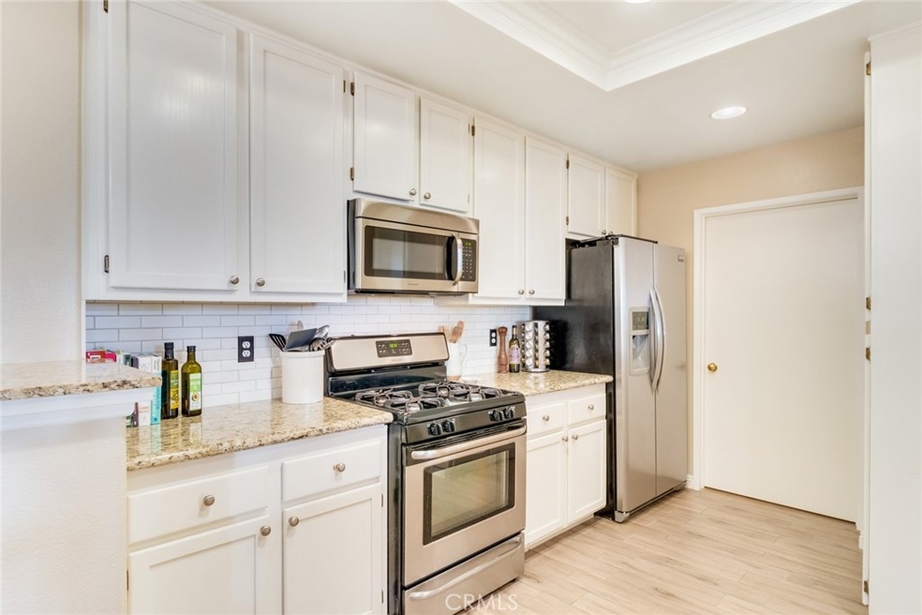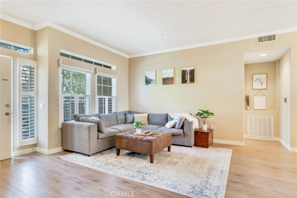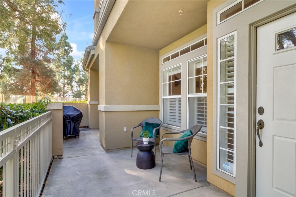 Welcome to Laguna Audubon Vistas - a premier Aliso Viejo community. Tastefully upgraded, ground level condominium with direct access to an attached 1 car garage. Step inside to find an open floor plan, high ceilings, plantation shutters & wood-look porcelain tile flooring. The kitchen boasts granite counters, tile backsplash, stainless steel appliances, serving bar and plenty of cabinetry. A generous dining space overlooks a cozy living room. The master suite has private patio access, views of rolling hills, dual sinks, large walk in closet and a chicly-designed walk-in, tiled shower. The secondary bedroom is privately situated on the opposite end of the home with a dedicated full bathroom. Enjoy morning coffee on the patio overlooking the greenbelt or wander down the pathway to the nearby sparkling pool & spa. There is a well-equipped gym on site along with clubhouse. The unit has the one car garage and a designated park spot. Information is deemed reliable, buyers or buyers' agent to verify.