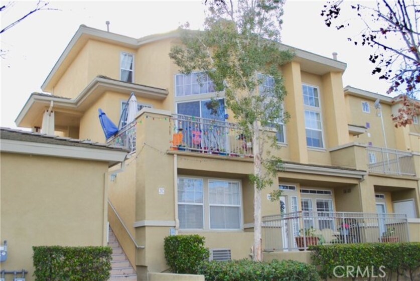Charming upper unit townhouse style condo with view 2 bedrooms, 2 full baths, Approximately 1070sft. No one above - 2 Level end unit -One Bedroom and Full bath on the main floor, Another Bedroom with full bath - Walk-in closet upstairs. Tile floor, recessed lighting, ceiling fans in dining area and master bedroom, high ceiling, town home style unit. High Ceiling, All appliances ( refrigerator and washer/dryer ) are included in the sale price. Self-cleaning oven and microwave. Mirrored closet in bedroom downstairs. Great floor plan with the bedrooms being far from each other on different floor. Huge outdoor patio with the panoramic view of the trees and mountains. Another patio located at the main front door area. 1 car detached garage and 1 assigned parking lot. Association pool, Jacuzzi, gym, clubhouse, BBQ, etc. Desirable private Aliso Viejo community in a great area close to shopping, restaurants, schools, beach, park, businesses, etc....
