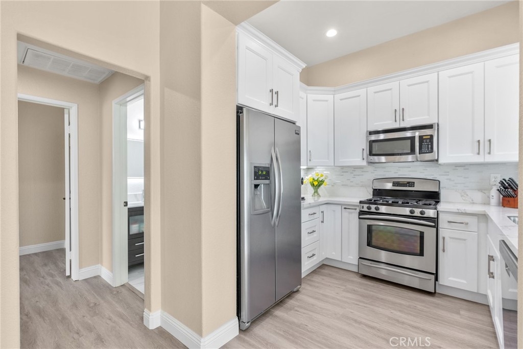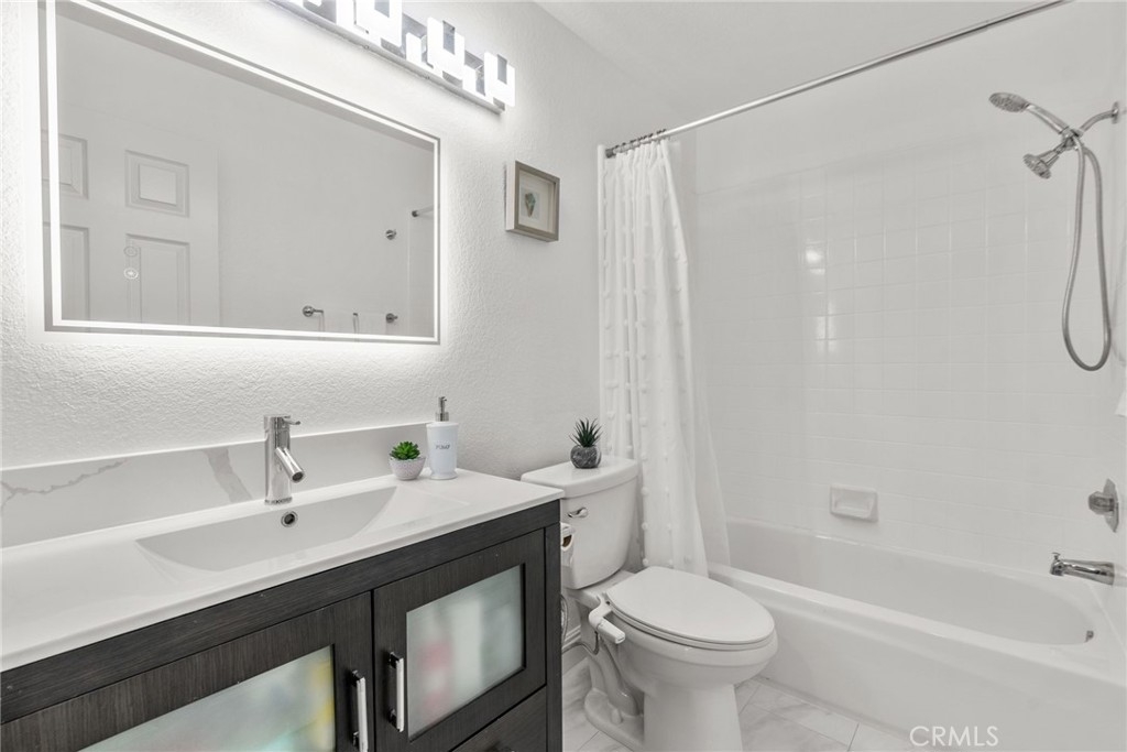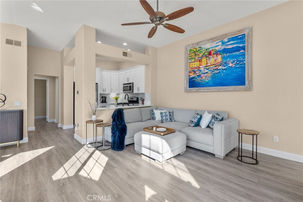 BEAUTIFUL TURN-KEY 2BR / 2BA END CARRIAGE UNIT IN THE GATED WINDFLOWER COMMUNITY – NO NEIGHBOR ABOVE OR BELOW, WALKING DISTANCE TO ALISO VIEJO TOWN CENTER & COSTCO Nestled in the TRANQUIL, GATED COMMUNITY OF WINDFLOWER, this MOVE-IN READY home blends COMFORT, STYLE, and PRIME LOCATION. Step inside to discover an OPEN, AIRY FLOOR PLAN with HIGH CEILINGS, WALLS OF WINDOWS, and LUXURY VINYL FLOORING that flows seamlessly throughout. The spacious LIVING ROOM with FIREPLACE opens to a PRIVATE PATIO, perfect for INDOOR-OUTDOOR LIVING and ENTERTAINING. The REMODELED KITCHEN showcases MODERN WHITE CABINETRY, MARBLE COUNTERTOPS, GLASS BACKSPLASH, STAINLESS-STEEL APPLIANCES, and a BREAKFAST BAR overlooking the DINING and LIVING AREAS. The PRIMARY BEDROOM boasts a VAULTED CEILING, CUSTOM WALK-IN CLOSET BY “CLOSETS BY DESIGN,” and a LUXURIOUS ENSUITE BATHROOM with DUAL VANITIES. The SECONDARY BEDROOM is versatile and well-sized, with the UPDATED SECOND FULL BATH conveniently located nearby. Additional highlights include an ATTACHED GARAGE + ASSIGNED CARPORT WITH EXTRA STORAGE, a SEPARATE LAUNDRY NOOK, NEW TANKLESS WATER HEATER (2020), and PEX RE-PIPING (2019). Enjoy PICTURESQUE GLIMPSES OF SADDLEBACK MOUNTAIN and RESORT-STYLE AMENITIES including a COMMUNITY POOL, SPA, BBQ AREA, PLAYGROUND, and LUSH GREENSPACE. With WALKING ACCESS TO COSTCO, ALISO VIEJO TOWN CENTER, RESTAURANTS, SHOPS, AND ENTERTAINMENT — plus EASY ACCESS TO HIGHWAY 73, NATURE TRAILS leading to LAGUNA BEACH, COMMUNITY EVENTS like SUMMER CONCERTS & 4TH OF JULY FIREWORKS, and ORANGE COUNTY’S BEST BEACHES just a short drive away — this home offers the PERFECT BLEND of CONVENIENCE, LUXURY, and ACTIVE LIFESTYLE.