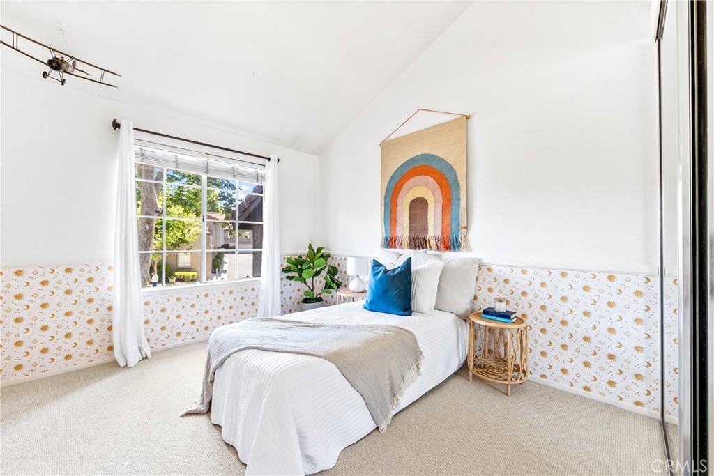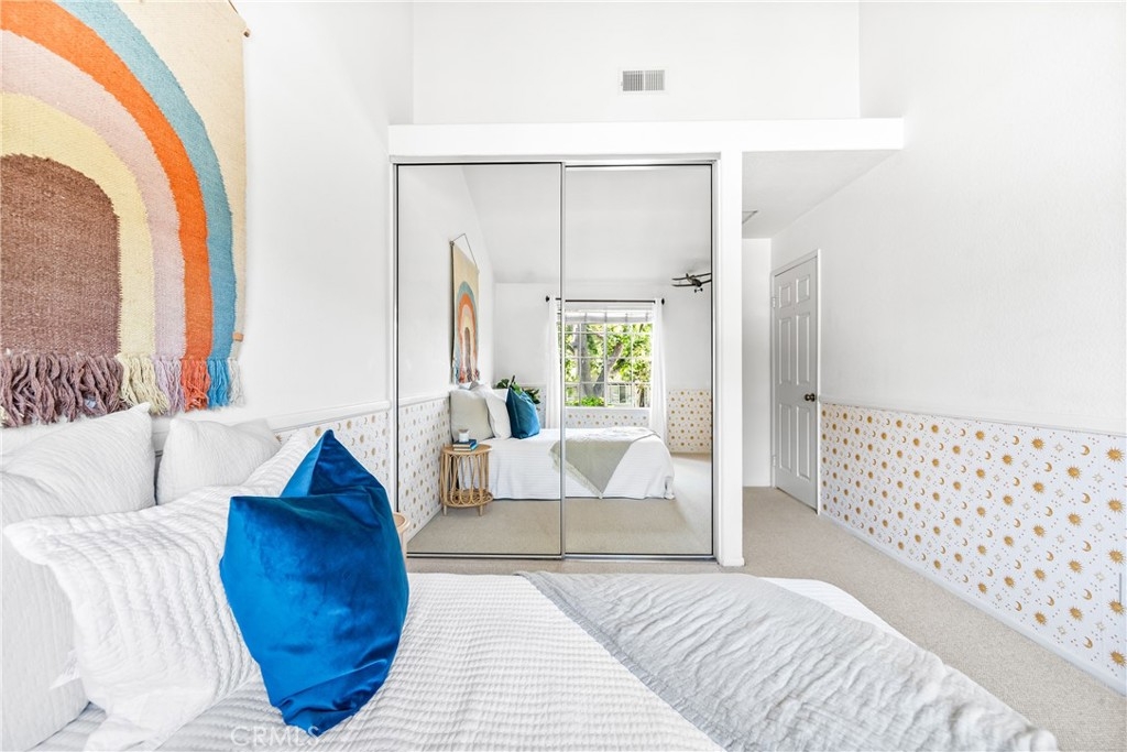 Welcome to this rare and desirable corner end-unit in the gated Windflower community of Aliso Viejo! This beautifully maintained 3-bedroom, 3-bathroom home offers the perfect blend of comfort, style, and versatility—with a highly sought-after main floor bedroom and adjacent full bath, ideal for guests, a home office, or multigenerational living. Step inside to discover a light-filled open floor plan featuring soaring vaulted ceilings, expansive windows, and a spacious living room anchored by a cozy fireplace—perfect for both relaxing evenings and entertaining guests. The open-concept kitchen is equipped with generous counter space, abundant cabinetry, and seamless sightlines to the dining and living areas, making it a hub for everyday living and social gatherings. Upstairs, the private primary suite impresses with vaulted ceilings, dual mirrored closets, and an ensuite bathroom with dual vanities and a separate shower/toilet area. An additional upstairs bedroom also features vaulted ceilings, a large closet, and its own ensuite bath—offering comfort and privacy for all. Enjoy your own enclosed outdoor patio—ideal for morning coffee, alfresco dining, or just unwinding in the sunshine. Additional highlights include a two-car direct access garage, in-garage laundry with washer and dryer included, and upgraded PEX plumbing. Residents of Windflower enjoy resort-style amenities including a sparkling pool and spa, BBQ and picnic areas, a playground, and lush greenbelts. All just moments from the Aliso Viejo Town Center, top-rated schools, dining, shopping, hiking/biking trails, beaches, and major freeways and toll roads. This is more than a home—it’s a lifestyle. Don’t miss this incredible opportunity!