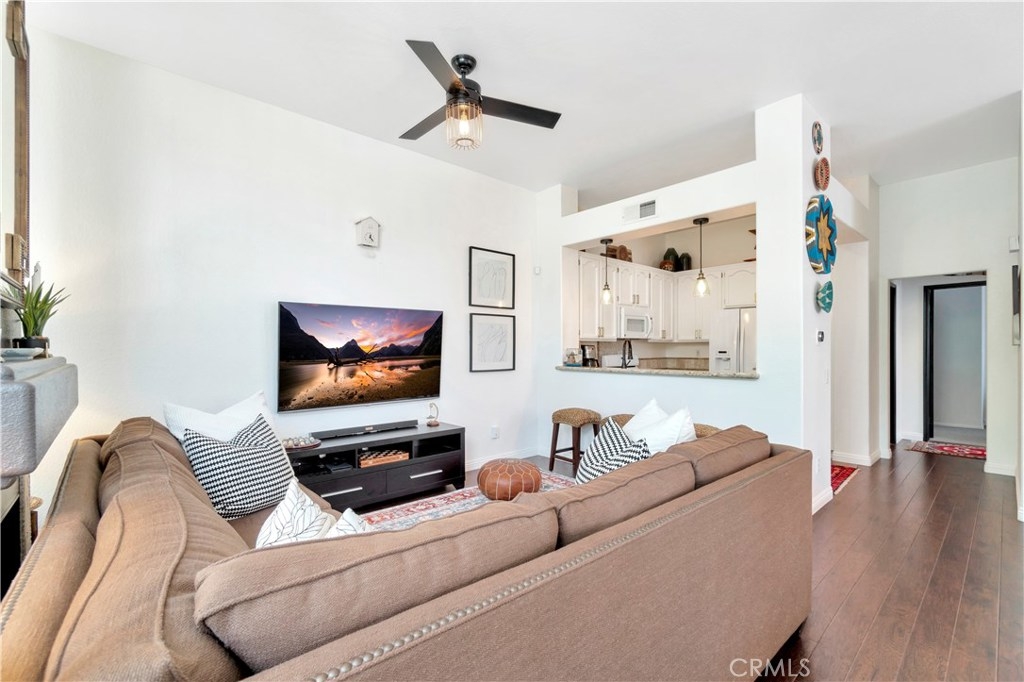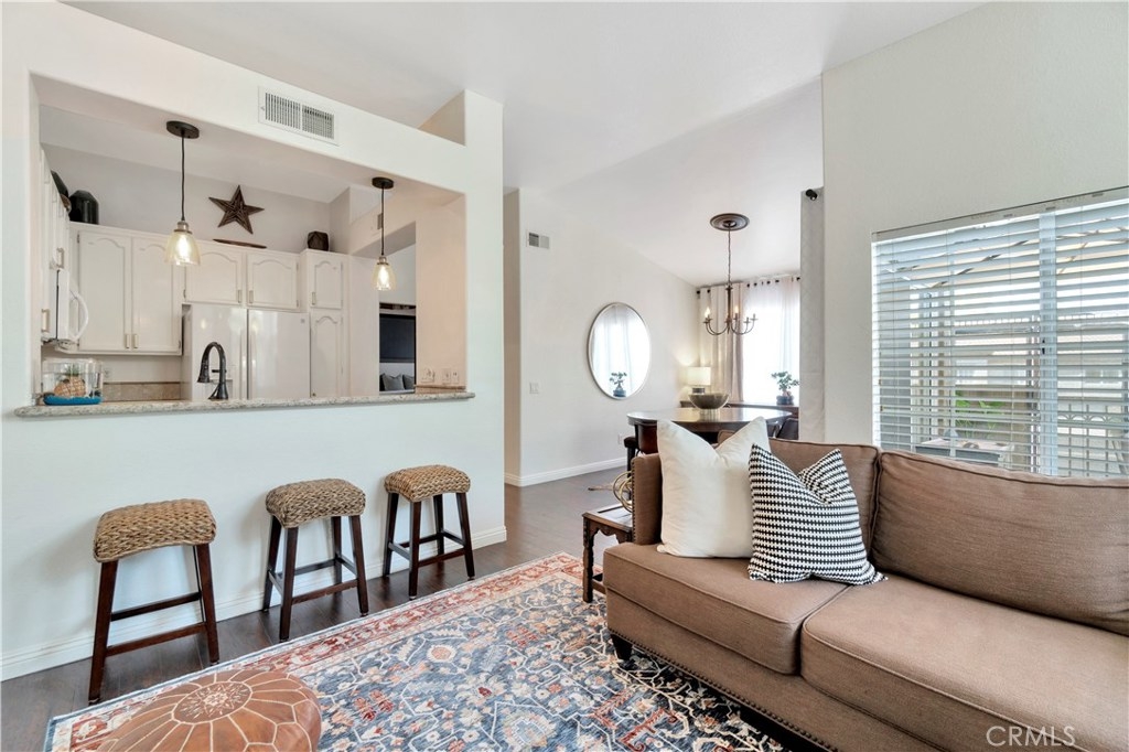 STUNNING END UNIT CONDO LOCATED IN A GATED COMMUNITY! Welcome to Windflower, one of Aliso Viejo's most sought after gated communities. This 2 bed 2 bath end unit is nestled on a premium location with plenty of natural light, grassy area just outside your front door, and an attached garage. Upon entry you are greeted with vaulted ceilings and a curved staircase which lead you to the open concept floor plan. Your kitchen is equipped with granite counters, white cabinetry, and plenty of storage space. Just off the formal dining room is a sliding glass door which leads to your private patio for entertaining. Nobody above or below you adds additional privacy. The guest bedroom features designer paint and accommodates large furnishings. The master bedroom is tastefully upgraded and showcases vaulted ceilings, accent wall, and an large master bathroom. Don't miss the opportunity to be centrally located to all of Aliso Viejo's amenities such as pool, movie theatres, shopping, and restaurants.