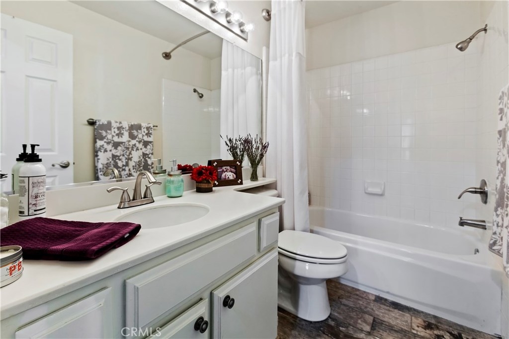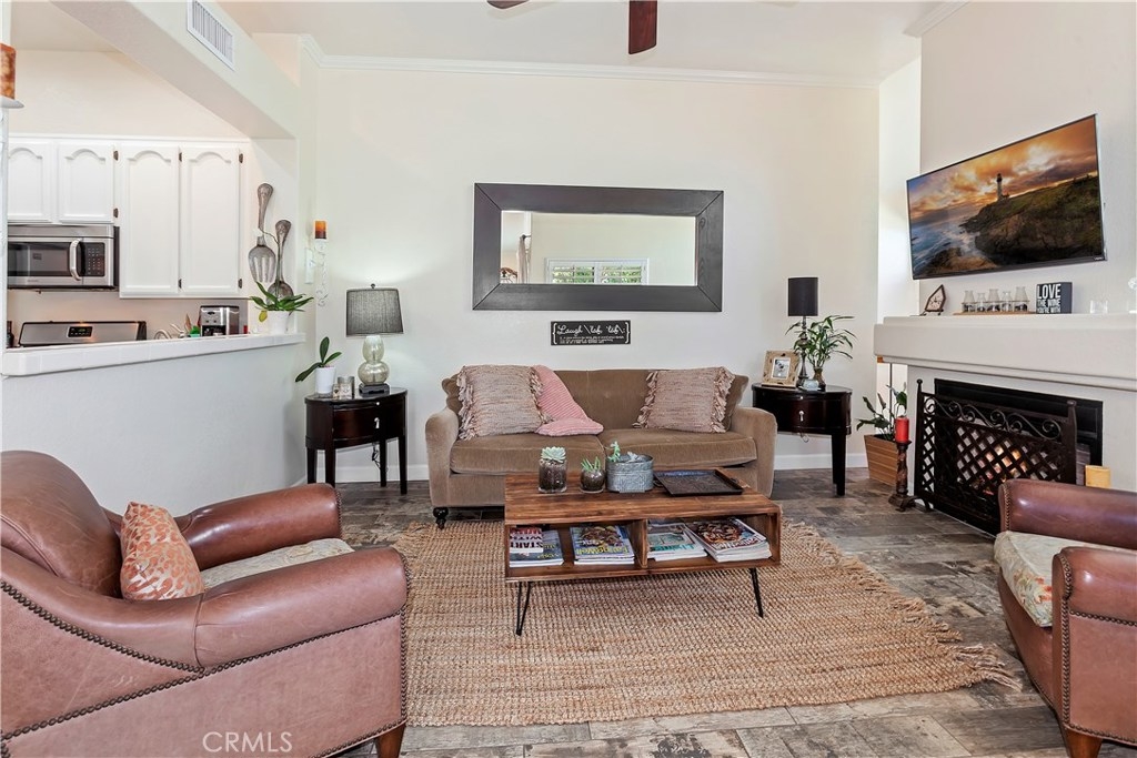 CUTE and nicely upgraded! BEAUTIFUL porcelain tile flooring THROUGHOUT! Darling carriage unit - newer upgraded dual-pane, vinyl windows, freshly painted kitchen and bathroom cabinets, clean, clean, clean! Plantation shutters make this home so easy to maintain...the huge deck is an extension to the peaceful outside with lovely views. Entry to home from the one-car garage (plus a covered assigned carport across from your new home), take stairs to one-level unit - loads of natural light, very high ceilings, many windows, this home shows bright and serene.