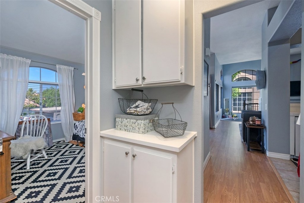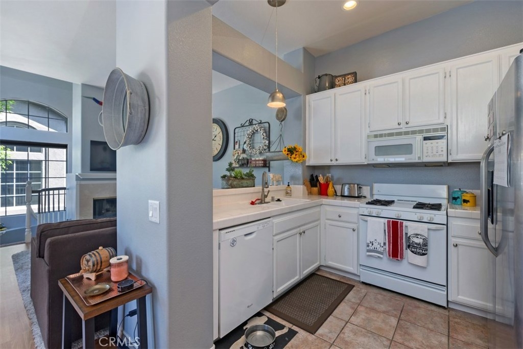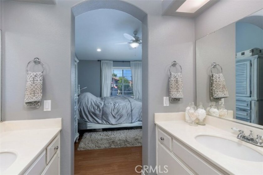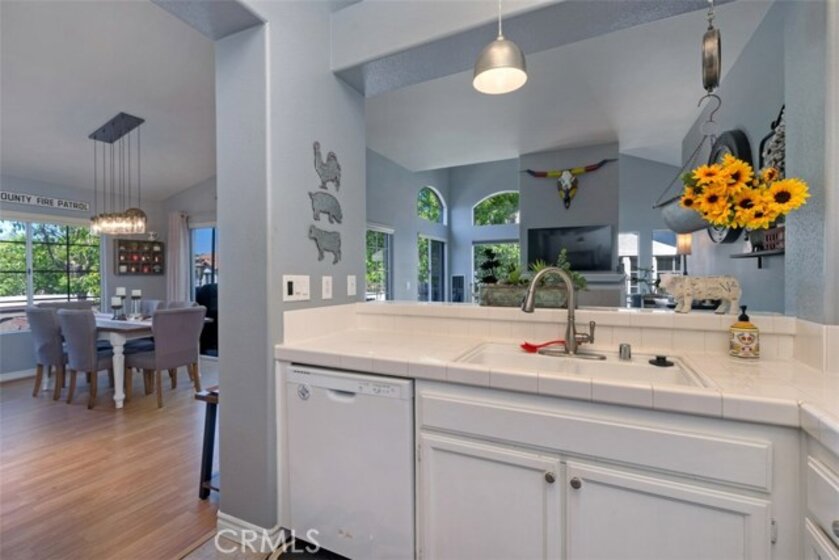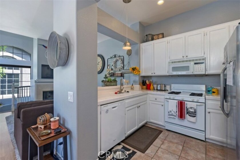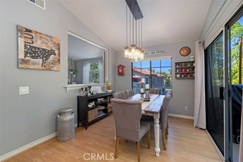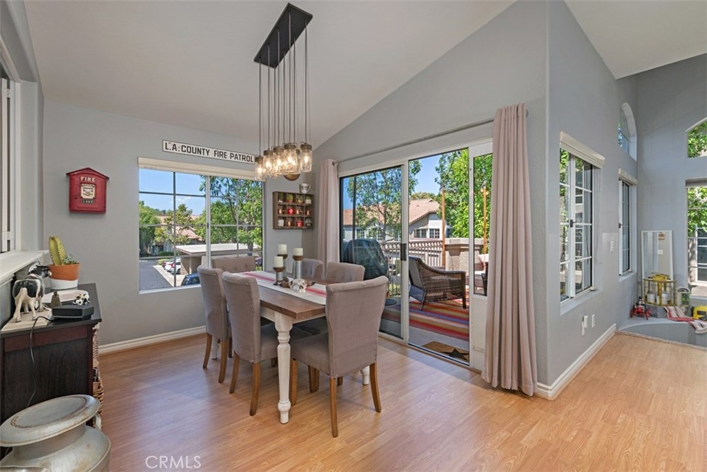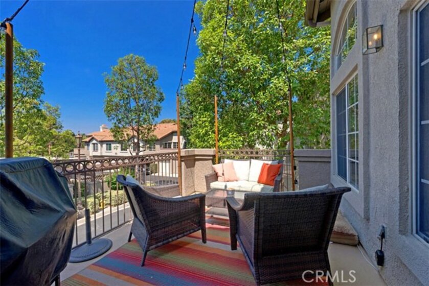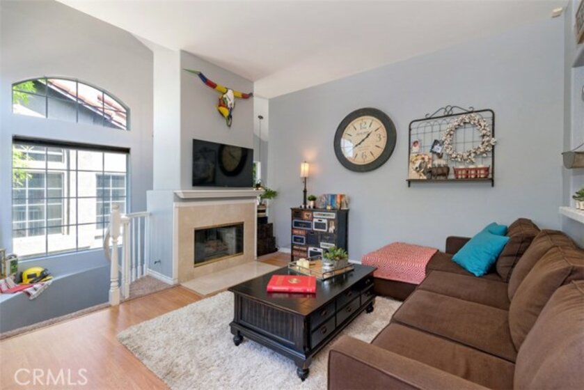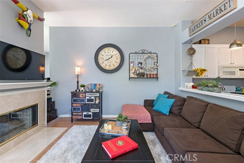 Beautiful end unit with no one above or below! Come see this light, bright, and airy floor plan in the gated Windflower Community. This turnkey home offers a large living and dining room with vaulted ceilings and designer accented fireplace. Windows everywhere allow for an abundance of natural light throughout. Lovely kitchen with lots of cabinet space and high ceilings. Upgraded laminate wood flooring, tile, baseboards, and designer two-tone interior paint. Spacious master suite with vaulted ceilings, walk-in closet, and double vanities. Large patio deck with views of mature trees and direct access to attached garage with extra side storage space. Highly sought after Windflower gated community with pool and spa, and close walking distance to nearby Aliso Viejo Town Center full of shops, restaurants, theatre, and easy toll road (73) and freeway access.