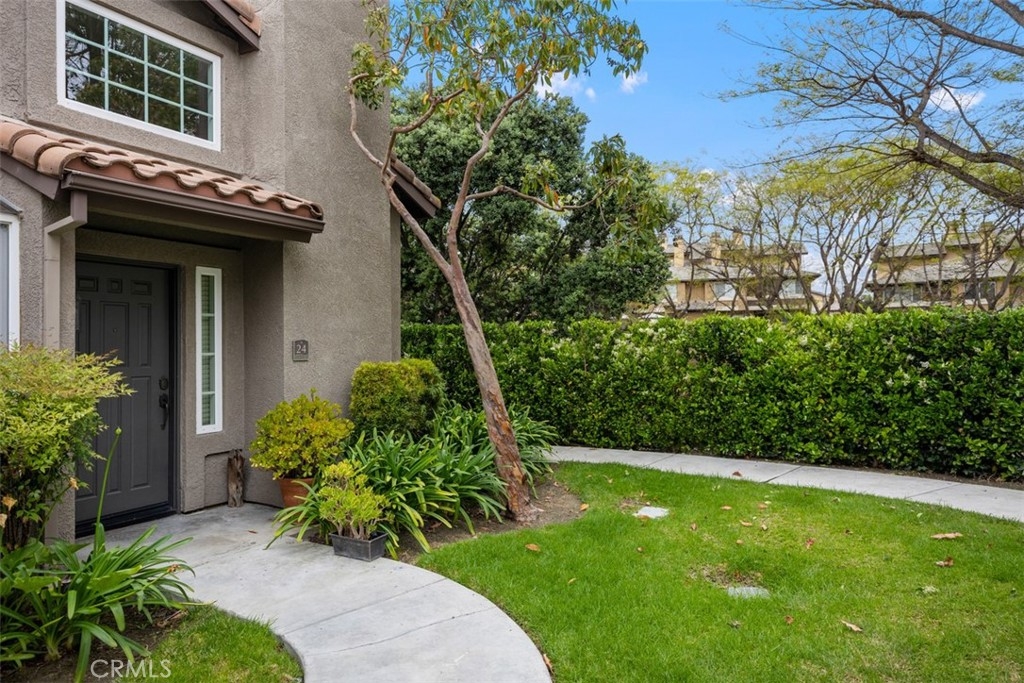 In the highly desirable and centrally located gated community of WINDFLOWER, this beautiful end unit townhome offers an inviting and open living area. A private location with no one above or below, high ceilings, lots of natural light and surrounded by trees and open green space. Living room with fireplace and dining area open to the beautiful kitchen with lots of cabinets and storage and ample countertops for entertainment. The patio is perfectly located for your relaxation and BBQ. Newer double pane windows, 3 bedrooms, 3 baths with one bedroom and attached full bath on the main floor. Beautiful upgraded staircase leading to the second level with all new flooring, spacious main bedroom includes a large closet and the main bathroom with dual vanities. The secondary bedroom can be a home office or den and the secondary bath is located directly across the hallway. This townhome includes a direct access to the 2 car attached garage with laundry hook-up, upgraded with PEX piping and new water heater. This gated community offers pool, spa, BBQ and picnic area and playground. Perfect location to enjoy the close distance to the shops, restaurants, the grocery store, and movie theater at the Aliso Viejo Town Center. With a close proximity to Laguna Beach, Aliso Viejo offers, many hiking and biking trails, aquatic center, holiday events and concerts, recreation classes and much more.