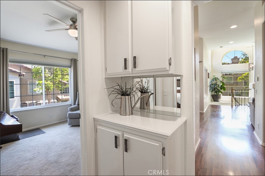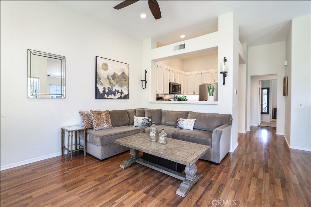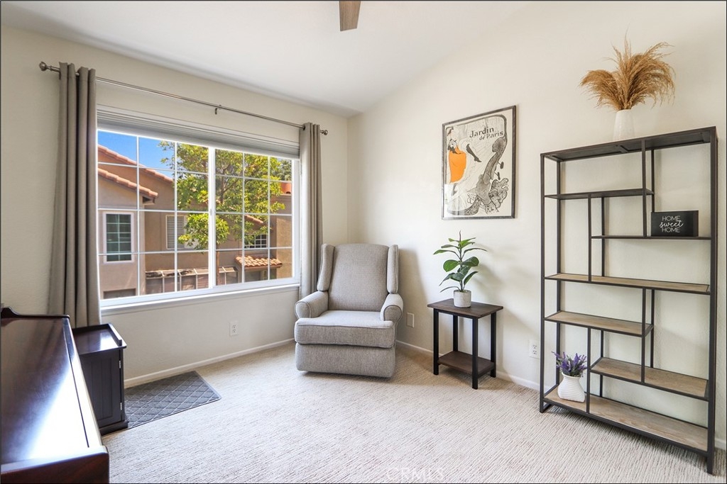 SPECTACULAR LOCATION OVERLOOKING LARGE GREENBELT AND ADDED PRIVACY, OPEN AND AIRY CARRIAGE UNIT FLOOR PLAN WITH HIGH CEILINGS, ATTACHED GARAGE AND UPGRADES! Awesome location and floor plan featuring a large living and dining room with fireplace and high ceilings, and lots of windows to bring in the plenty of sunshine! Upgraded dual glazed windows and sliding doors, Repiped with PEX, newer and upgraded HVAC, designer floors and wrought iron railing at stairs, upgraded designer lighting fixtures and two tone interior paint. Large kitchen with high ceilings, plenty of cabinets, designer counter tops, upgraded appliances, faucet and recessed lights. Spacious master suite with vaulted ceilings, large walk-in closet with pull down ladder, designer ceiling fan light fixture, and a large master bathroom with large oval tun, dual vanities with designer stone counter tops, upgraded lighting fixtures, faucets and framed mirrors, and second bedroom with vaulted ceilings. Large dining room with designer ceiling fan light fixture and upgraded sliding door access to large patio overlooking the large greenbelts and added privacy. Highly sought after end unit carriage style floor plan with direct access to attached garage and no one living above or below! Amazing location within the highly desirable and gated Windflower community with excellent proximity to Aliso Viejo Town Center, shops, restaurants and entertainment, highly sought after schools, easy toll road (73) and beach access (via 133) and nearby hiking, biking and nature trails! More description and photos Coming Soon!