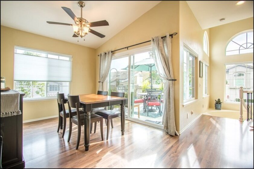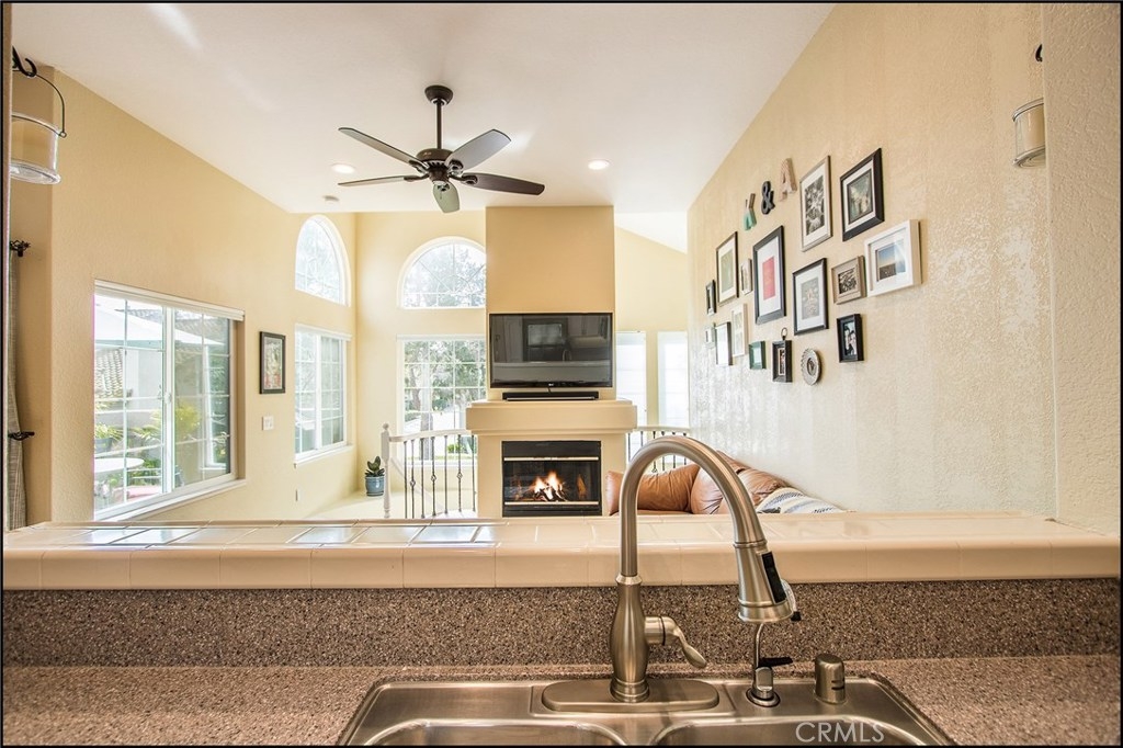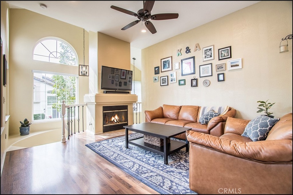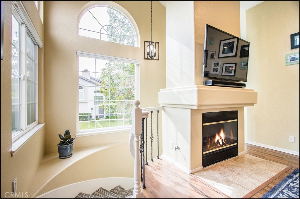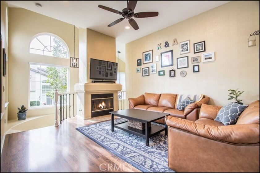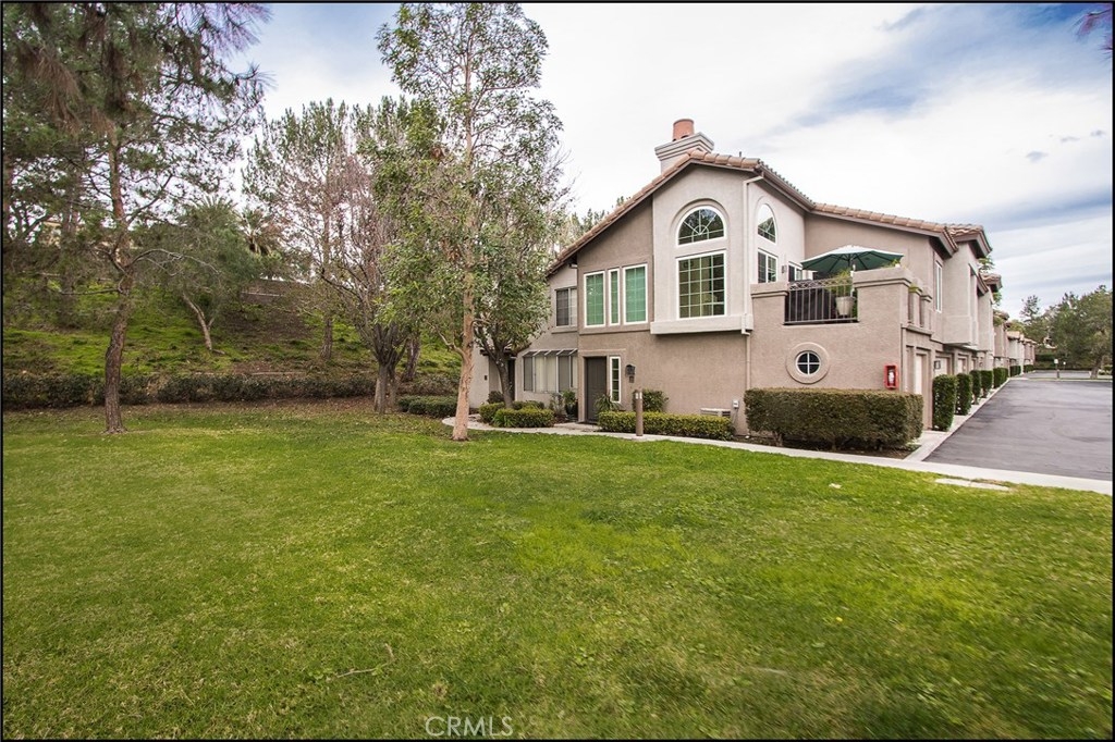 SPECTACULAR LOCATION OVERLOOKING LARGE GREENBELT AND ADDED PRIVACY, OPEN AND AIRY CARRIAGE UNIT FLOOR PLAN WITH HIGH CEILINGS, ATTACHED GARAGE AND UPGRADES! Awesome location and floor plan featuring a large living and dining room with fireplace and high ceilings, and lots of windows to bring in the plenty of sunshine! Upgraded dual glazed windows and sliding doors, designer floors and wrought iron railing at stairs, upgraded designer lighting fixtures and two tone interior paint. Large kitchen with high ceilings, plenty of cabinets, designer counter tops, upgraded appliances, faucet and recessed lights. Spacious master suite with vaulted ceilings, large walk-in closet with pull down ladder, designer ceiling fan light fixture, and a large master bathroom with large oval tun, dual vanities with designer stone counter tops, upgraded lighting fixtures, faucets and framed mirrors, and second bedroom with vaulted ceilings. Large dining room with designer ceiling fan light fixture and upgraded sliding door access to large patio overlooking the large greenbelts and added privacy. Highly sought after end unit carriage style floor plan with direct access to attached garage and no one living above or below! Amazing location within the highly sought after Windflower community with excellent proximity to nearby Aliso Viejo Town Center with shops, restaurants and theaters, easy toll road (73) and beach access (via 133) and award winning schools. Truly a 10+ and a must see now property!