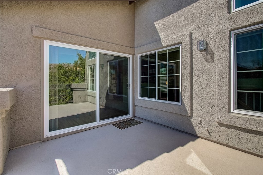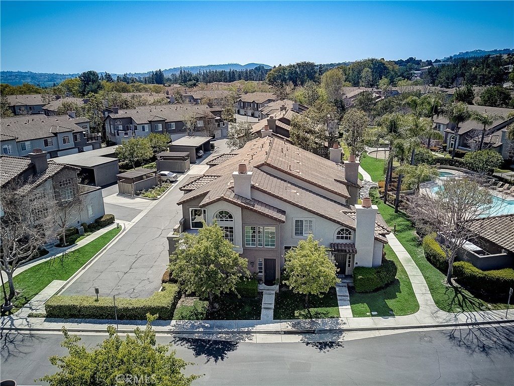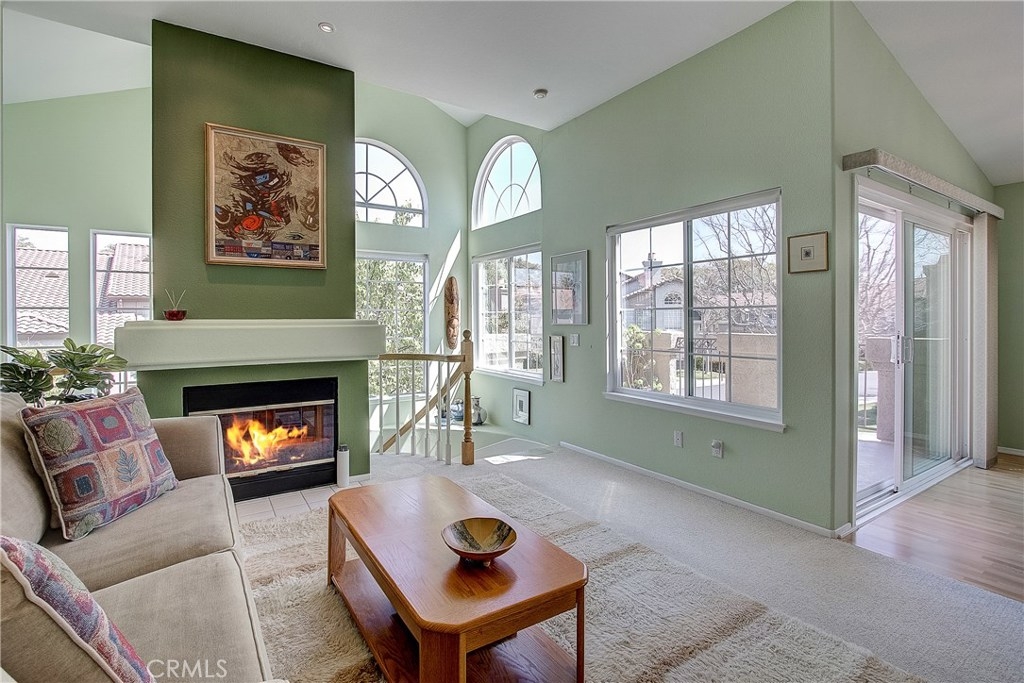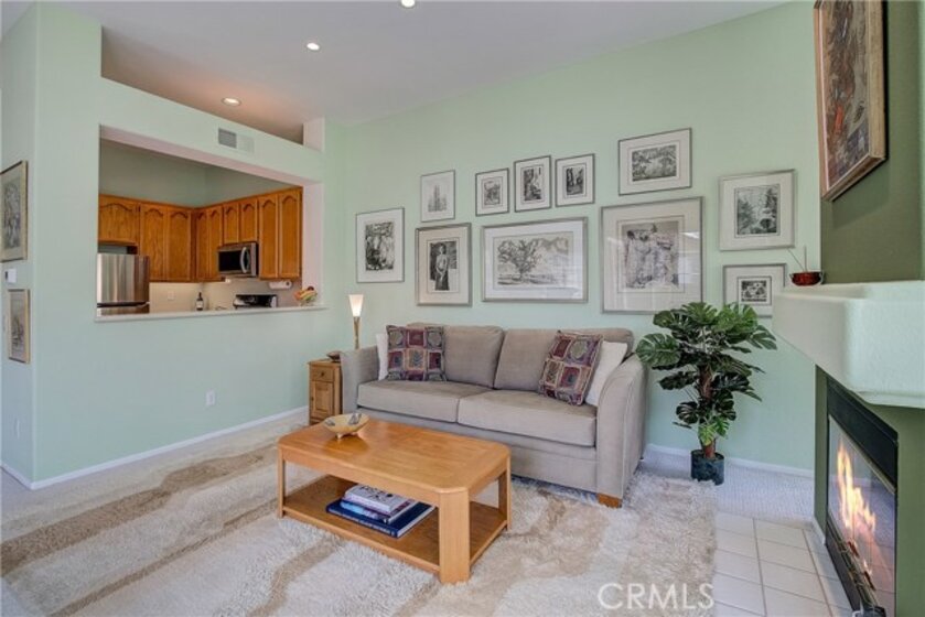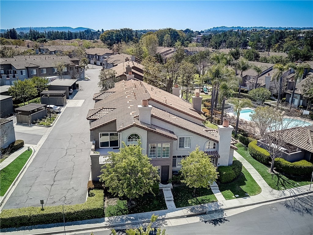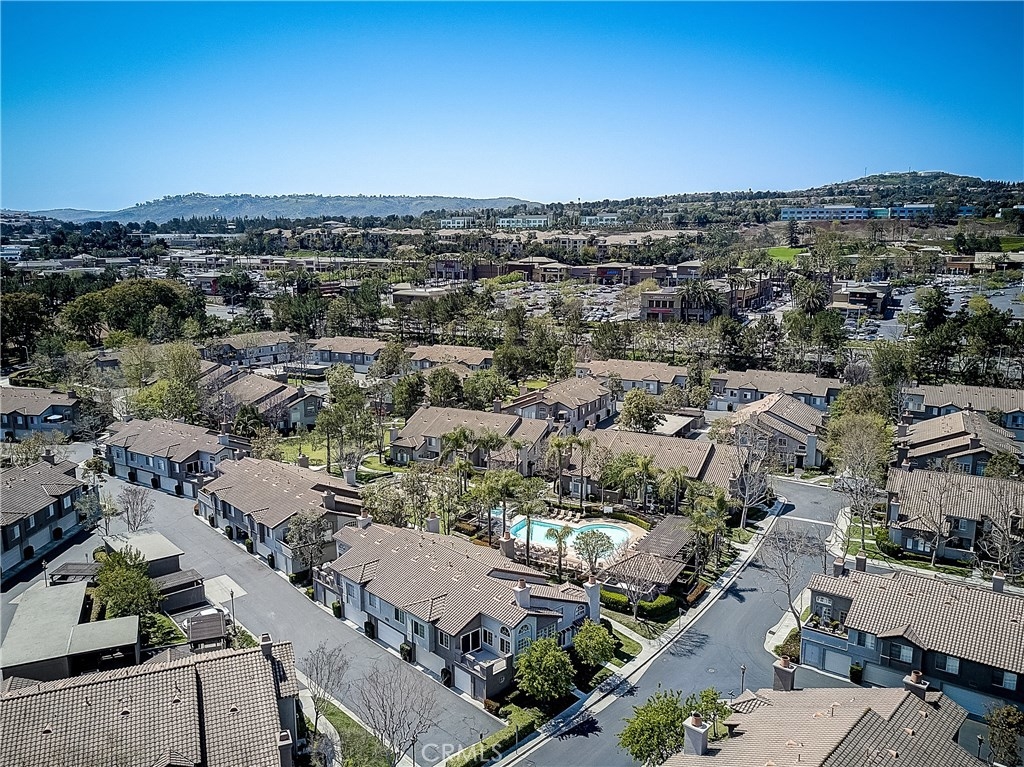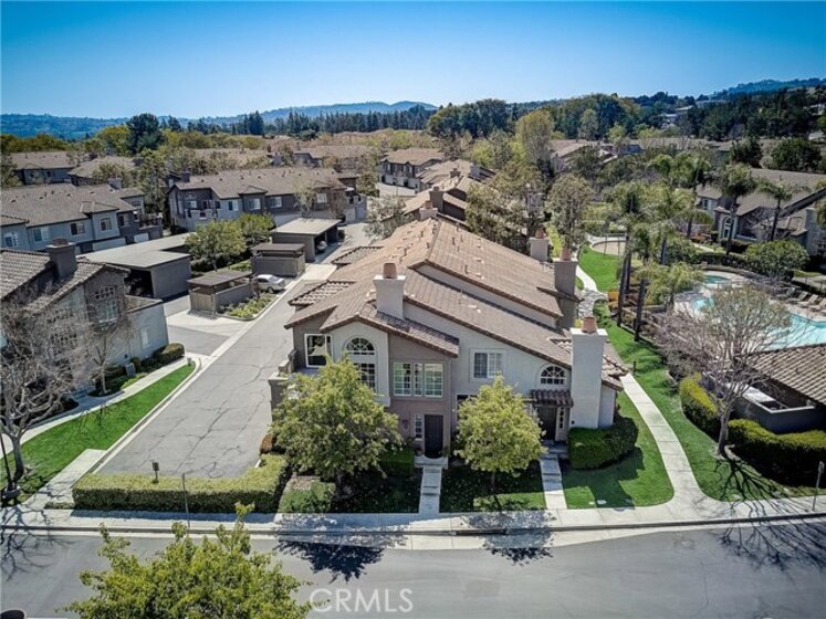 This upgraded, end-unit townhome with no one above or below located in the gated Windflower community of Aliso Viejo is move-in ready! Vaulted ceilings and light-catching Simonton Energy Star rated dual pane windows complement the bright and open floorplan. Upstairs to the living room are soaring ceilings and a cozy fireplace. The living room seamlessly flows to the dining area with warm hardwood floors and sliding doors to the spacious and private balcony. The kitchen features solid engineered stone counters with a full height backsplash. Down the hall, the master bedroom offers a walk-in closet with organizers and an en-suite full bathroom with dual sinks. The secondary bedroom, currently being used as an office, can easily be converted back to a bedroom and is adjacent to the full hall bathroom. Additional features include a tankless water heater, air filtration system and a one-car garage with direct access and an automatic garage door with remote control. Enjoy the nearby community pool and tot lot. Centrally located nearby Aliso Viejo Town Center, 73 Toll Road, trails, award-winning schools and just a short distance to the beach.