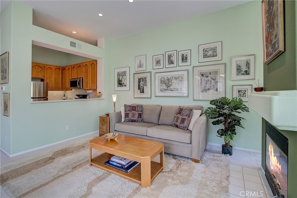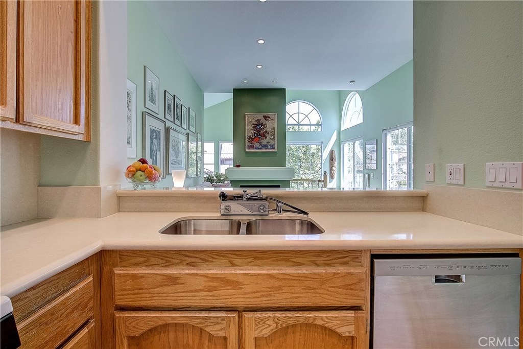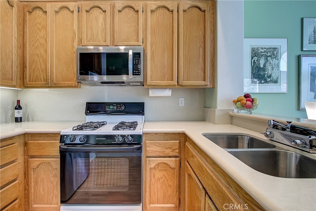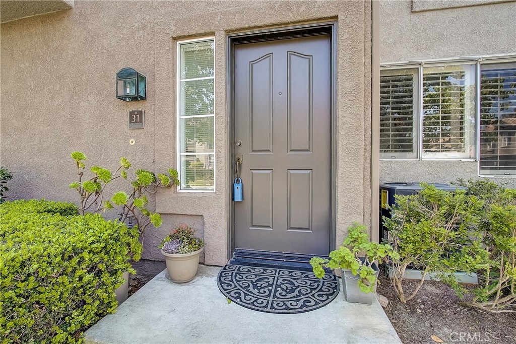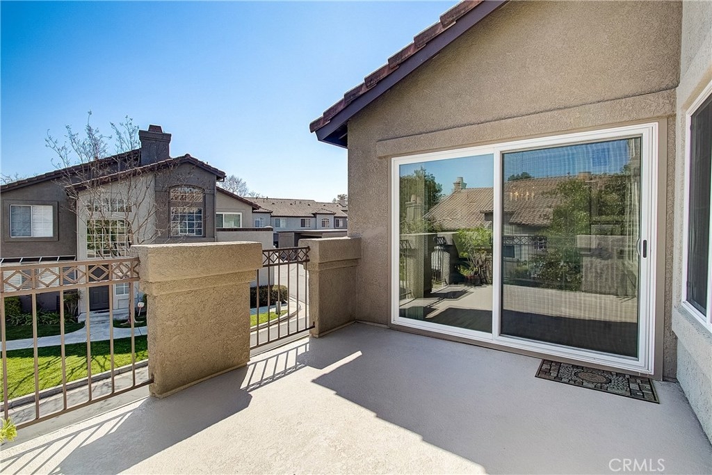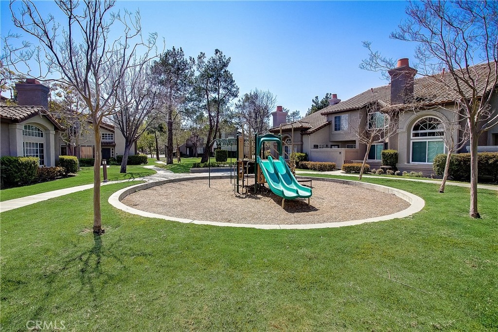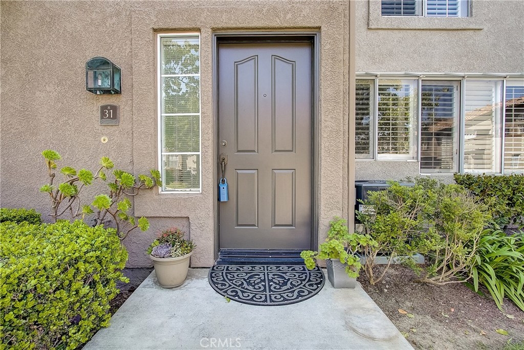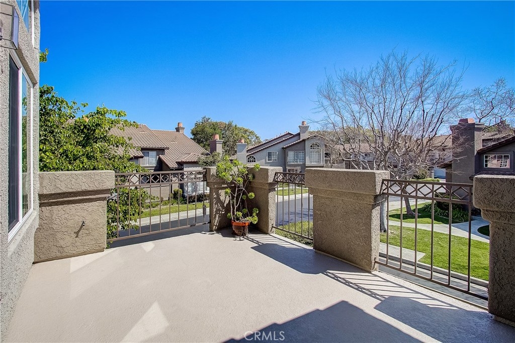 This upgraded, end-unit townhome with no one above or below located in the gated Windflower community of Aliso Viejo is move-in ready! Vaulted ceilings and light-catching Simonton Energy Star rated dual pane windows complement the bright and open floorplan. Upstairs to the living room are soaring ceilings and a cozy fireplace. The living room seamlessly flows to the dining area with warm hardwood floors and sliding doors to the spacious and private balcony. The kitchen features solid engineered stone counters with a full height backsplash. Down the hall, the master bedroom offers a walk-in closet with organizers and an en-suite full bathroom with dual sinks. The secondary bedroom, currently being used as an office, can easily be converted back to a bedroom and is adjacent to the full hall bathroom. Additional features include a tankless water heater, air filtration system and a one-car garage with direct access and an automatic garage door with remote control. Enjoy the nearby community pool and tot lot. Centrally located nearby Aliso Viejo Town Center, 73 Toll Road, trails, award-winning schools and just a short distance to the beach.