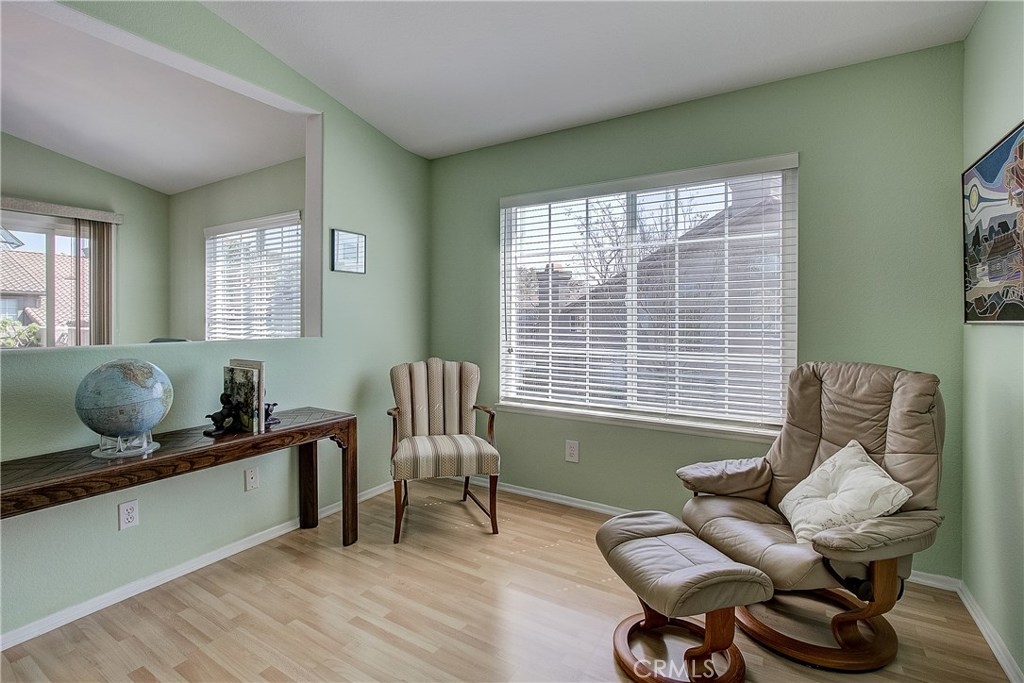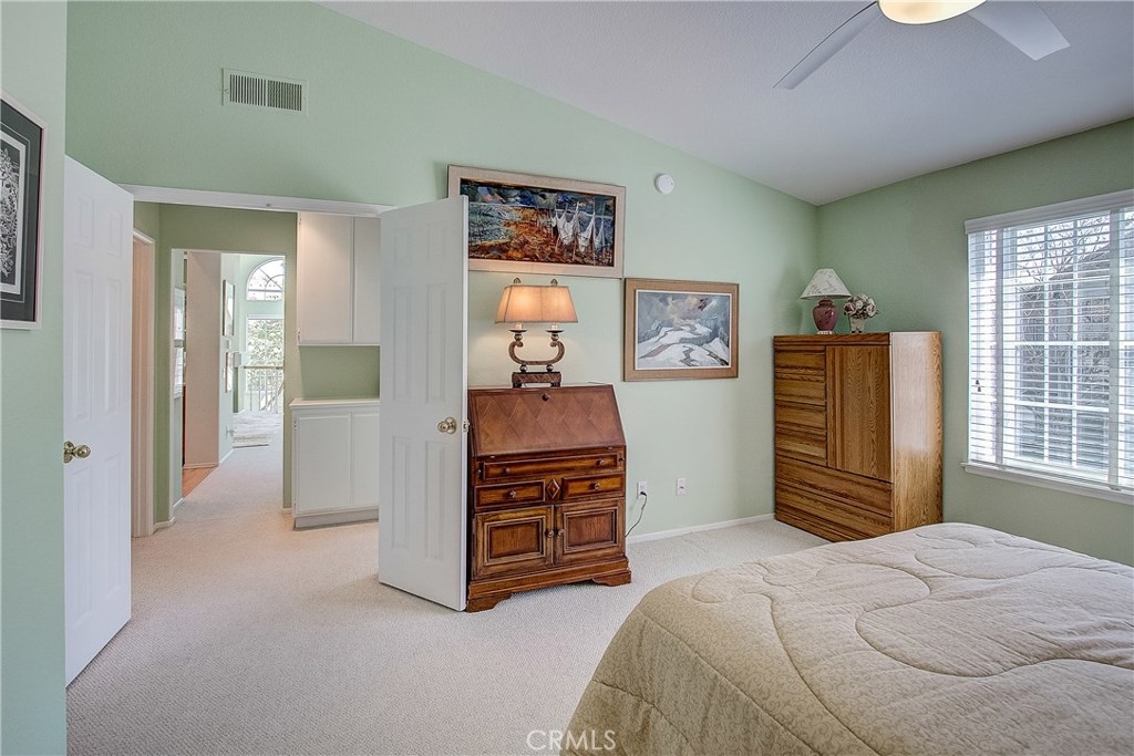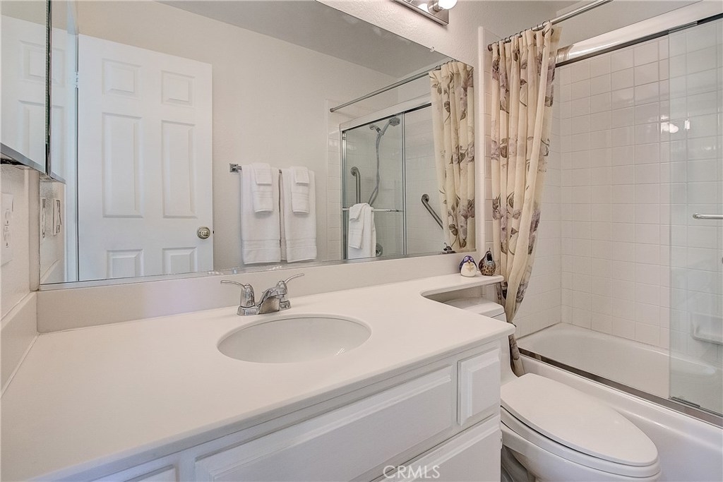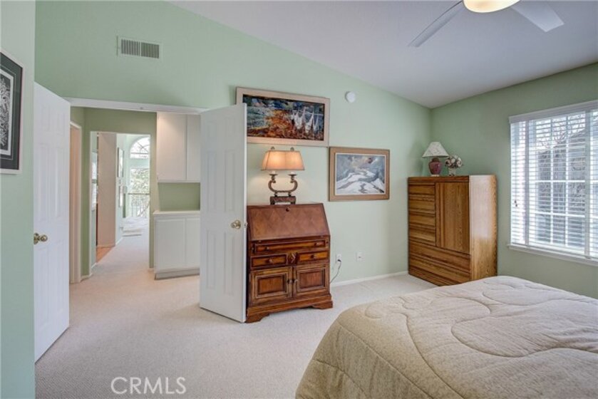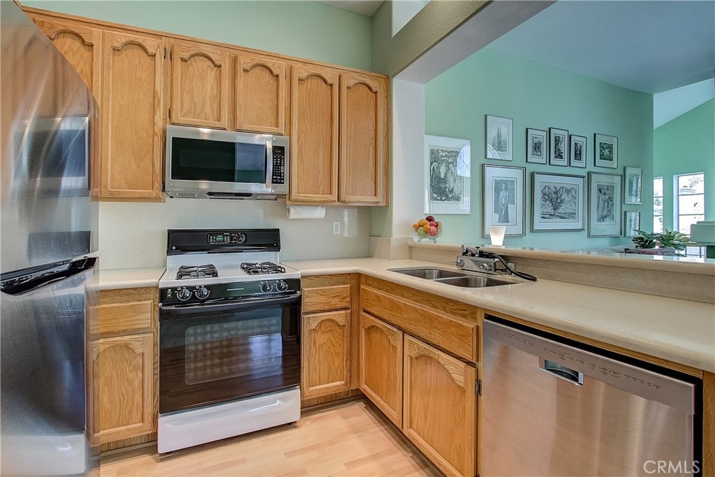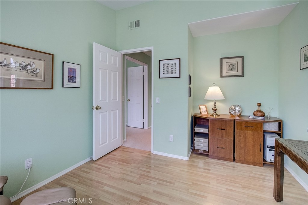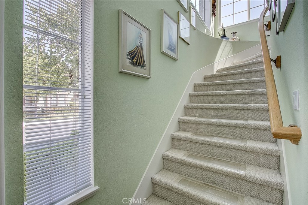 This upgraded, end-unit townhome with no one above or below located in the gated Windflower community of Aliso Viejo is move-in ready! Vaulted ceilings and light-catching Simonton Energy Star rated dual pane windows complement the bright and open floorplan. Upstairs to the living room are soaring ceilings and a cozy fireplace. The living room seamlessly flows to the dining area with warm hardwood floors and sliding doors to the spacious and private balcony. The kitchen features solid engineered stone counters with a full height backsplash. Down the hall, the master bedroom offers a walk-in closet with organizers and an en-suite full bathroom with dual sinks. The secondary bedroom, currently being used as an office, can easily be converted back to a bedroom and is adjacent to the full hall bathroom. Additional features include a tankless water heater, air filtration system and a one-car garage with direct access and an automatic garage door with remote control. Enjoy the nearby community pool and tot lot. Centrally located nearby Aliso Viejo Town Center, 73 Toll Road, trails, award-winning schools and just a short distance to the beach.