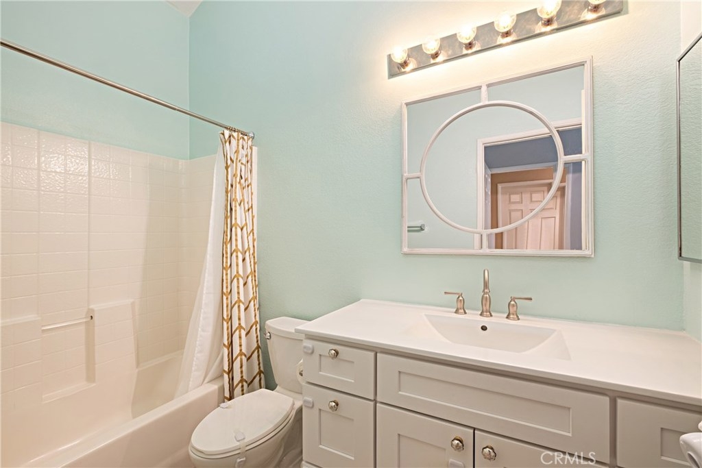 A rare 3 bedroom with a full bed and bath downstairs! This home has been beautifully upgraded throughout. The kitchen has been recently remodeled with new appliances, cabinetry, and granite counters. There are very trendy pendant lights over the granite counters. A reverse osmosis system delivers great tasting, super-clean water. The first level has stylish porcelain tile flooring that looks like wood but with superior durability and ease of maintenance. The large downstairs bedroom looks out to a spacious enclosed patio. Upstairs there are two more bedrooms including the spacious owner's bedroom. All bathrooms have been upgraded with new cabinetry, sinks, fixtures, counter tops, and mirrors. The plumbing has been replaced throughout the home and community with Pex piping about a year ago. The exterior of the home has been recently painted. The main floor great room has vaulted ceilings and a dramatic fireplace with handsome granite matching the kitchen counters. The private outdoor patio is perfect for dining, entertaining or just hanging out. 2 car attached garage and plenty of nearby guest parking. The Windflower community features a pool, spa, outdoor bar-be-cue and dining area, and a kid's area with a climbing play structure.