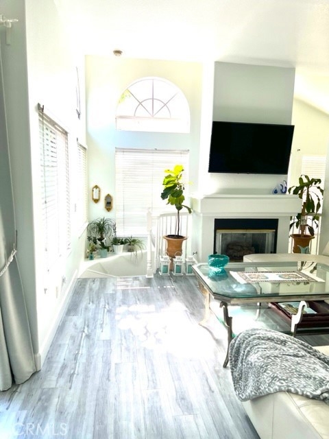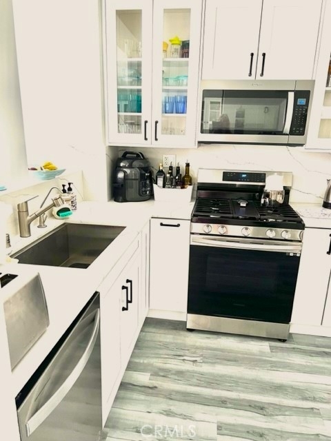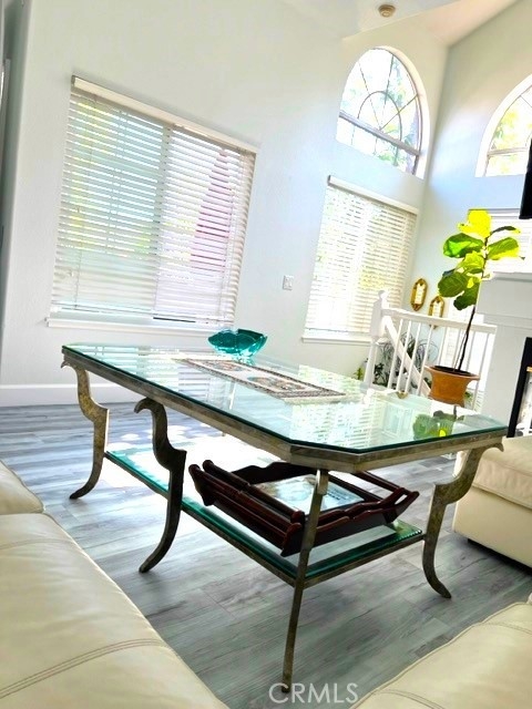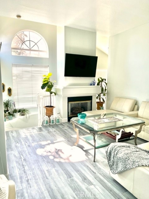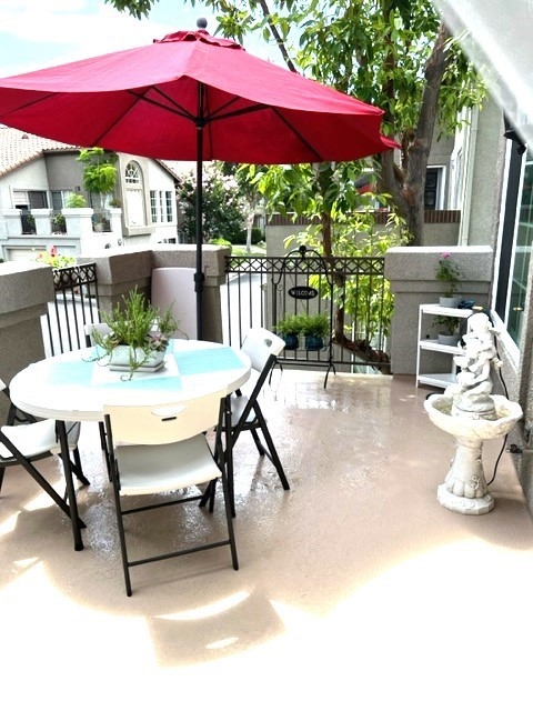 End Carriage unit in highly desirable gated community of Windflower. 2 bedrooms 2 baths Light & bright one level condo built over the garage, high ceiling living room with fireplace, & separate dining room that opens to an oversized Balcony. Master bedroom with high ceiling and walk-in closet. Re-piped. dual flush toilets. Remodeled kitchen with quartz countertops, eating counter, stainless steel appliances, & new osmosis water filter. New windows and patio doors, new flooring, remodel fireplace. New HVAC installed in 2019. Newly surfaced deck with new light fixtures. Direct access one car garage with storage space & two whirlpool garage cabinets, epoxy floors, Lift Master motor changed in 2019. One carport parking space with storage. Laundry area with almost new washer & dryer located in the garage. Tankless water heater installed in 2019. Association includes pool, spa, BBQ area, & tot lot. Near the Aliso Viejo Shopping Center with shopping, dining, movie theater, and access to the Freeway and Toll Road.
