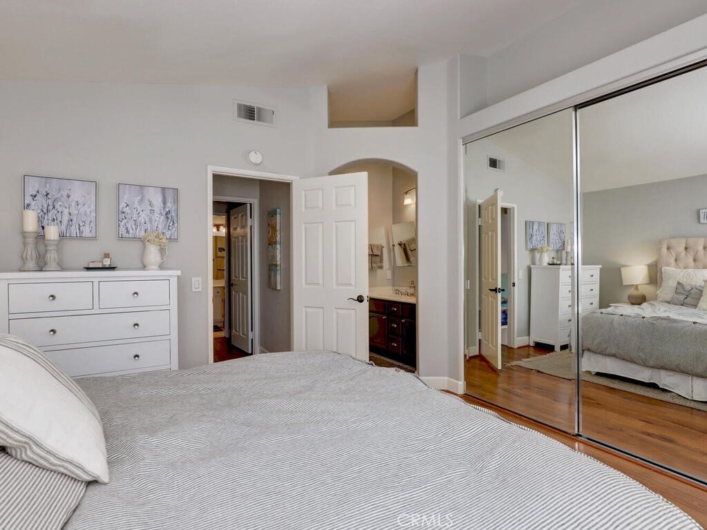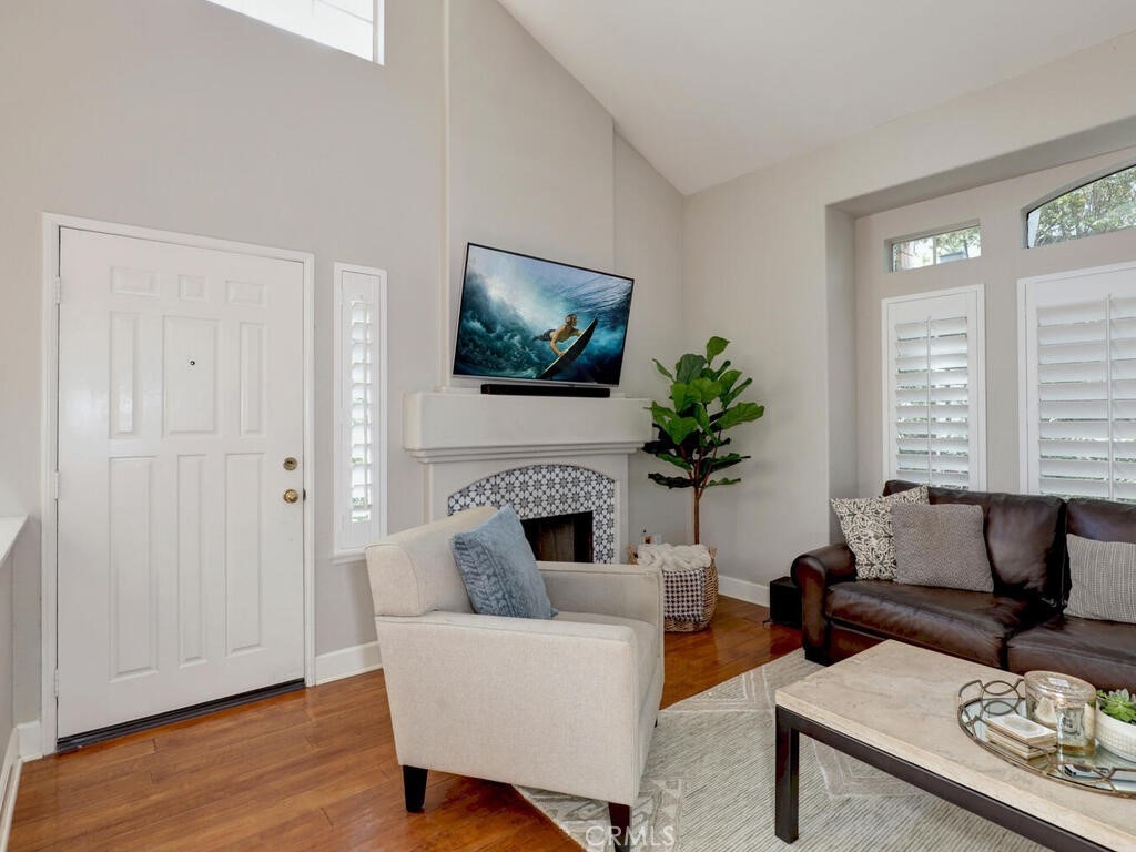 Welcome home! Beautiful two story end unit with lots of natural light and open spaces. Recently remodeled kitchen features white Quartz counter top with breakfast bar, farm sink, stainless appliances. Pantry area for storage. Spacious living room with fireplace. Plantation shutters, hardwood flooring downstairs, laminate flooring upstairs, direct access to 2 car garage. First floor bedroom/office and bathroom. Private patio area. Laundry in garage. Complex has a gated entrance, pool, playground and grassy areas. This community was re-piped with PEX. Located near Aliso Viejo Town Center with easy access to restaurants and shopping.