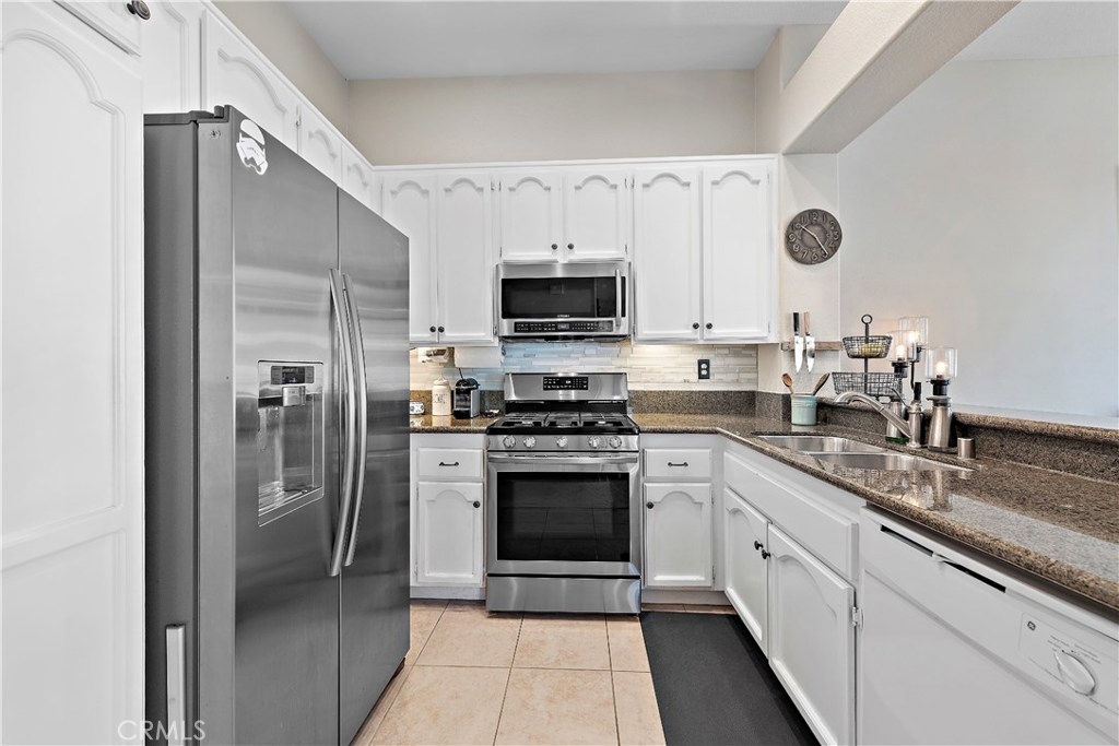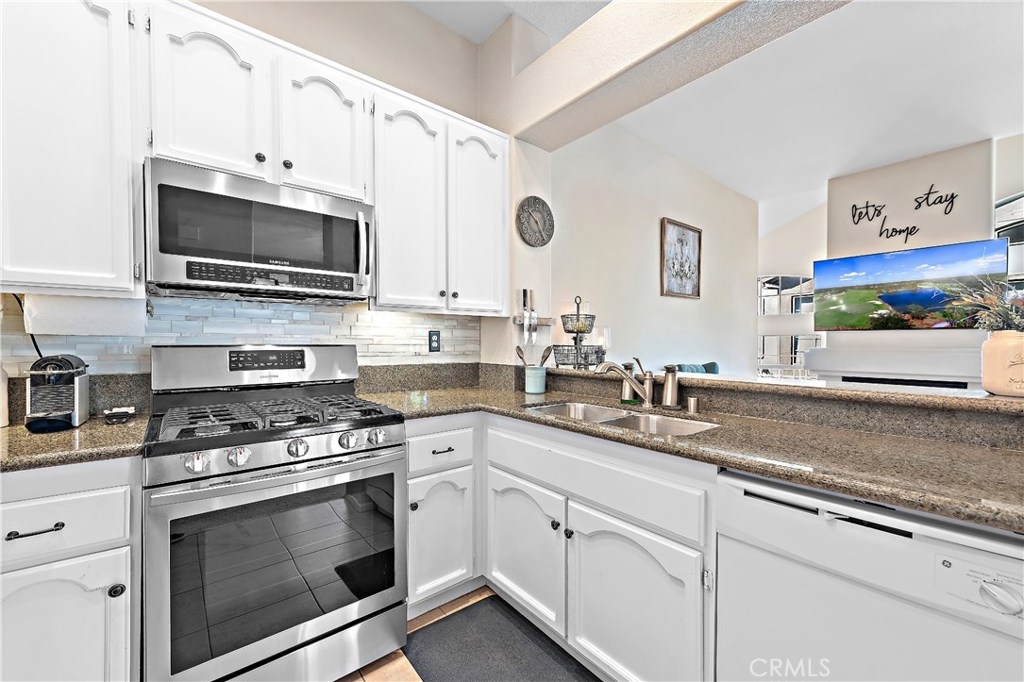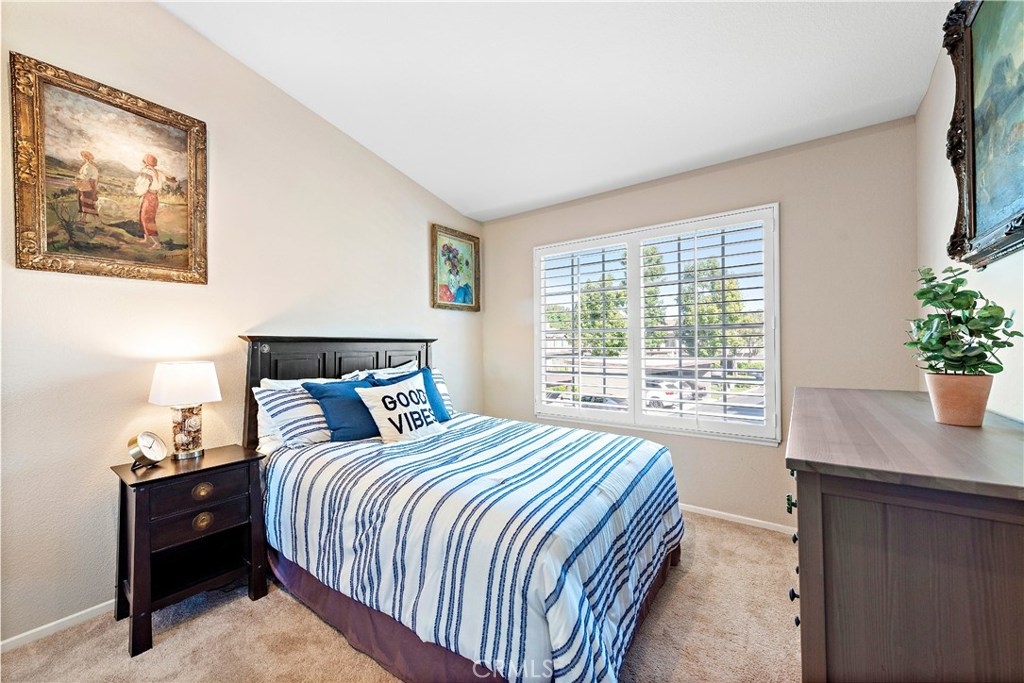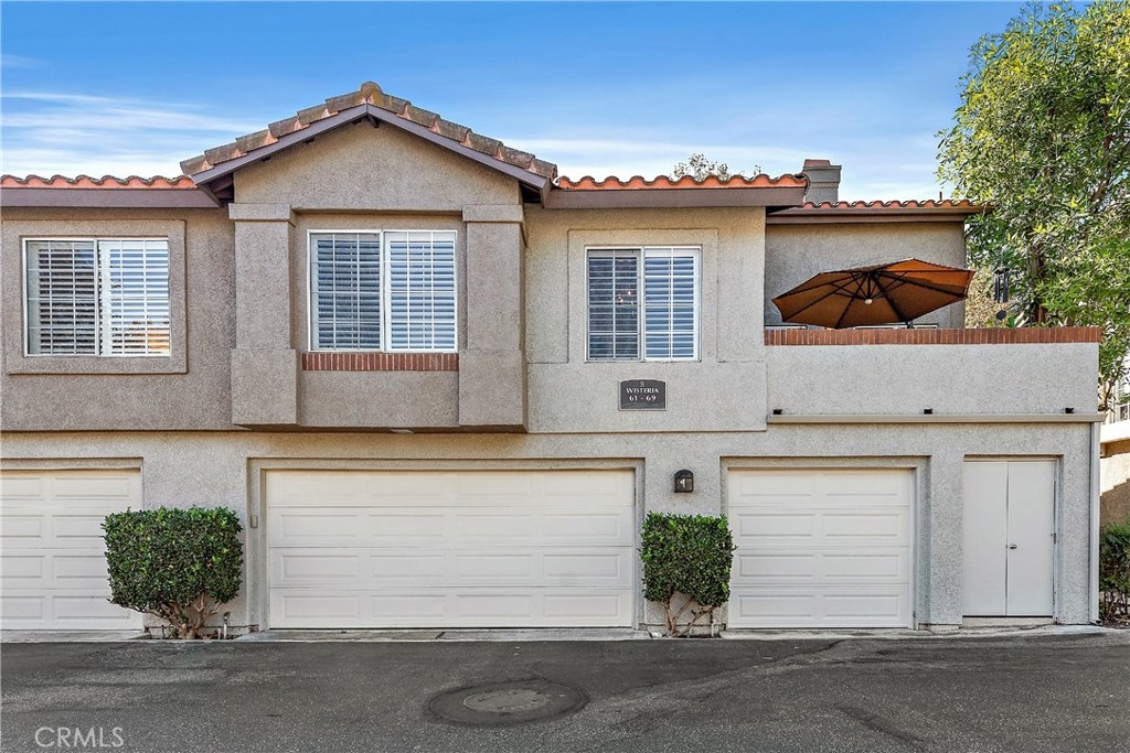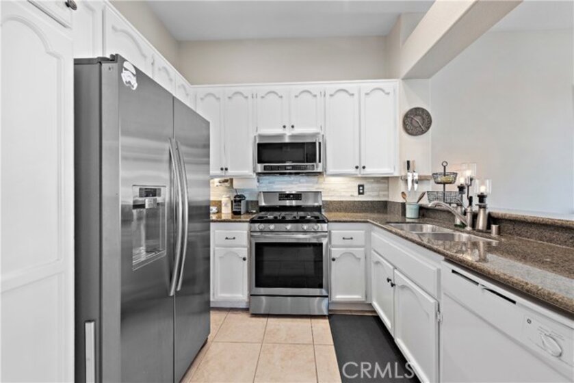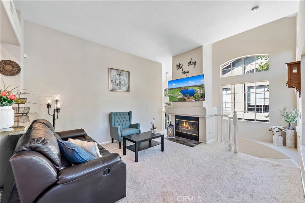 Welcome to your 2 bedroom, 2 bathroom home in Aliso Viejo! Walk through the front door and ascend up stairs to the bright and cozy living room with plenty of natural light and a fireplace. See the dining room with a custom chandelier that opens up to the living room, making for plenty of space to entertain. Notice a spacious balcony with a firepit, perfect for enjoying the Southern California climate. Walk into the kitchen where you will notice quartz countertops, tile backsplash, stainless steel Samsung refrigerator, microwave, oven, a GE dishwasher and a double basin sink. Go forward to the guest bedroom with sliding mirrored closet doors and access to a full bathroom with a shower in the tub. Walk into the spacious master bedroom with a walk in closet and private bathroom. The master bathroom has dual vanity space with a shower in the tub. Both bedrooms and dining room have custom plantation shutters. An attached garage has built-in cabinetry, new smart garage door, Samsung washer and dryer, and an additional covered parking space with storage. Entire home has been PEX re-piped in 2019. This home is equipped with a Nest thermostat that you can control from your smart device. The HOA boasts an incredible amount of amenities such as a pool, spa, playgrounds, numerous greenbelts and BBQs. The community is close to Spring Dale Park, Woodfield Park, the Aliso Creek Hiking and Riding Trail as well as the Aliso Viejo Town Center. This home is not to be missed!