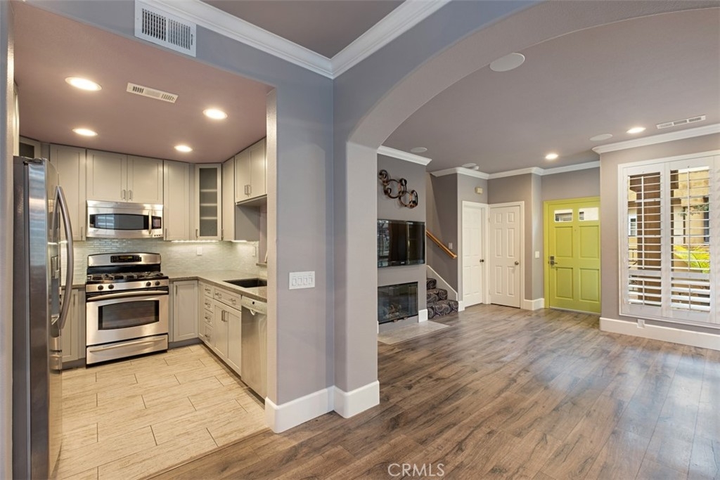 In this highly customized 3 bedroom 2.5 bath home, you will find uncompromising craftsmanship with incredible attention to detail. The Chef’s kitchen features quartz counters, glass tile back splash, SS appliances & custom grey self-closing cabinetry, black sink and is elegantly lined in porcelain. The entire home has hard wired, theater quality, in-wall speakers and sub-woofer, including a class-A Marantz receiver, valued in the tens of thousands of dollars. The master boasts a walk-in closet & opulent bath of quartz, custom cabinetry, Porcelain flooring and shower with satin nickel fixtures. This home is further enhanced with recessed LED lighting, surround sound, PEX plumbing, Cat 5, custom baseboards, ceiling fans, dimmer switches, and satin nickel handles. The home shows impeccably and offers a very open feel with a bonus upstairs family room. Windsong Community is located within the Capo School District and features pool, spa, tot lot, clubhouse and is centrally located to shopping, freeways, entertainment as well as easy access to scenic biking and hiking trails.