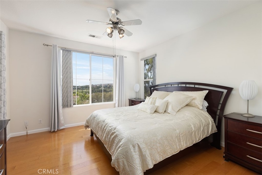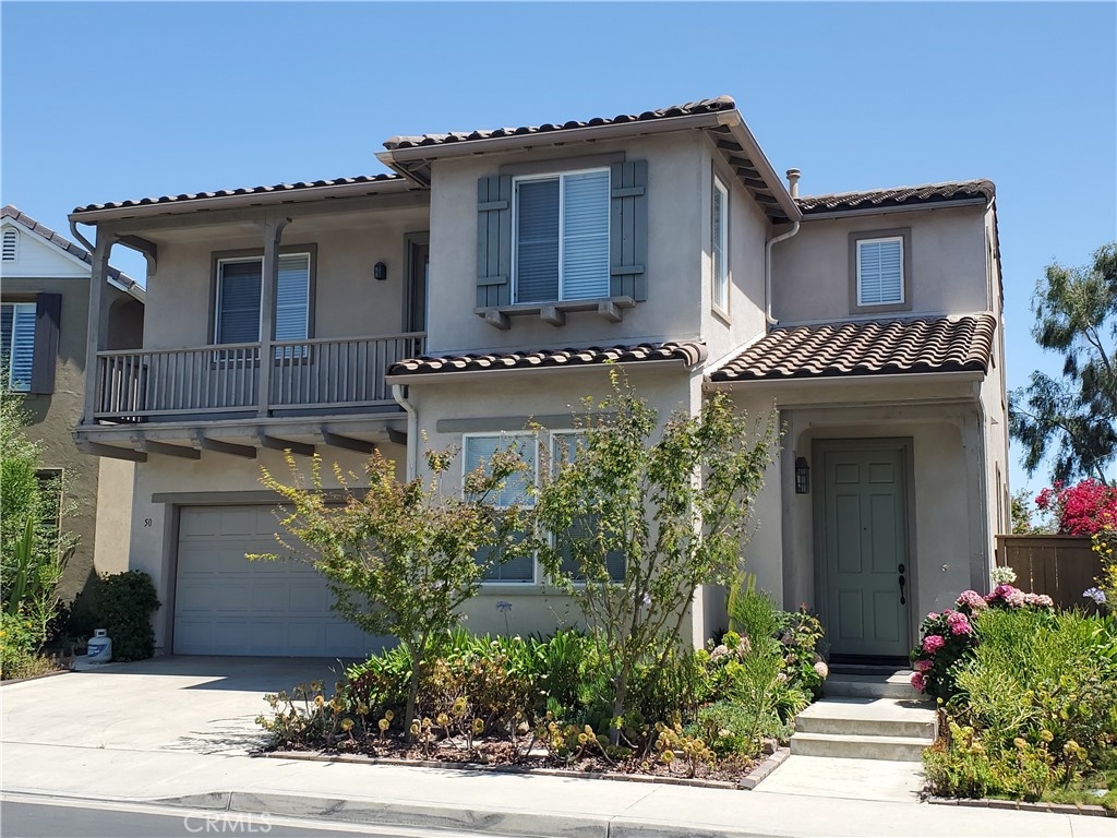 50 Trail Canyon has the top-of-the-hill panoramic view rarely available for this size of home. This classic California-Mediterranean 4-bedroom sits on a cul-de-sac and is surrounded by stress-free and drought-resistant succulents. When you enter the bright living area, you'll be amazed by the open floor plan, and by the custom 24" porcelain tile floors, black granite tiled fireplace, and gorgeous lighting. Adjacent to the living area, sits the open dining and kitchen areas. The spacious dining room, with its contemporary chandelier, has direct access to the view backyard and opens to an updated kitchen that includes white beadboard-style cabinets, a large island, black granite counters, stainless steel appliances, porcelain tile floors, and recessed lighting. Downstairs there is a bedroom with full bathroom perfect for use as a bedroom, guest suite, or office. Upstairs there is a large, separate loft that has spectacular views, maple wood floors, and track lighting. The loft is large enough to be used as a family room and can even be converted into a master retreat. The master bedroom shares the expansive views and has maple flooring, custom window coverings, and an en suite bathroom with beadboard-style cabinets, a double sink vanity, separate tub and shower, black granite tile flooring, and an extra-large walk-in closet with built-in shelving and wood floors. One of the upstairs secondary bedrooms enjoys the view and has maple wood flooring. The other secondary bedroom has bamboo flooring and is currently being used as an office. Completing the upstairs is a full bath and a convenient laundry area. The view is visible from every angle of the backyard decorated with low maintenance foliage, including a lemon, lime, and orange tree. Other updates in the home include mahogany and maple stairs, 2-year old epoxy-coated piping, and a 2-year old A/C and heater. 50 Trail Canyon is located in Woodlands a small community of detached condominiums with setbacks and streets similar to single family residences. Woodlands is part of the upscale Westridge community, which includes Westridge Park, and is walking distance to highly rated Canyon Vista Elementary and a 5-minute drive to the Aliso Viejo Town Center and the 73 toll road.