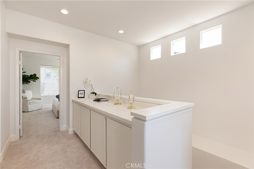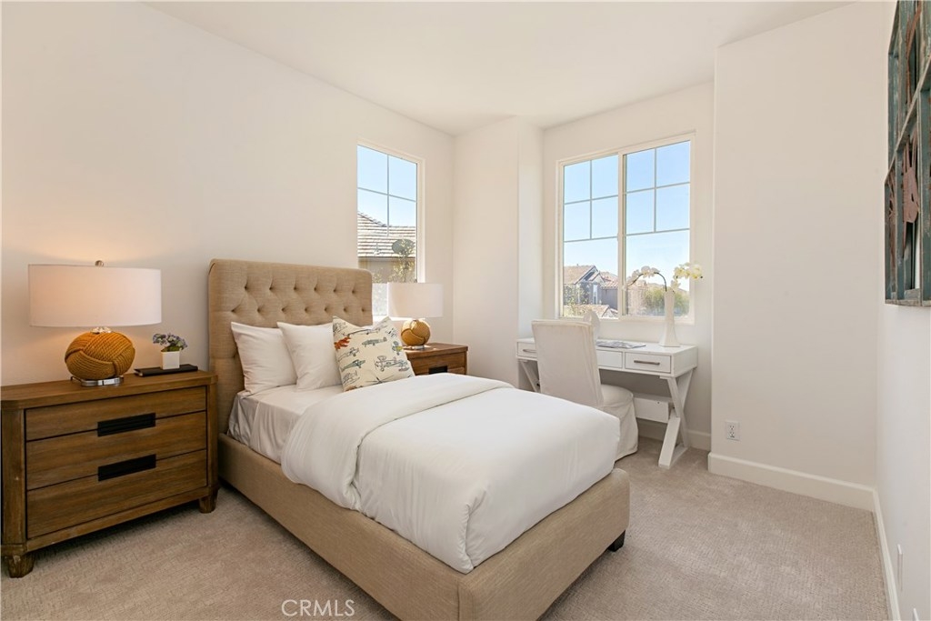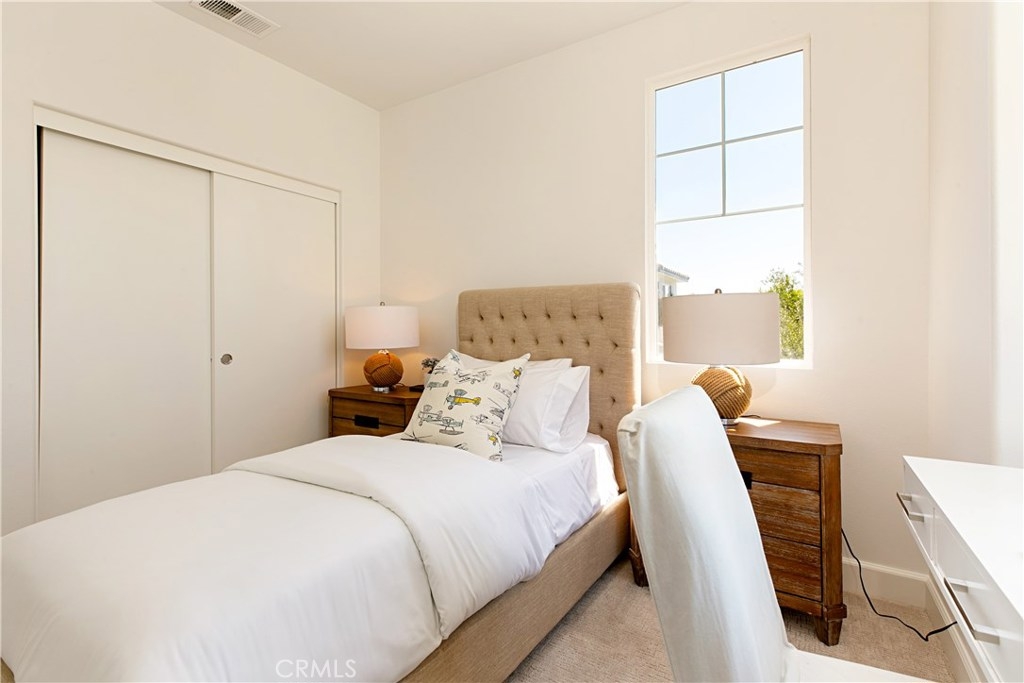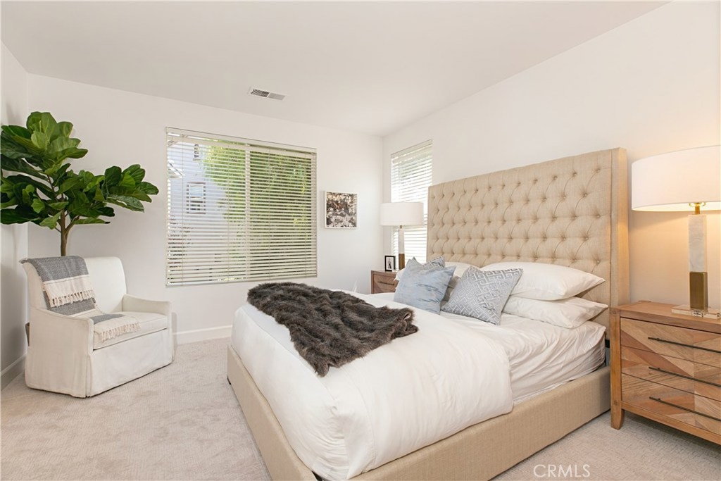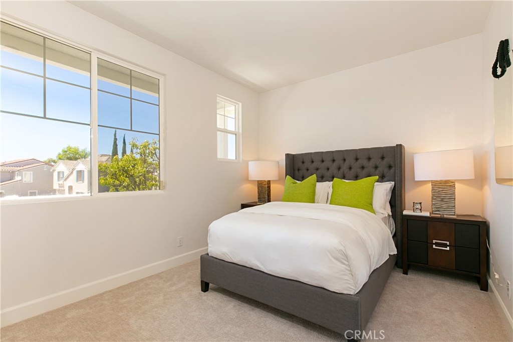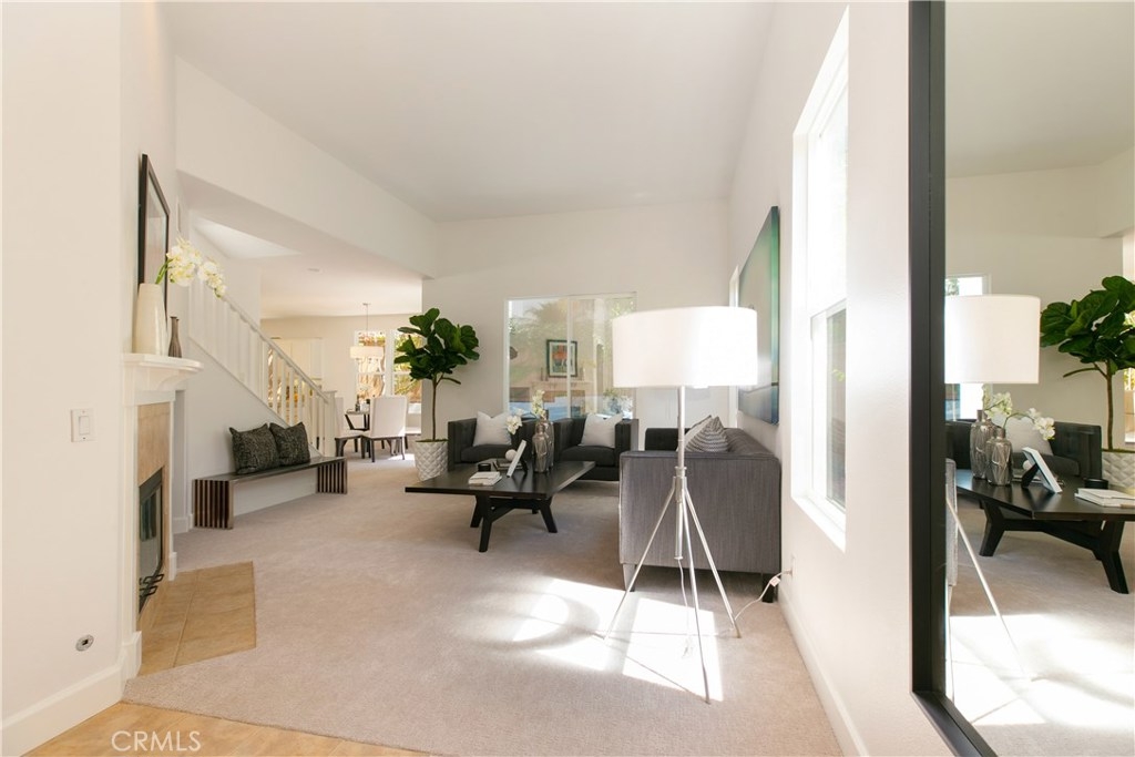 Located on a cul-de-sac street in the desirable Woodland’s Community this bright and airy 1,783 sq ft home features 4 bedrooms and 3 bathrooms with one bedroom on the main floor with an adjacent full bathroom. The spacious family and dining rooms boast vaulted ceilings with generous light emitting dual-pane windows. The gourmet sized kitchen features abundant counter tops and cabinet storage with tranquil views of the backyard. The spacious master suite features high ceilings, walk in-closet, dual vanity sink, deep soaking tub with separate glass enclosed shower. LED recessed lighting throughout, new carpet and interior and exterior paint. Second floor laundry room. Walking distance to the Canyon Vista Elementary school, Westridge Community Park and world class hiking and biking trails. A short drive to the Town Center with restaurants, shopping, movie theaters, and easy access to the 73 Toll Way.