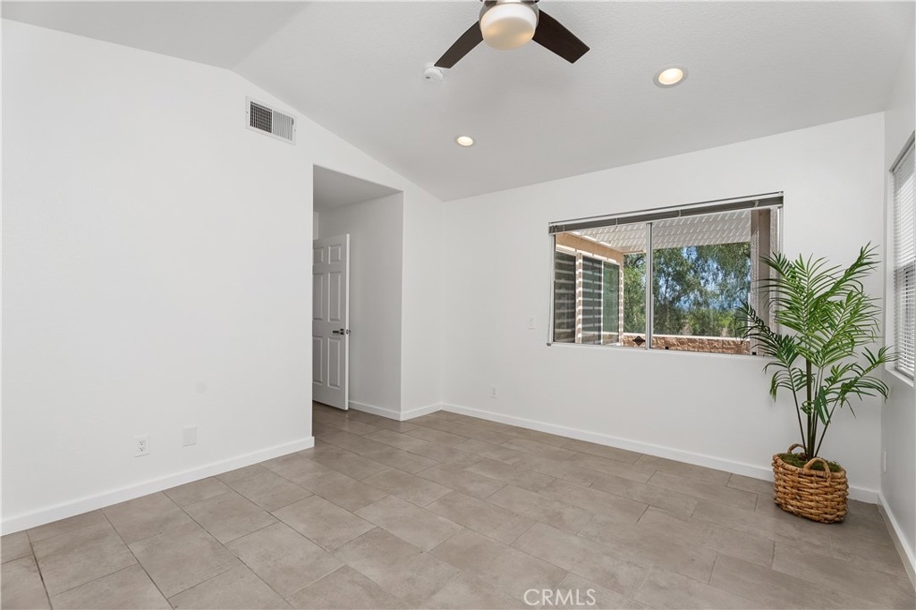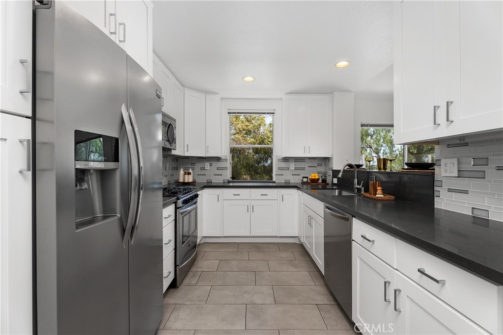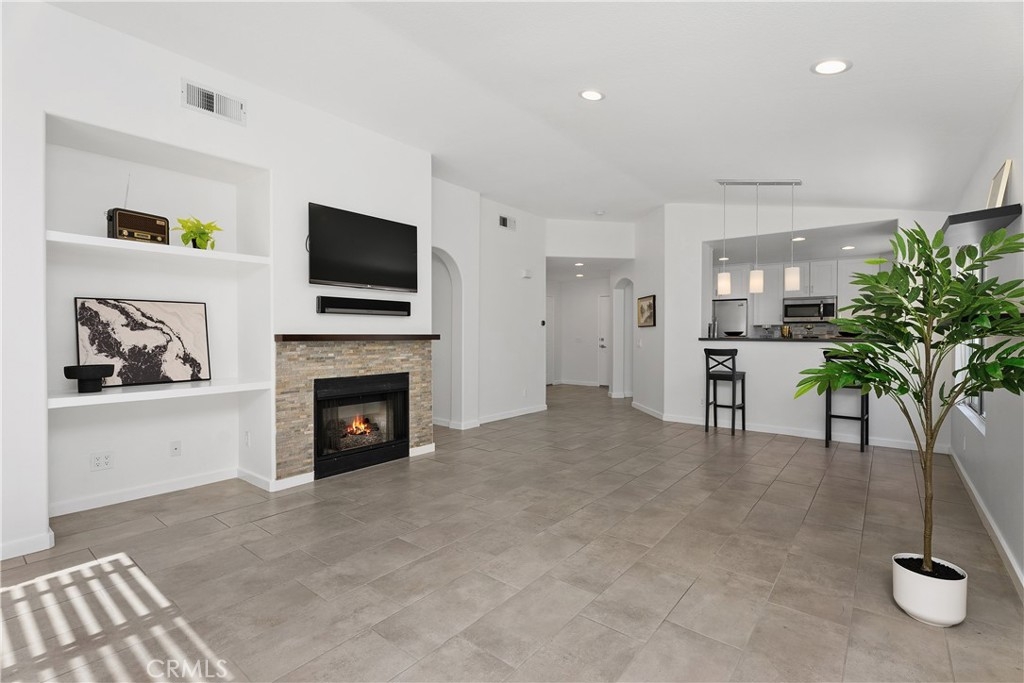 HIGHLY UPGRADED SINGLE-LEVEL DETACHED HOME WITH SCENIC VIEWS IN THE PRESTIGIOUS GATED COMMUNITY OF SAN SIMEON. Located at the end of a quiet cul-de-sac, this detached home boasts an open floor plan filled with natural light and offers scenic views of trees, city lights, and mountains. The remodeled kitchen features soft-close cabinets with a spice drawer and lazy Susans, quartz countertops, a glass mosaic tile backsplash, and stainless steel appliances. The spacious great room showcases a high ceiling, a cozy fireplace, and a sliding glass door leading to the private patio. The primary bedroom features high ceilings, scenic views, a spacious mirrored closet, and a ceiling fan. Upgraded bathrooms add a touch of luxury, while the hallway offers additional storage with a cabinet and quartz countertop. Recessed lighting and tile flooring extend throughout the home, complemented by fresh paint. The garage includes epoxy flooring and overhead storage racks. Step outside to a private backyard with a covered patio and a sleek glass fence. Enjoy very low HOA dues, no Mello-Roos, and low taxes. Ideally located near award-winning schools, parks, an aquatic center, a Jack Nicklaus-designed golf course, shopping, dining, movie theaters, hiking and biking trails, and major freeways.