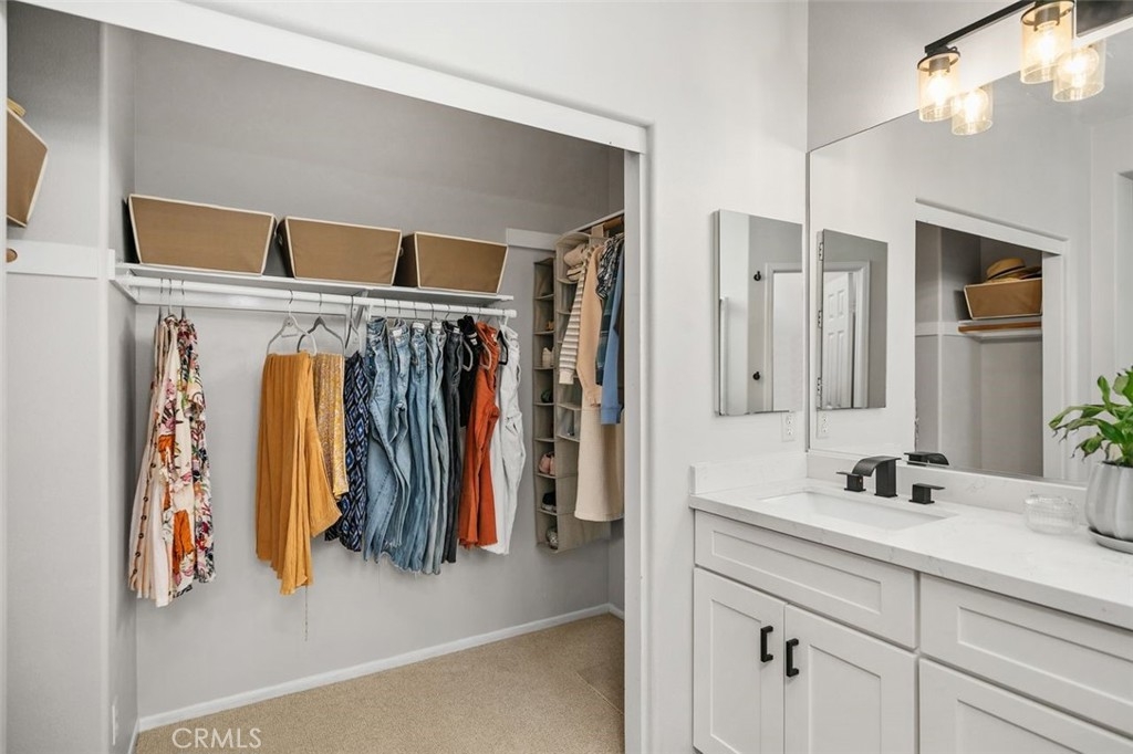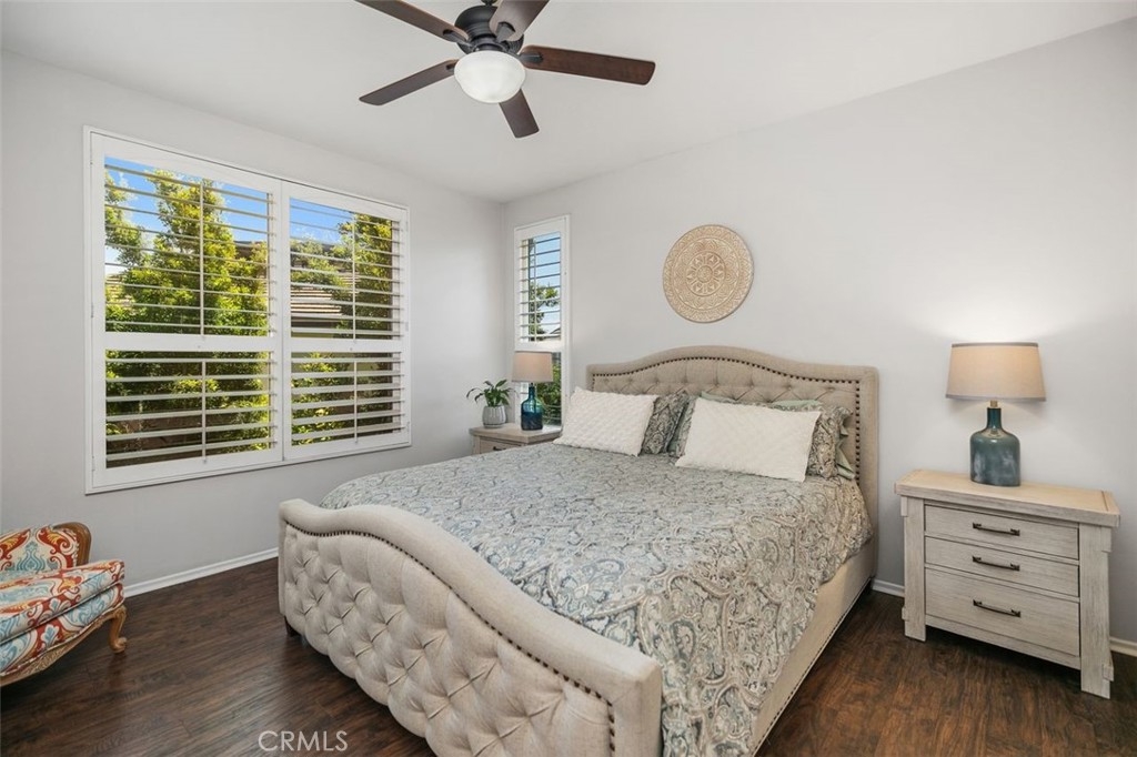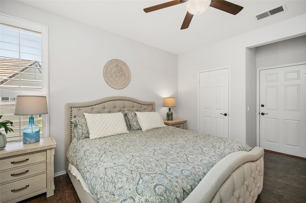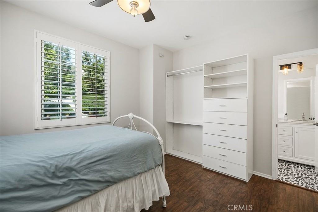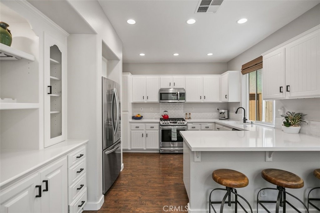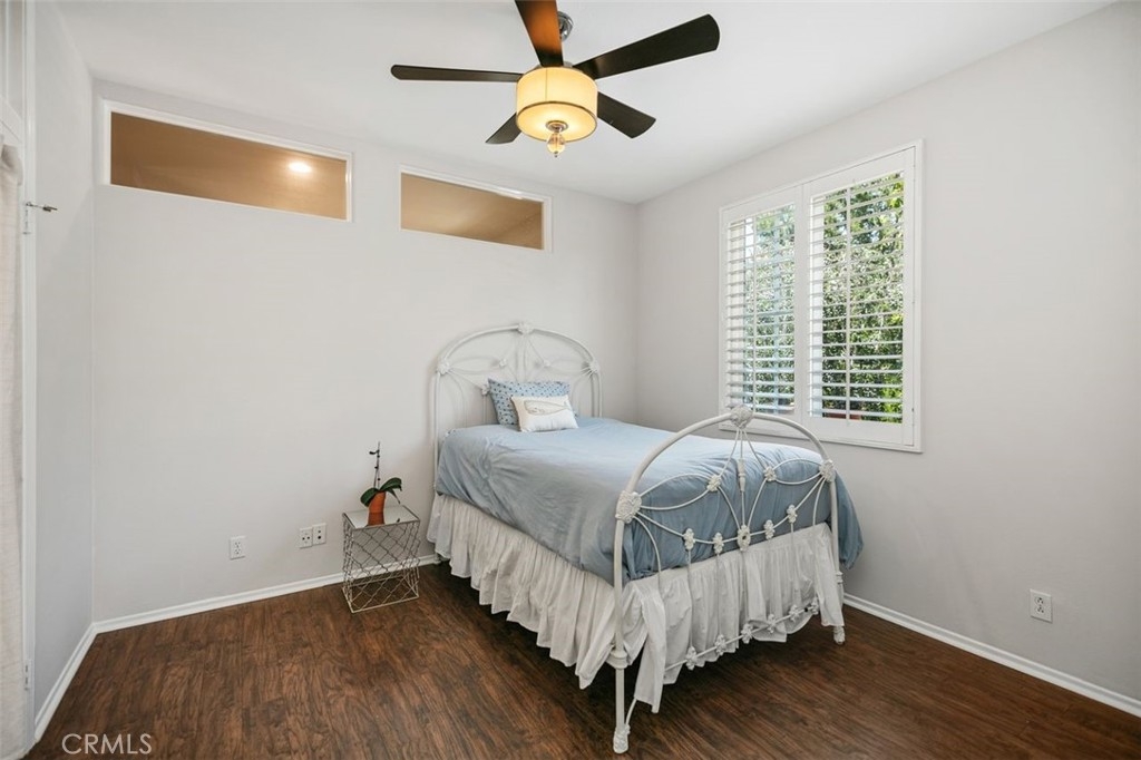 First Woodlands home on the market in more than a year! Tucked at the end of a private, single-loaded cul-de-sac in the desirable Woodlands tract of Westridge, this beautifully remodeled 3-bedroom home blends charm, comfort, and convenience in the heart of Aliso Viejo. The curb appeal starts with a sleek concrete paver driveway and continues inside with warm wood laminate flooring throughout. The cozy living room features custom built-ins, a fireplace with a hewn wood mantel and hexagonal tile surround, and opens into an updated white kitchen showcasing quartz countertops, subway tile backsplash, beadboard cabinets, matte black hardware, stainless steel appliances, and a built-in hutch with wine storage. The adjoining dining room connects both rooms seamlessly with a sunny breakfast nook featuring a built-in bench and cabinet, perfect for casual dining or weekend brunch. A stylish powder room completes the main floor with Mediterranean-patterned tile, plantation shutters, and a pedestal sink lit by charming vanity fixtures. Upstairs, the spacious primary suite has an en suite bath with ceramic tile flooring, dual-vanity, shaker-style cabinetry, and an open walk-in closet. Two additional bedrooms share a Jack & Jill bathroom with dual-vanity, tile floors, and plantation shutters. The extra-large backyard continues the elegant paver hardscape from the front, complemented by low-maintenance artificial grass and raised planters, perfect for outdoor entertaining or relaxing evenings at home. Additional highlights include full-home PEX repiping for peace of mind, extra storage cabinets in the garage, and a prime location just a short stroll to Westridge Park and highly sought-after Canyon Vista Elementary. This is a rare opportunity to own a home in one of Aliso Viejo’s most coveted neighborhoods. Schedule your private tour today!