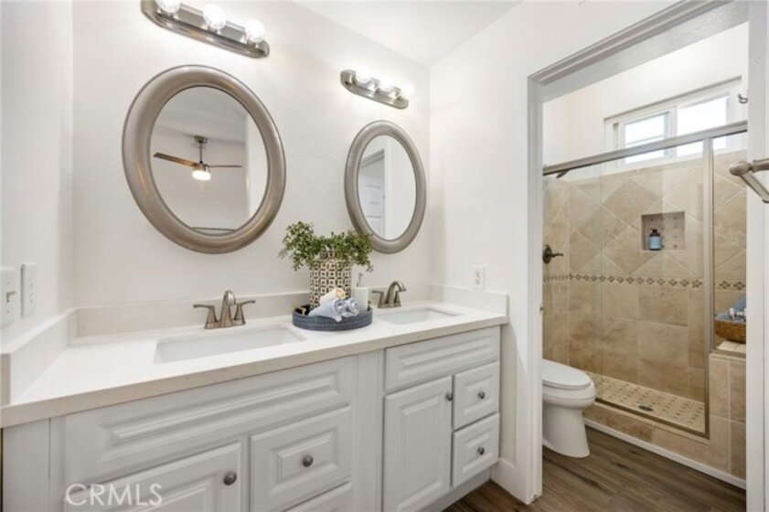 An invitingly modern sanctuary awaits within this remodeled detached home, boasting a spacious and open-concept floor plan designed for contemporary living. Sleek, high-end finishes and an abundance of natural light create a sophisticated yet welcoming atmosphere, perfect for both relaxing evenings and entertaining guests. The remodeled gourmet kitchen is a chef's delight, featuring all new shaker style cabinetry, stainless steel appliances, custom backsplash and a large quartz central island that flows seamlessly into the main living areas. This home offers tasteful surroundings with fresh interior paint, all new wood-look vinyl plank flooring throughout, cathedral ceilings, a custom tile gas fireplace to enjoy cozy nights in, and a brand new A/C for warmer days. The seamless transition between indoor and outdoor spaces enhances the sense of openness and provides a perfect setup for gatherings in the private backyard. The Hamptons community offers residents a lovely pool and spa area with an outdoor fireplace, dining tables and cabanas. Experience the best of convenience and community in a prime location, with excellent schools, beautiful parks, and scenic hiking trails just moments away. You'll also enjoy easy access to premier shopping and dining, creating the perfect backdrop for a vibrant and active lifestyle. Come experience 10 Sherrelwood today!