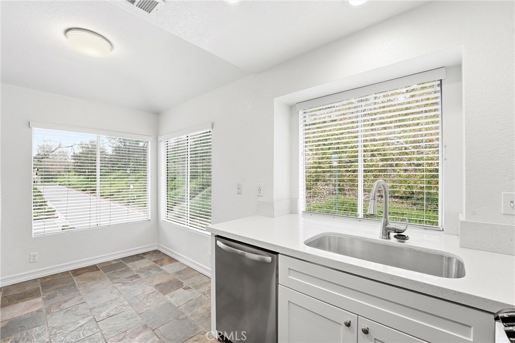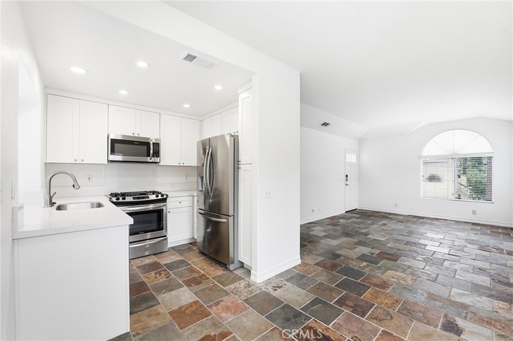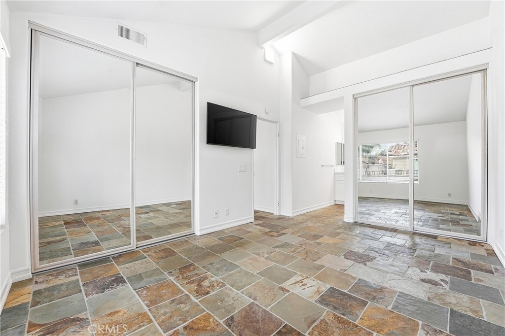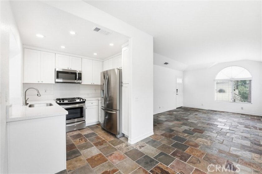 COZY, COMFORTABLE and AFFORDABLE. Location is everything, and this beautifully remodeled upper-level corner condo in the desirable Seagate Colony of Aliso Viejo offers comfort, privacy, and convenience. With no neighbors above or below, the light-filled home features high ceilings, recessed lighting, neutral tones, and slate flooring throughout. Open living and dining areas create an easy flow for everyday living and entertaining. The updated kitchen includes white shaker cabinets, quartz countertops, and stainless-steel appliances. The bedroom offers vaulted ceilings and mirrored closets, while the remodeled bathroom features updated cabinetry and a rare tub-and-shower combination. A private patio with washer and dryer extends the living space outdoors. Additional highlights include a detached one-car garage, newer HVAC system, Nest thermostat, paid HOA assessment, and full community exterior painting and interior re-pipe. Residents enjoy pools, spas, fitness center, and clubhouse, all near shopping, dining, freeways, and Laguna Beach. Move-in ready coastal living awaits.