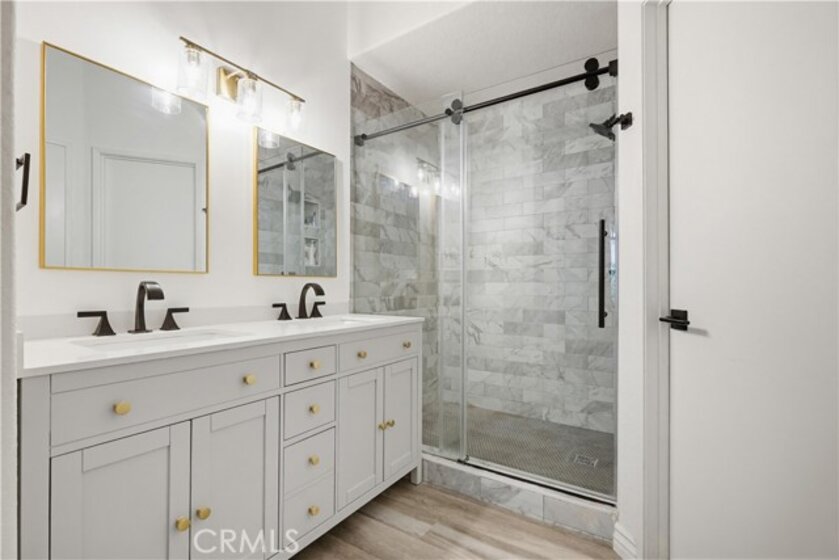 Updated and Improved lower-level beauty blessed with a desirable single level floor plan, remodeled Kitchen and baths, and ideally located in the peaceful Seagate Colony community in the Laguna Audubon neighborhood nestled up to picturesque Laguna Canyon and just 10 minutes from iconic Laguna Beach and Village. Lush greenspaces and walking paths provide a welcoming first impression leading you to the private gated front patio. Step inside and soak in the open concept floor plan with sleek luxury vinyl plank flooring and a neutral palette setting the stage for an ideal living space. The kitchen has been beautifully remodeled with modern European cabinetry, updated hardware and pulls, gorgeous Granite countertops, Stainless Steel appliances, breakfast bar, and recessed lighting, all open to the dining and living areas. The spacious primary suite includes a prized walk-in closet and a stunning recently remodeled primary bathroom with timeless shaker cabinetry, updated hardware and pulls, Quart-topped dual vanity, handsome faucets and fixtures, framed vanity mirrors, upgraded lighting, and a gorgeous walk-in shower enclosure with stunning subway tile surround and frameless glass enclosure. This floorplan includes a secondary bedroom with closet and an updated guest bath with handsome Quartz topped vanity, upgraded faucets and fixtures, and framed vanity mirror. The spacious enclosed front patio includes a convenient laundry closet with full size washer and dryer hookups and newer 2021 water heater and is a peaceful space for relaxing and entertaining friends and family. Home includes 1 single car garage #211, plus 1 uncovered reserved parking space #191. Located in the coveted Laguna Beach Unified School District! Well maintained HOA amenities include an abundance of guest parking, fitness room, two pools and spas, clubhouse, manicured grounds, HOA includes trash, and the HOA completed a community wide repipe. Superbly located close to local parks, and Aliso Viejo Country Club and Aquatic Center, easy access to numerous hiking and biking trails, close to shopping, Farmer’s Market, and dining and entertainment at Aliso Viejo Town Center, easy Toll Road access, and just minutes from Irvine and local beaches.