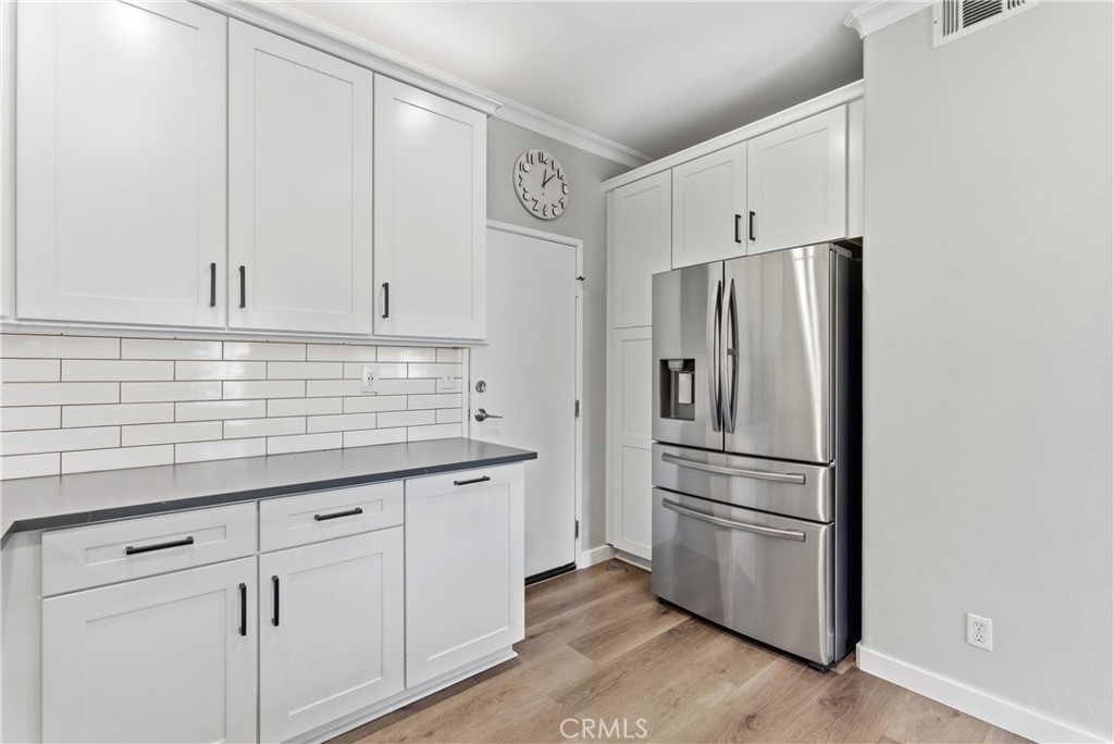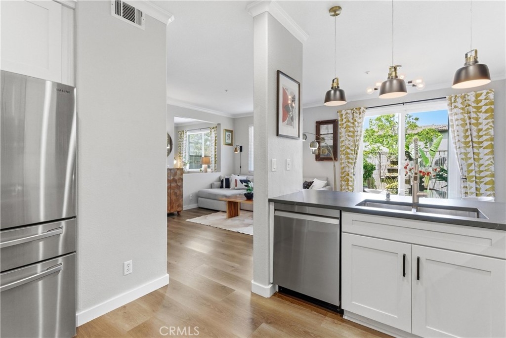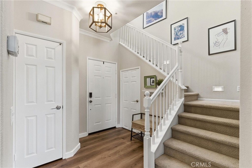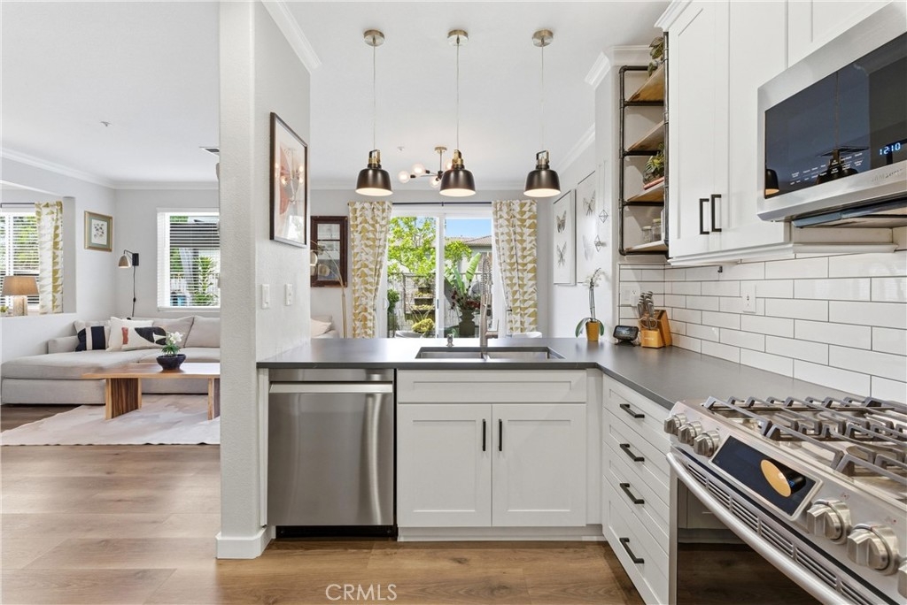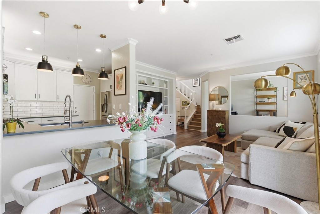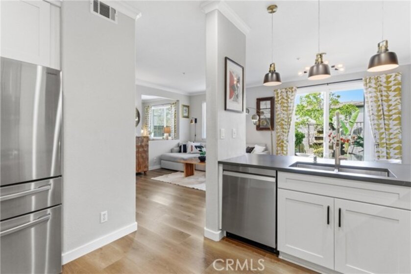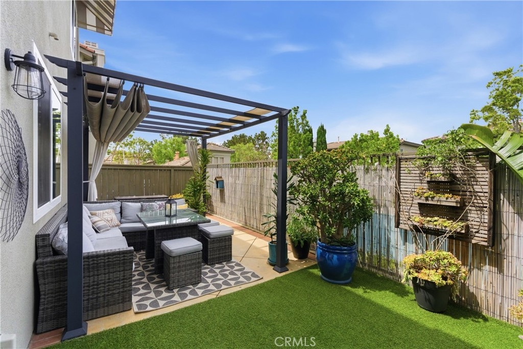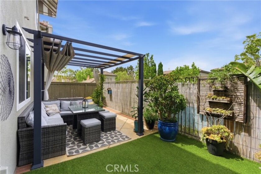 Experience elevated living in the exclusive gated community of Milano with this stunning residence at 106 Trofello, featuring three bedrooms and two and a half bathrooms across 1,402 square feet of meticulously maintained and highly upgraded living space. Defined by abundant natural light and a no-expense-spared approach to custom craftsmanship, this home offers a polished aesthetic throughout the main floor. The heart of the home is a fully remodeled kitchen boasting new solid wood KraftMaid cabinetry with soft-close technology, elegant quartz countertops, and a sophisticated ceramic tile backsplash. This high-end cabinetry continues into the living room, which features beautiful custom built-in shelving and a matching entertainment center with integrated TV mounting. Exceptional storage solutions are found throughout the home, including custom hardwood built-in cabinetry in the laundry room, closet organization in the primary walk-in closet, and custom hardwood shelving in the linen closet. Further modernizing the home are double-paned, UV-coated windows installed in 2021 for whole-house comfort and energy efficiency, as well as new quartz counters in all bathrooms. Practical updates include a brand-new garage door opener installed in 2025. Large windows throughout provide an airy, bright atmosphere in every room. Step outside to enjoy the peaceful environment of your backyard or take a short stroll to the sparkling community pool. Adventure awaits with prime access to local canyon trails that connect you to Laguna Beach. In addition to being zoned for the award-winning schools of Capistrano Unified School District, families will appreciate being within walking distance to the highest-rated elementary school in the area. With amazing neighbors and a great sense of community, this property represents a rare opportunity to own one of the most upgraded homes in the neighborhood.