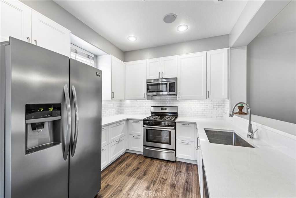Experience the best in Aliso Viejo Living! Exceptional townhouse located in tree-lined Camden Park. 11 Harvest Point is situated next to a private greenbelt and offers 3 bedrooms, 2.5 bathrooms and dramatic vaulted ceilings. The kitchen has been tastefully and thoughtfully upgraded with quartz counter tops, white shaker-style cabinets and stainless-steel appliances. Water-resistant laminate flooring runs throughout main living areas. The master bedroom suite includes high ceilings and spacious walk-in closet. The many windows let in warm ambient light all year round and are finished with plantation shutters. The home comes complete with balcony, oversized two-car garage with epoxy flooring and an enclosed storage area. Residents have exclusive access to amenities, including its beautifully maintained pool area. The home is within walking distance to both award-winning schools Don Juan Avila Elementary and Oak Grove Elementary as well as multiple parks. This quiet, family friendly neighborhood has easy access to the 73 toll road and just minutes to the 133 highway leading to Laguna Beach, the 5 & 405 freeways. Exciting and beautiful Aliso Canyon nature trails are a very short distance away for hiking and mountain biking activities.