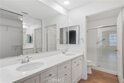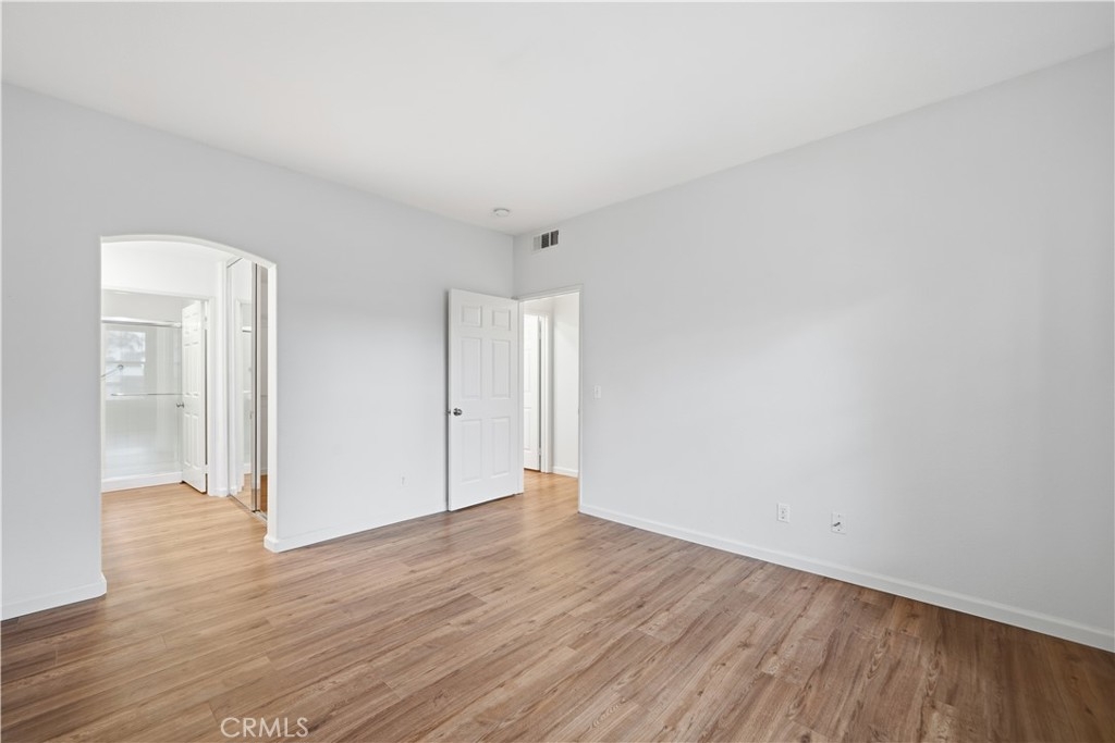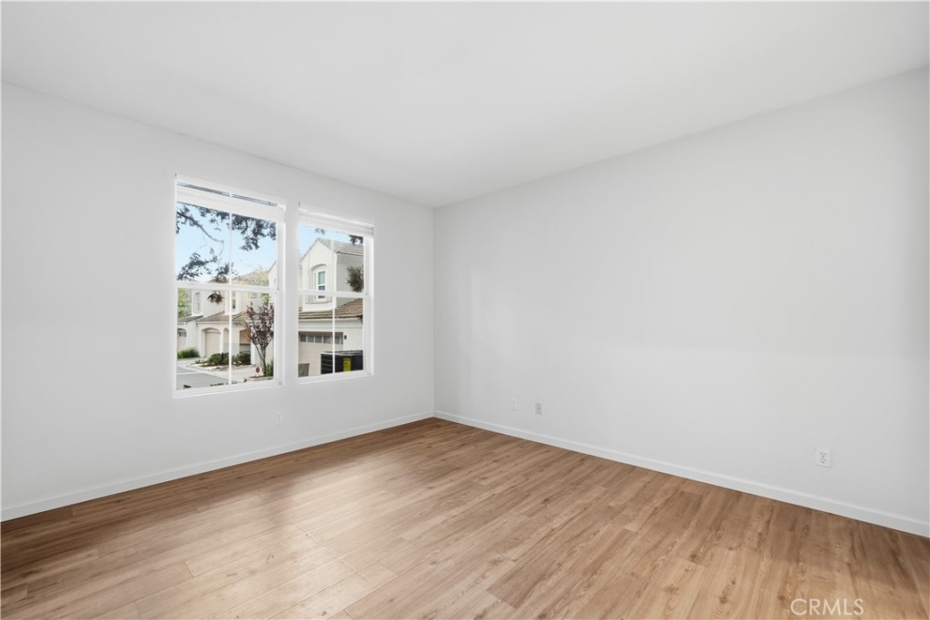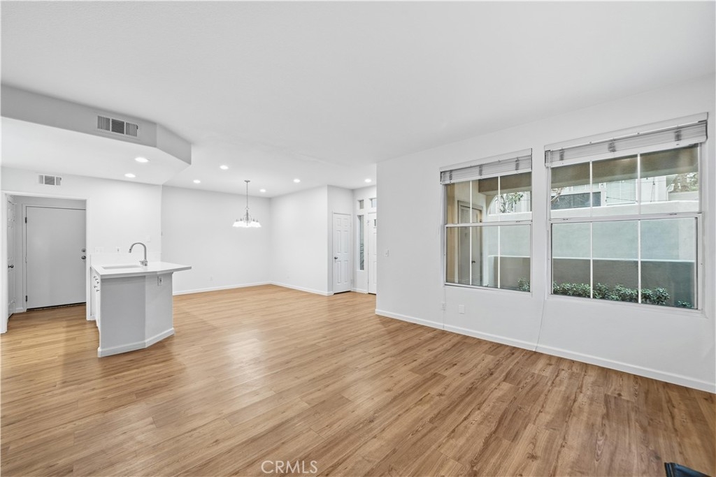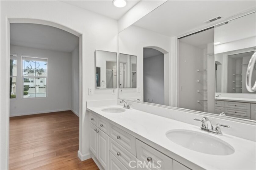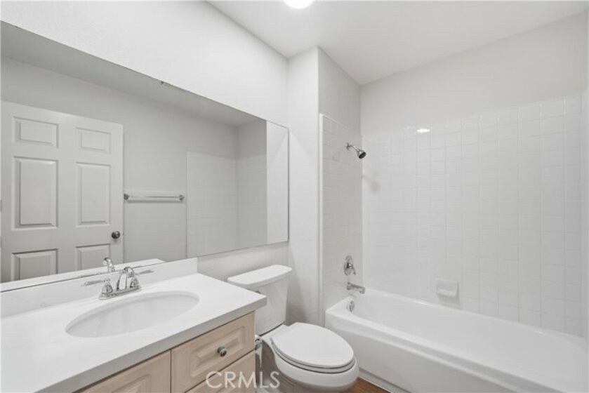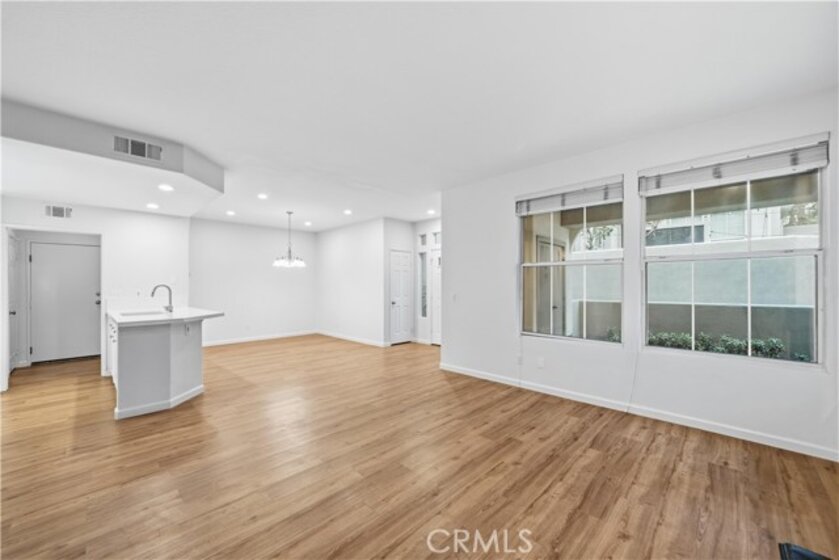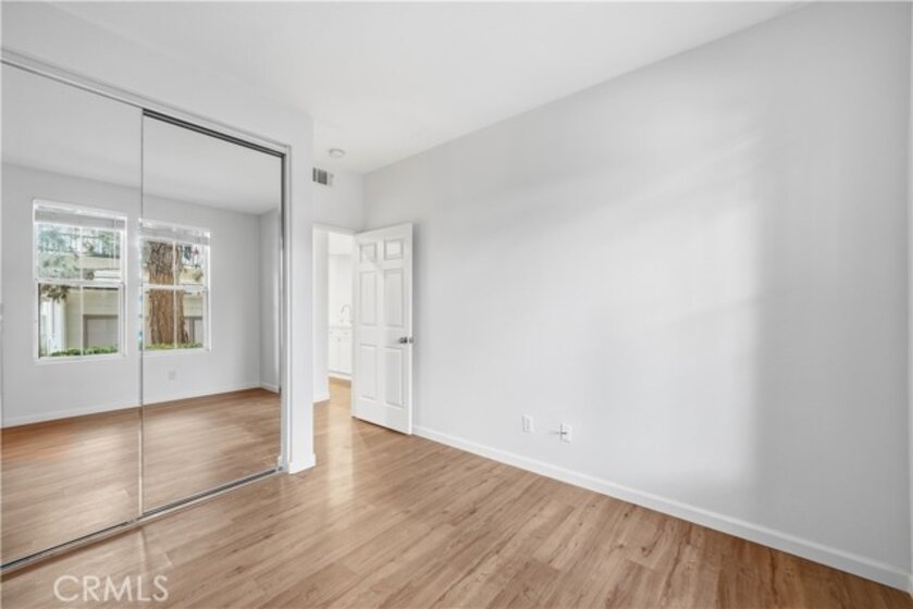 Welcome to this beautifully updated and light-filled end unit in the desirable La Mirage community. Featuring an open, bright floorplan, this turnkey home showcases updated luxury vinyl laminate flooring throughout, recessed lighting in all main living areas, and window blinds with mirrored closet doors for a clean, cohesive finish. Community-wide PEX repiping has been completed. The inviting living and dining spaces flow seamlessly into the updated kitchen, complete with brand-new quartz countertops, modern fixtures, and a large sink that blend style and functionality. Just off the main living area, a large, tranquil covered patio extends the living space outdoors, surprisingly private for the community and ideal for relaxing, unwinding, or entertaining. Both bathrooms have been thoughtfully updated. The hall bath features a new quartz countertop, recessed lighting, a large mirror, and updated fixtures. The spacious primary suite offers recessed lighting, a generous walk-in closet, and an updated vanity with dual sinks, quartz countertop, modern fixtures, a large mirror, and a separate water closet for added privacy. As an end unit, this home enjoys extra privacy and a more open, spacious feel compared to interior units, with plenty of guest parking just steps from the front door. Residents of La Mirage enjoy resort-style amenities including a pool, spa, BBQ areas, lighted tennis court, and clubhouse, with trash service included. Ideally located near award-winning schools, the peaceful and picturesque Soka University campus, scenic hiking and biking trails, and the shopping, dining, and entertainment of Aliso Viejo Town Center, this home offers comfortable, low-maintenance living in a well-located and desirable Aliso Viejo community.