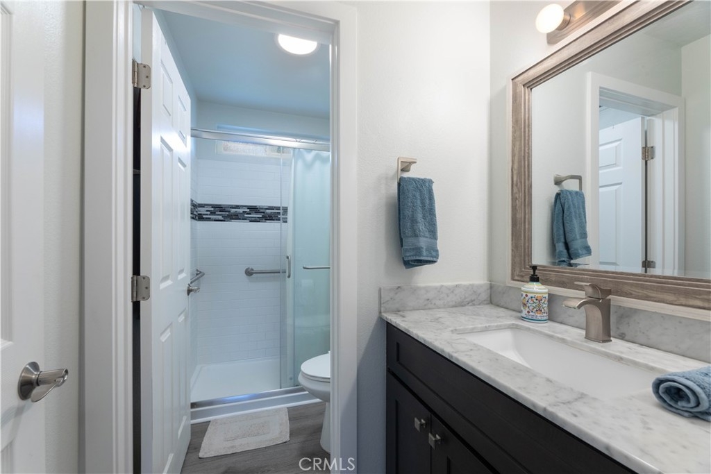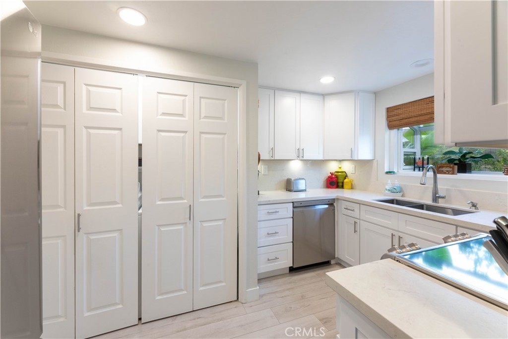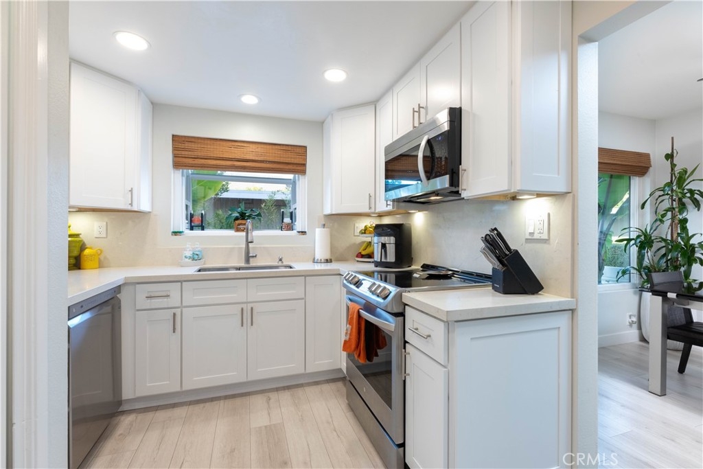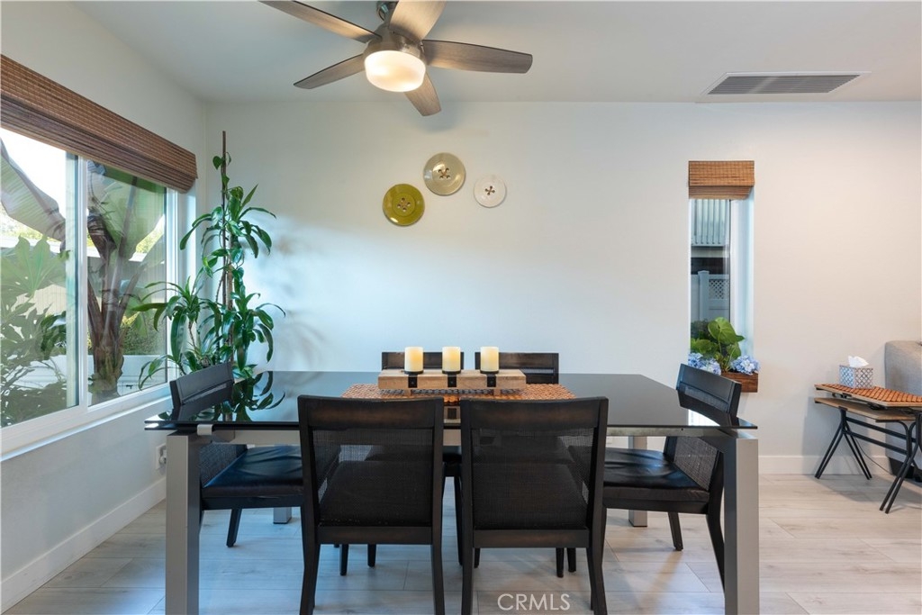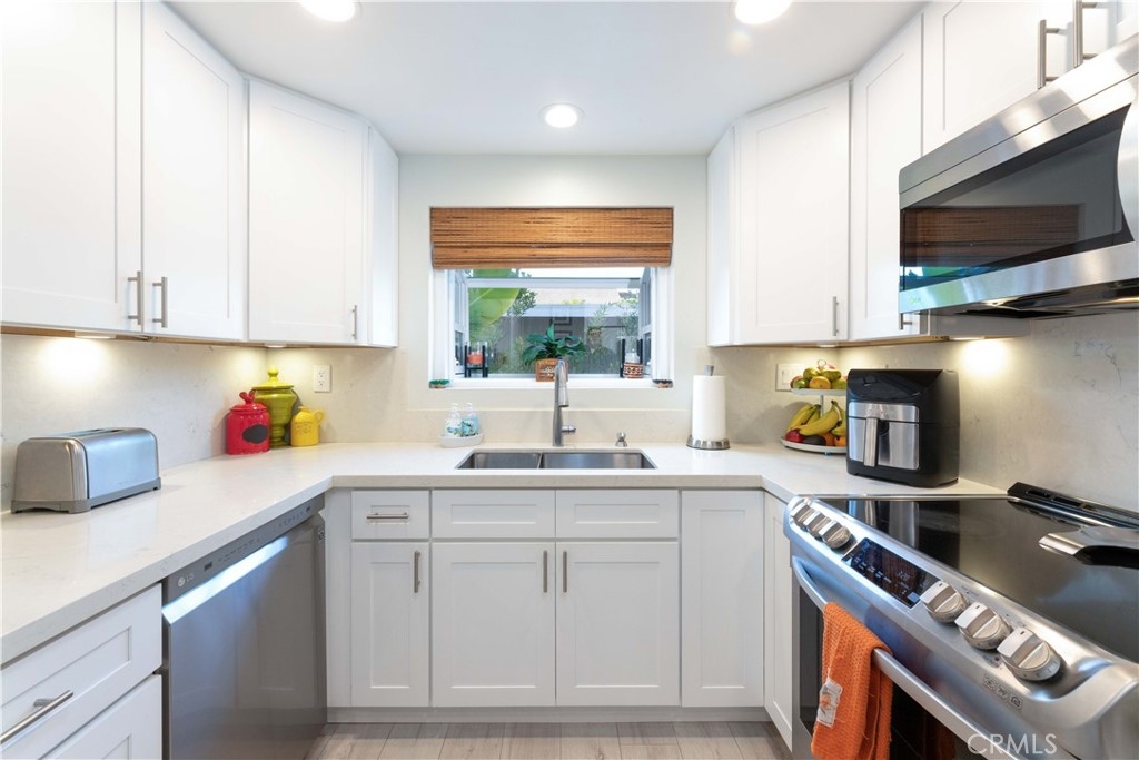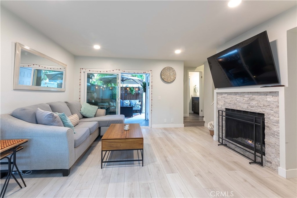This beautifully remodeled two-story townhouse has been thoughtfully updated within the past three years, with attention to detail and quality throughout. Natural light floods every room, creating a bright and inviting atmosphere. As you enter, you’ll be greeted by the spacious family room and dining area, featuring durable waterproof vinyl flooring, LED recessed lighting, double-pane windows with custom coverings, large ceiling fans, a cozy fireplace, and a Nest thermostat. The kitchen boasts elegant Quartz countertops, soft-close drawers, lighting under the hanging cabinets, and additional custom window treatments. Conveniently located in the kitchen, the laundry area offers functional storage space within a dedicated closet. Upstairs, you'll find three generously sized bedrooms. The master suite offers a stunning view right from the bed, complemented by vaulted ceilings and an impressive ceiling fan. The custom closet doors open to reveal an organized space with built-in shelves and cabinets, maximizing storage. The hall bathroom has a door to the master. The two additional bedrooms also benefit from abundant natural light, ample closet space, and comfortable proportions. The private back patio offers plenty of space for outdoor entertaining, barbecuing, automatic lighting,and additional storage. The home's HVAC system, including both the A/C and furnace, are only three years old, ensuring modern efficiency. The owners have taken great care in selecting high-quality materials and have invested in meticulous craftsmanship throughout the remodel. This home is a must-see!
