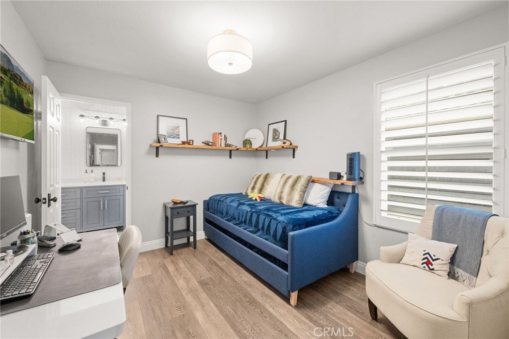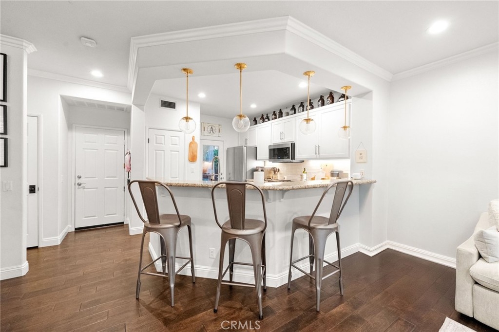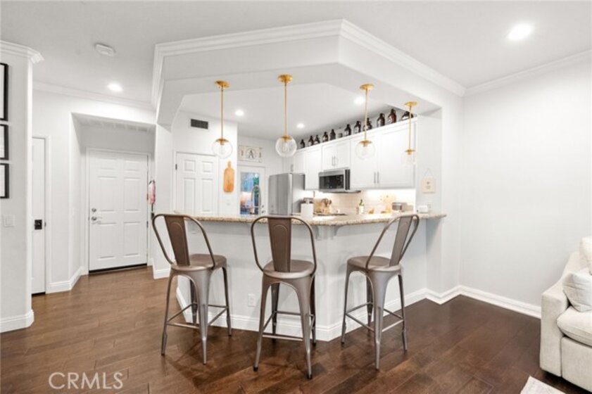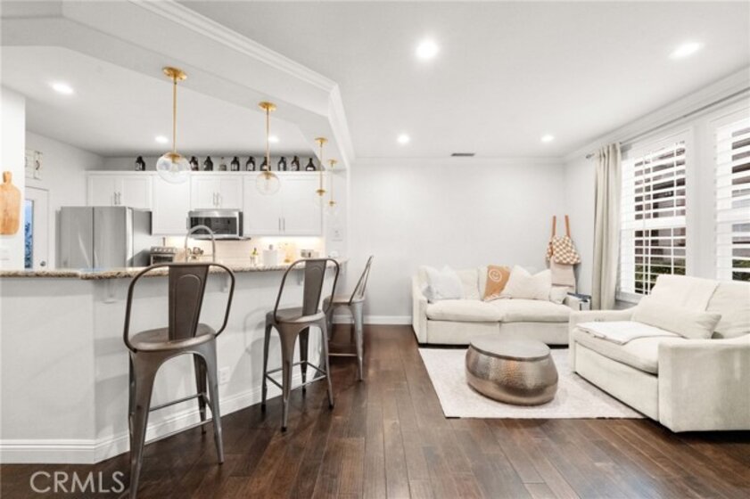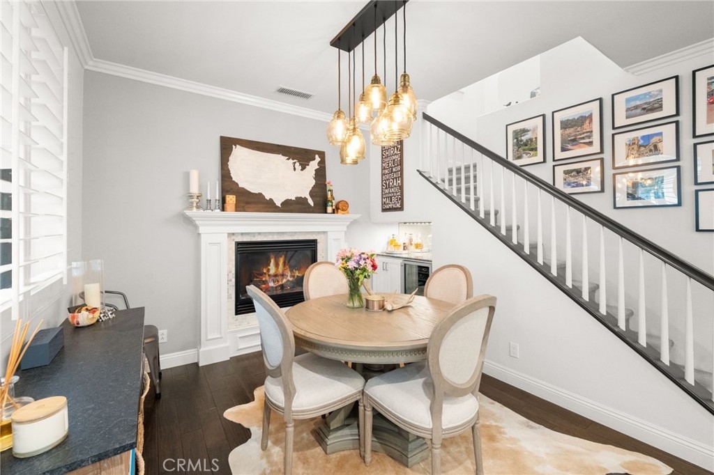 Welcome to this adorable Cape Cod-style 3-bedroom, 2.5 bath home offering over 1,500 sq.ft of beautifully updated living space in the highly sought-after 12 Picket Lane community. Step inside this free-standing home with no attached walls to discover gorgeous hardwood flooring throughout the first level, a cozy gas fireplace in the dining room, and a custom bar area complete with a wine refrigerator, and complemented by Pottery Barn lighting — perfect for entertaining family and friends. The modern kitchen features updated cabinets (2021), new refrigerator (2022), a 5-burner stove, and it includes the bar stools! Plantation shutters throughout add a refined touch to every room! Enjoy peace of mind with paid solar panels and a newer installed HVAC system installed in 2020. Additional upgrades include phantom screens on the front and back doors, and a direct-access garage that will provide convenience. Upstairs, the primary suite offers a barn door leading to a spacious walk-in closet, and a luxurious ensuite bathroom with dual sinks, a soaking tub, and a separate shower. Two additional bedrooms share a Jack and Jill bathroom with a newer tub and tile, ideal for family or guests. Step outside to a private, beautifully-lit patio area — perfect for outdoor dining and entertaining under the stars. Located in a fantastic neighborhood with highly rated schools, this home offers easy access to freeways, and is just minutes from popular restaurants, shopping and entertainment! Don’t miss this opportunity to own a beautifully maintained home that perfectly blends comfort, style, and convenience!