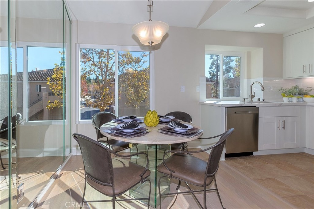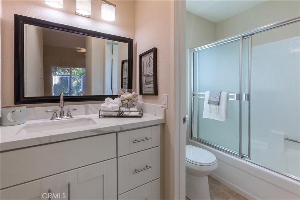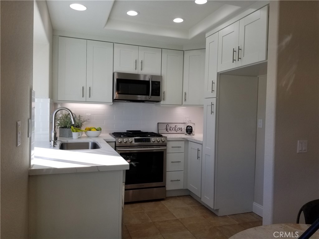 ADORABLE -R E M O D E L E D- FRESH! Very cute 1 bd 1 ba carriage unit in Seagate Colony - LAGUNA BEACH IS MINUTES AWAY! NEW dual pane windows t/o, new kitchen cabinets (soft close doors/drawers), quartz counter tops, new stainless steel: dishwasher, built-in microwave, slide-in gas stove; custom subway tiled back splash, NEW country sink, disposer, faucet, recessed lighting, under cabinet lighting (choose bright white or soft white by flip of switch...) Refinished wood flooring, designer paint palette; upgraded baseboards, lighted ceiling fan LR, cathedral ceilings 9+ ft! Upgraded switches/receptacles, new toilet, refinished tub and surround, new fixtures, new bathroom vanity & sink & quartz counter top, new mirror, new carpet in both master closets, lighted ceiling fan in bedroom. Nice private deck on front for BBQ and lounging. HOA common area: community workout room, 2 pools (1 heated y/r) clubhouse, large greenbelt in center of complex for serenity and tranquility! (Included in HOA dues is water and trash - this seller's electric and gas bills combined are under $40 per month.) Detached garage. Complex has just been entirely tented, are in process working on cleaning gutters/roofs, are upgrading plant material/renovation throughout. No dues increase anticipated per HOA PM. Complex was repiped recently as well. Award-winning LAGUNA BEACH SCHOOL DISTRICT. NO MELLO ROOS. Convenient to beaches, freeways, 133, 73, hiking, biking, parks, shopping & entertainment.