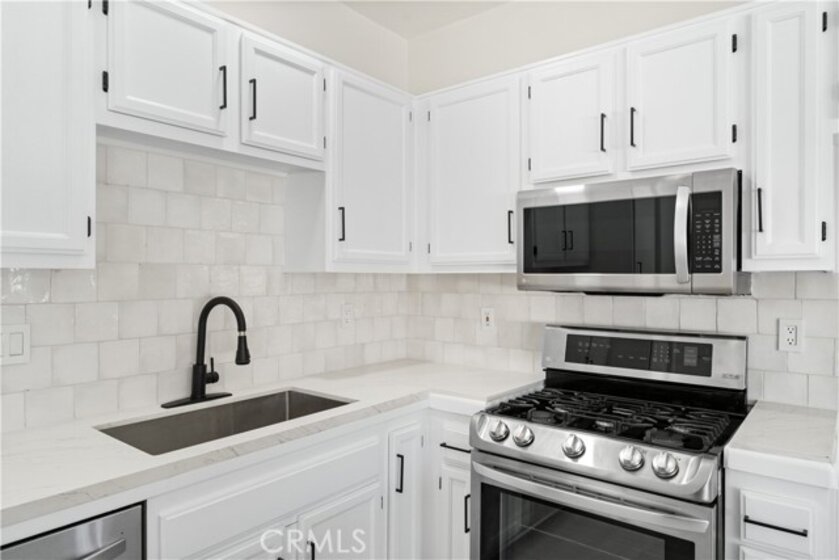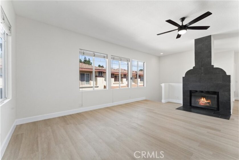 Step into this stunning, remodeled condo, where modern design meets everyday functionality. Located in a desirable gated community with access to a sparkling pool. Inside, you’ll find fresh paint throughout, brand-new hardware, and stylish new fixtures in every room. The kitchen is a showstopper, featuring an all-new island with soft-close drawers, plenty of bar seating, and a sleek backsplash that extends from the countertop to the upper cabinets. The modern sink includes a high-end faucet with digital temperature display, adding both convenience and a touch of luxury. Relax in the cozy living area, now centered around a completely revamped fireplace—retiled from floor to ceiling for a dramatic, updated look. Both bathrooms have been renovated with new tubs, elegant tile work, and updated fixtures. Additional highlights include new door handles throughout and a dual-control ceiling fan for ultimate comfort. The unit includes a two-car garage with direct access, and a washer and dryer conveniently located in the garage.