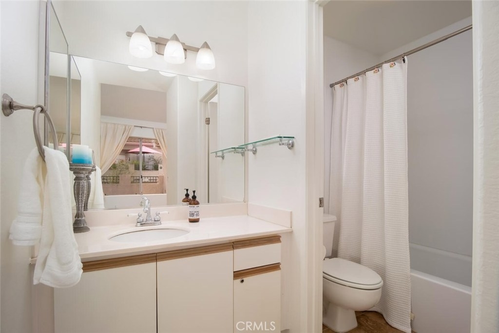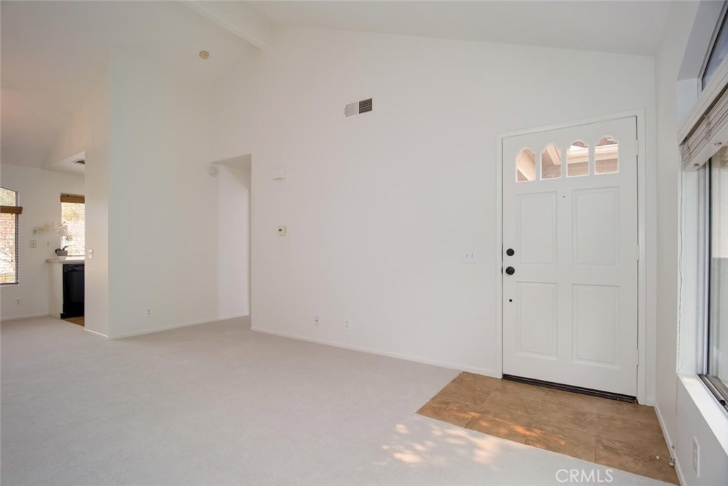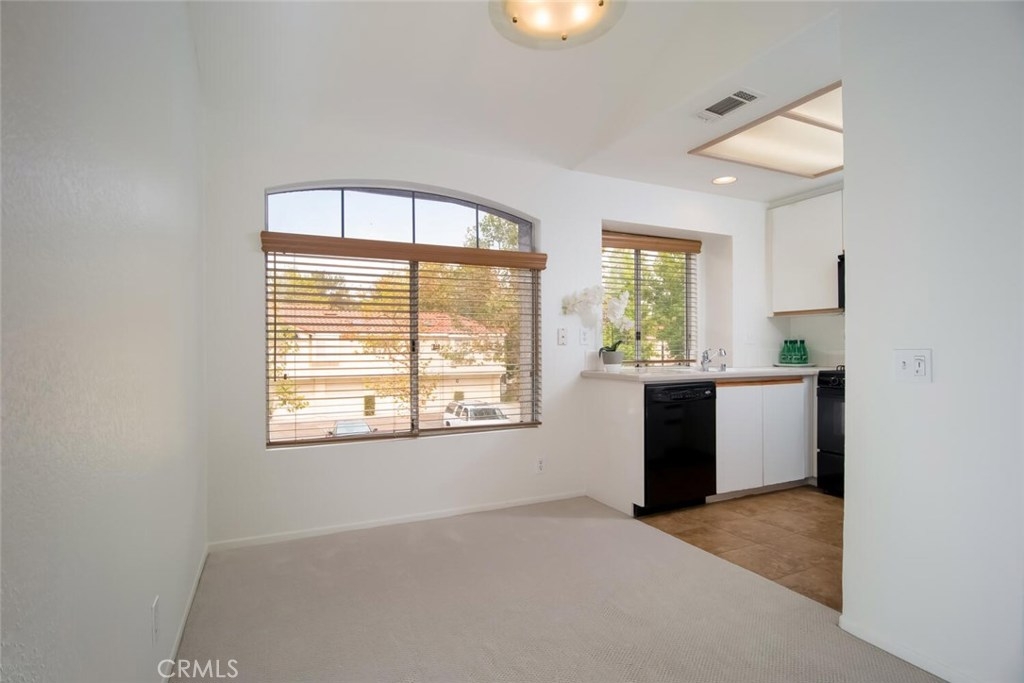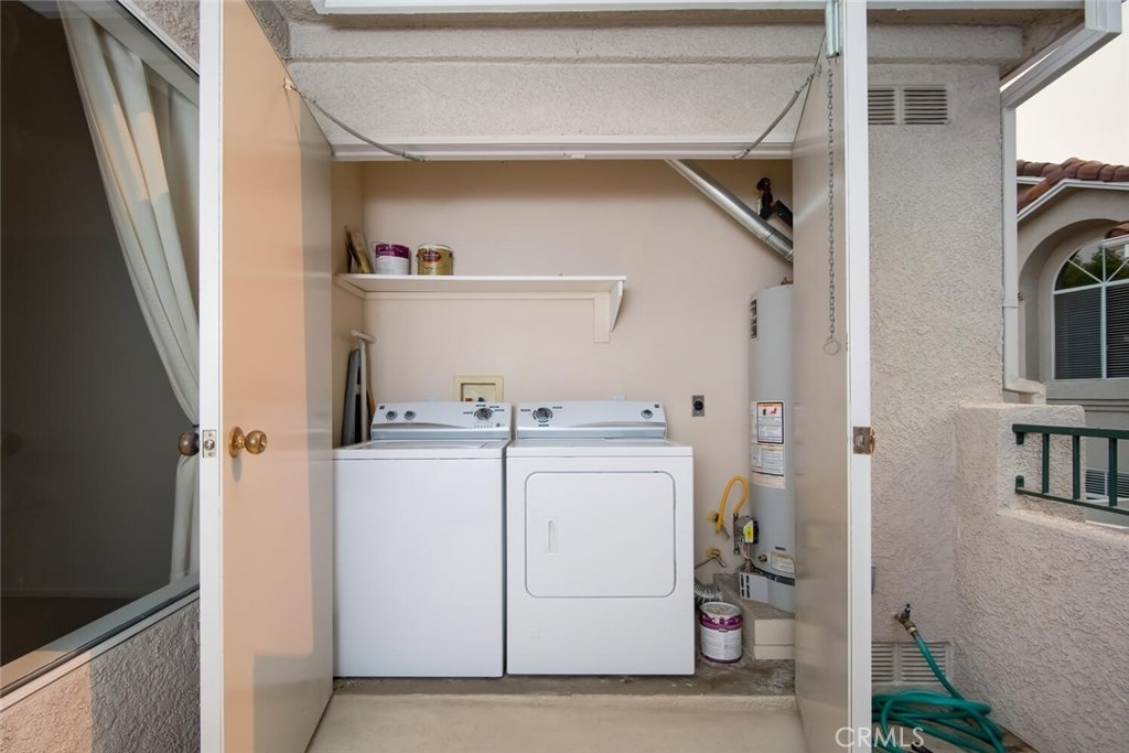 Welcome Home to Aliso Viejo, just minutes away from Laguna Beach and close to shopping with convenient toll road and freeway access. Single story living features a generous living room with a soaring cathedral ceiling and abundant natural light. Spacious dining area with chandlier adjacent to the cheerful kitchen. Large bedroom features a vaulted ceiling, dual closets with mirrored wardrobes and convenient bathroom. Large deck/BBQ balcony on entry. Private laundry closet off deck includes side by side washer and dryer and water heater. Private, detached 1 car garage with room for storage, included. Lovely Community Views and close proximity to one of 2 community pools. Enjoy the community gym and the beautiful neighborhood.
