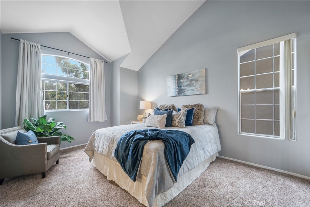 This beautiful two bedroom town-home is in the lovely community of Provence d'Aliso in Aliso Viejo. Downstairs you will enjoy soaring cathedral ceilings in your living room with a cozy fireplace to enjoy on cold nights. Upstairs boasts dual en-suite bedrooms, high ceilings, storage space, dual sinks in the larger bathroom and lots of closet space as well. Your new home is in the back of the community and very private with views of the hills from your backyard. This end of the complex has lots of parking for guests while you can use your attached two car garage. This charming home has been stylishly painted and updated. Provence d'Aliso offers two pools, tennis courts and clubhouse for you to enjoy. It is close to Aliso Niguel High School, Wood Canyon Elementary as well as Aliso and Wood Canyon park and walking/biking trails. This one won't last long!