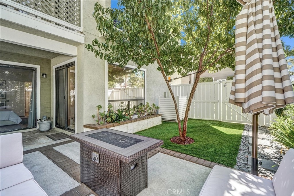 Come ENJOY 15 Abbey Lane in the Heather Ridge development within WONDERFUL Aliso Viejo! Located only 8 miles from world-famous Laguna Beach! This is an AMAZING 1ST Floor townhome-style unit with 2 big bedrooms, 2 bathrooms, and a host of UPGRADED features! These include New water softener system, Remodeled primary and guest bathrooms, Upgraded Fireplace in spacious Living Room, New garage storage racks, New Soft-close hinges installed on all kitchen cabinets, AC unit fully serviced 3 months ago, Remodeled and Updated Large Backyard landscape with maintenance-free turf, Mature Peach tree in backyard, and a 7 minute walk on paved walking trail to shopping center with grocery, restaurants, & coffee shops. There is access to the Community Pool, 2 community hot tubs, and tennis courts! The Monthly HOA fee covers your water + trash bills. This home has been thoughtfully updated with new paint and flooring throughout. It shouts PURE ELEGANCE when you see it! This is an END UNIT with a very Spacious Private Patio great for relaxing or entertaining. The location is Private and so RELAXING! Interior laundry area and The Primary Bedroom is a sanctuary with direct access to the private patio. It boasts a walk-in closet and ample storage for all your belongings. The secondary bedroom also offers its own private patio, providing a personal outdoor space for relaxation or quiet contemplation. It's the perfect spot to enjoy a morning coffee or unwind after a long day. Situated in Aliso Viejo, this HOME offers a prime location with easy access to shopping, dining, and entertainment options. Enjoy the convenience of nearby parks, trails, and recreational facilities, allowing you to embrace your desired lifestyle. There is also a 1 car garage with storage racks and water hose access. FHA approved project! Don't miss the opportunity to make 15 Abbey Lane your new home!