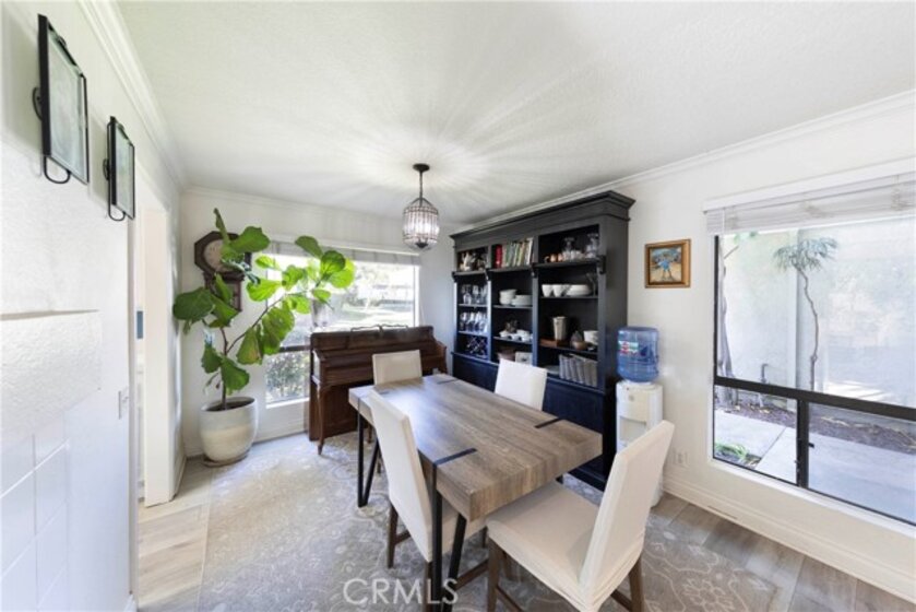 Beautifully Updated 2-Bedroom Lower-Level Condo. This inviting condo offers a bright, comfortable living space with updated flooring and large windows that fill the home with natural light. The spacious primary bedroom features a private vanity area, while the second bedroom is generously sized—perfect for guests, an office, or a growing household. The bathroom has been tastefully updated, and the home includes recently upgraded appliances for added convenience. Relax in the cozy living room with its charming fireplace, or step outside to the expansive back patio, complete with fruit trees—a rare and peaceful outdoor retreat. The community offers fantastic amenities, including a pool and spa, tennis courts, and walking paths. You’ll also enjoy close proximity to schools, parks, shopping, dining, and easy access to the 73 Toll Road