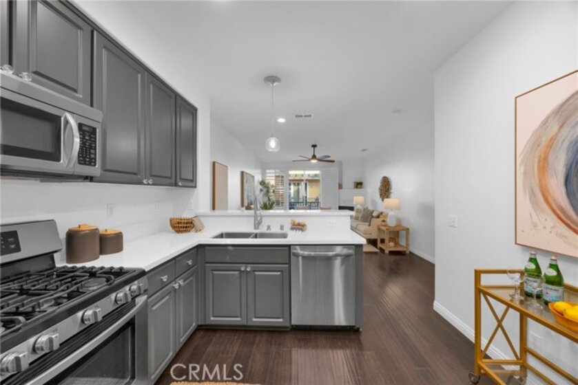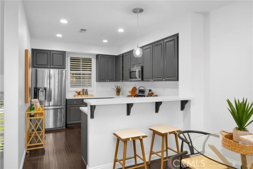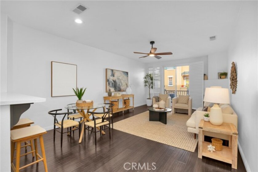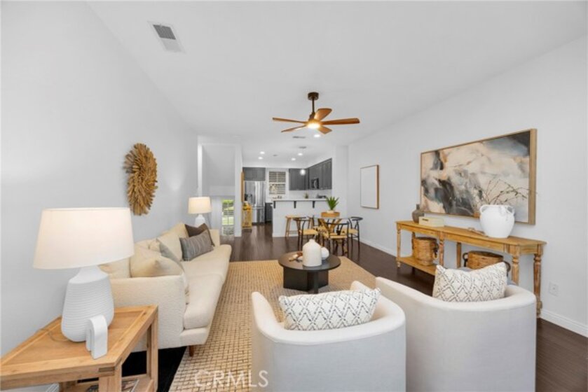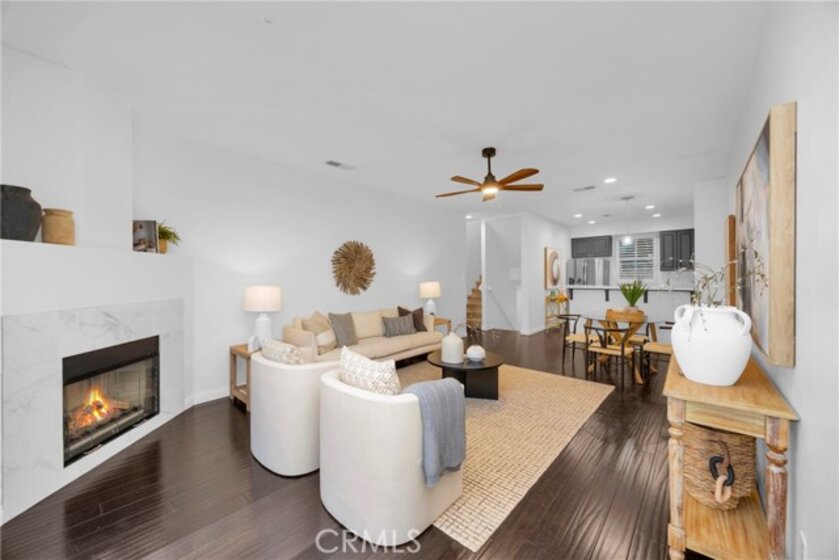 Beautiful 2 bedroom, 2.5 bath Camden Park townhome located in the heart of Aliso Viejo! This highly sought-after home fronts one of the community’s largest greenbelts and is just minutes from Aliso Viejo Town Center with dining, shopping, and entertainment. The open floor plan features a spacious living and dining room with plantation shutters, rich laminate wood flooring, cozy fireplace, and direct access to a private balcony. The upgraded kitchen offers stainless steel appliances, recessed lighting, and ample cabinet space. Upstairs, the primary suite boasts vaulted ceilings and a walk-in closet, with a secondary bedroom and full bath down the hall. Additional highlights include a downstairs powder room, direct-access two-car garage with laundry and extra storage. Residents of Camden Park enjoy access to the resort-style pool, spa, and BBQ area, plus easy access to nearby trails and just a short drive to world-class beaches!