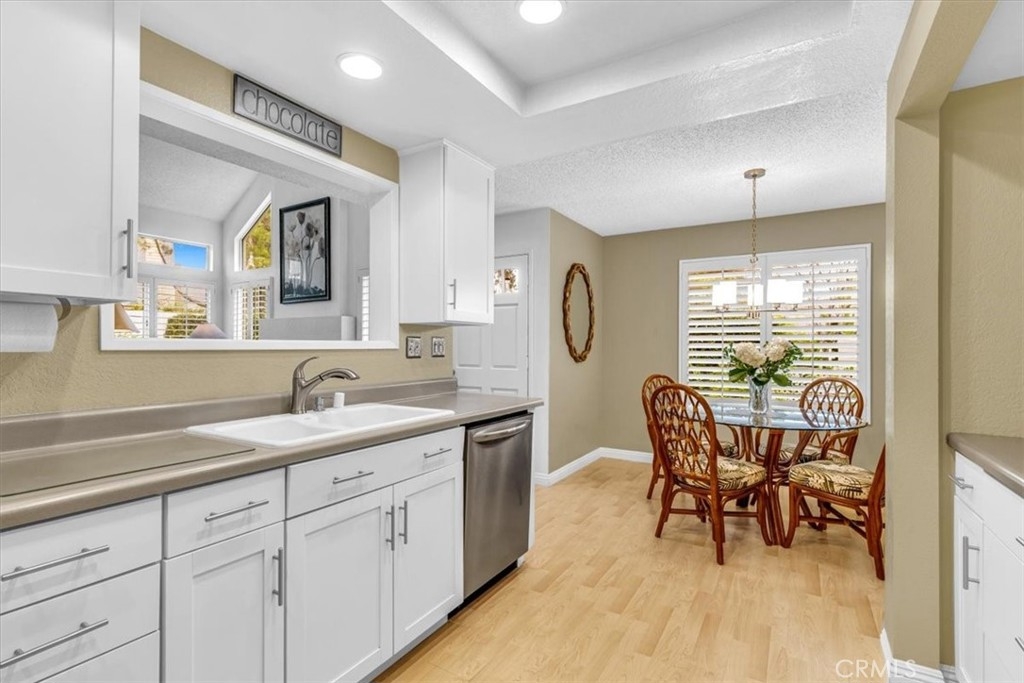 Rare Opportunity in Glenwood Village! Tucked away in one of Aliso Viejo’s most desirable communities, this beautifully updated end-unit townhome offers the perfect combination of comfort, charm, and modern style. From the moment you step inside, you’ll notice the bright and airy feel, enhanced by vaulted ceilings, abundant natural light, and an inviting open floor plan. The heart of the home is the gorgeous remodeled kitchen, complete with crisp shaker cabinetry, soft-close drawers, stainless steel appliances, recessed lighting, and generous storage and counter space—ideal for both everyday living and entertaining. The kitchen flows seamlessly into the spacious living room, where a cozy gas fireplace and serene views create a welcoming space to unwind. The main level features laminate flooring, plantation shutters, dual-pane windows, a stylish powder room, and a flex space perfect for a home office, gym, or reading nook. Step outside to your private backyard oasis, where you can relax with a glass of wine under the trees after a long day. Upstairs, enjoy two generously sized bedrooms, including a light-filled primary suite with ample closet space and a beautifully updated ensuite bath featuring a luxurious walk-in shower. The second bedroom offers lovely views of the backyard and shares access to a full hall bathroom. Additional perks include an attached 1-car garage with great storage, and access to Glenwood Village’s fantastic amenities—resort-style pool and spa, tennis and pickleball courts, clubhouse, gym, tot lot, and lush nearby parks. All this, just minutes from Aliso Viejo Town Center, scenic trails, award-winning schools, and everything that makes this area one of Orange County’s most sought-after locations. Don’t miss your chance to call this rare gem home—schedule your showing today!