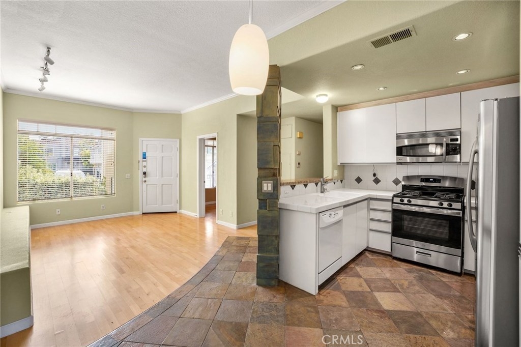 Beautiful 2 bedroom, 2 bathroom, single story, lower level condo in the community of Seagate Colony in Aliso Viejo! Enjoy an open floor plan with laminate wood flooring, built-in cabinetry, and a private balcony. The kitchen offers stainless steel and white appliances, tile flooring, a stylish backsplash, and white tile countertops. The primary bedrooms offers a walk-in closet, dual sinks in the primary bathroom, and a shower-in-tub. Community highlights include the swimming pool, spa, and walking paths. Convenient to area markets, restaurants, and easy access to major freeways!