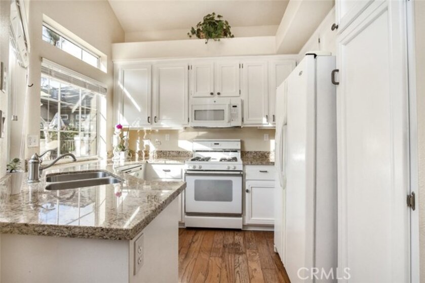 **THE PERFECT GIFT FOR THE HOLIDAYS** CLEAN & BRIGHT END UNIT WITH NO ONE LIVING ABOVE OR BELOW! Welcome to 164 Montara - an immaculate 1 bedroom + 1 bedroom-sized loft with soaring ceilings providing plentiful natural light. The beautiful hardwood entry leads you upstairs to more gleaming hardwood floors on the main floor where you will find a very open living space. Off the livingroom, you will find the updated kitchen with white cabinetry and granite countertops, and can continue out the sliding glass door to your large, private patio perfect for entertaining. Also on the main floor, you will find the large master bedroom with a dual closets, ceiling fan, and en-suite bathroom with double sinks. The spacious upstairs loft has it’s own full bathroom, private balcony, and closet with additional interior storage area. Plenty of upgrades including: new blinds & light fixtures, water heater, microwave & bathroom faucets, and resurfaced fireplace, and the condo has been repiped with PEX piping. This condo has an attached single-car garage plus 1 assigned parking space in front. It’s in close proximity to the neighborhood salt-water pool & spa, and within walking distance to Aliso Viejo Town Center, Starbucks, Trader Joe’s, schools and parks. Shows well - ready to move in!
