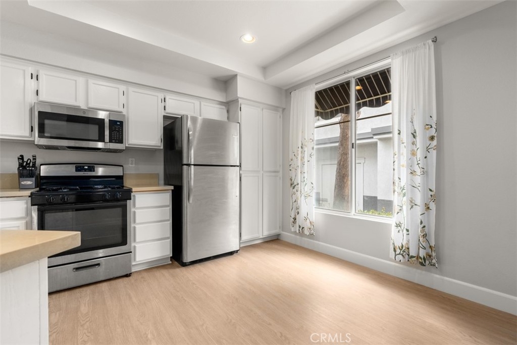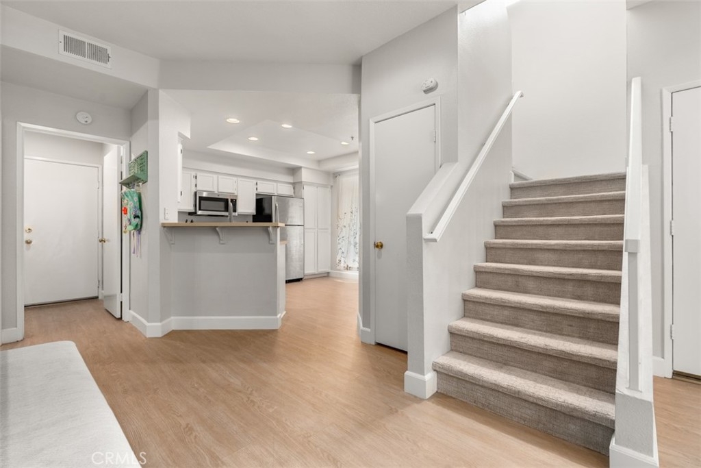 Welcome to the beautiful and highly desirable community of Coronado Cay! This impeccable 1348 sq ft, 3 bedroom, 2 & 1/2 bath, two-story corner unit condo features an open floor plan, recessed lighting, designer paint, and luxury vinyl plank flooring. The cozy fireplace adds both warmth and ambiance, while the large, abundant windows fill the home with beautiful natural light. With a half bath located downstairs, this floor plan is perfect for entertaining friends and family. The tastefully remodeled kitchen boasts Quartz countertops, beautiful white cabinetry, stainless steel appliances, a large walk-in pantry, a farmhouse sink, and a little breakfast bar perfect for enjoying a morning coffee. Upstairs, you’ll find a large primary suite featuring soaring vaulted ceilings, a renovated bathroom with dual sinks, white shaker cabinetry, a large soaking tub, and a walk-in closet. There are 2 additional bedrooms and a full-size bath with a tub/shower combo. The 2-car attached garage, inside laundry room with built-in storage. Boasting one of the largest backyards in the complex, this very private 500sq ft wrap-around space is perfect for enjoying gatherings, BBQs, and the incredible outdoor lifestyle Aliso Viejo offers. The complex has a private resort-style pool and spa, while the community of Aliso Viejo features an abundance of community parks, sport courts, hiking & biking trails, plus dozens of city-wide events! Located within walking distance to the exceptionally rated Don Avila elementary and middle school, close to both Acorn Park/Canyon View parks, just 2 miles from the Aliso Viejo Country Club, golf course, aquatic center and surrounded by world class shopping and dining, this a perfect location to enjoy all the amenities Aliso Viejo offers! Consistently ranked as one of California's top 5 safest cities, 17 Breakers Lane is the perfect place to call home!
